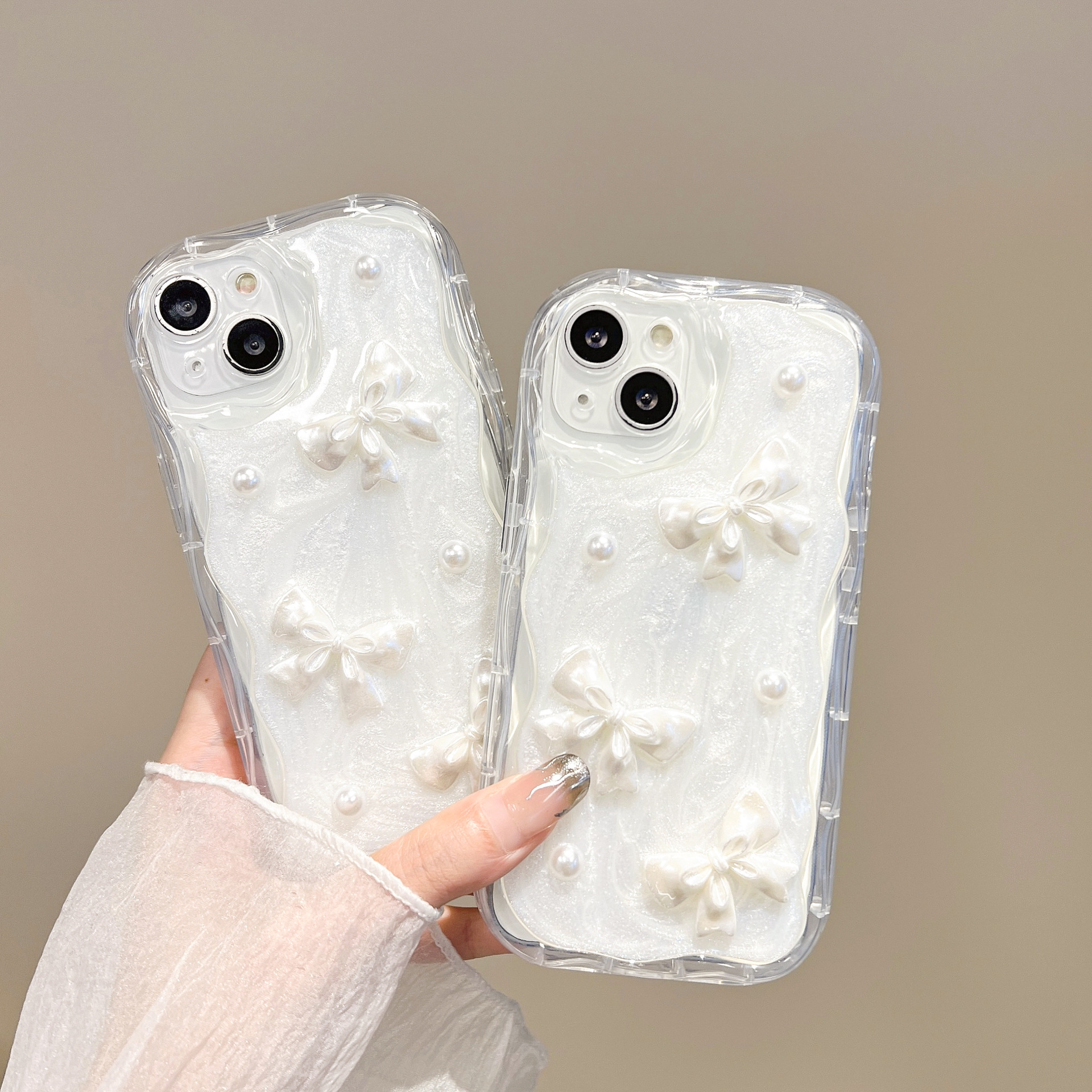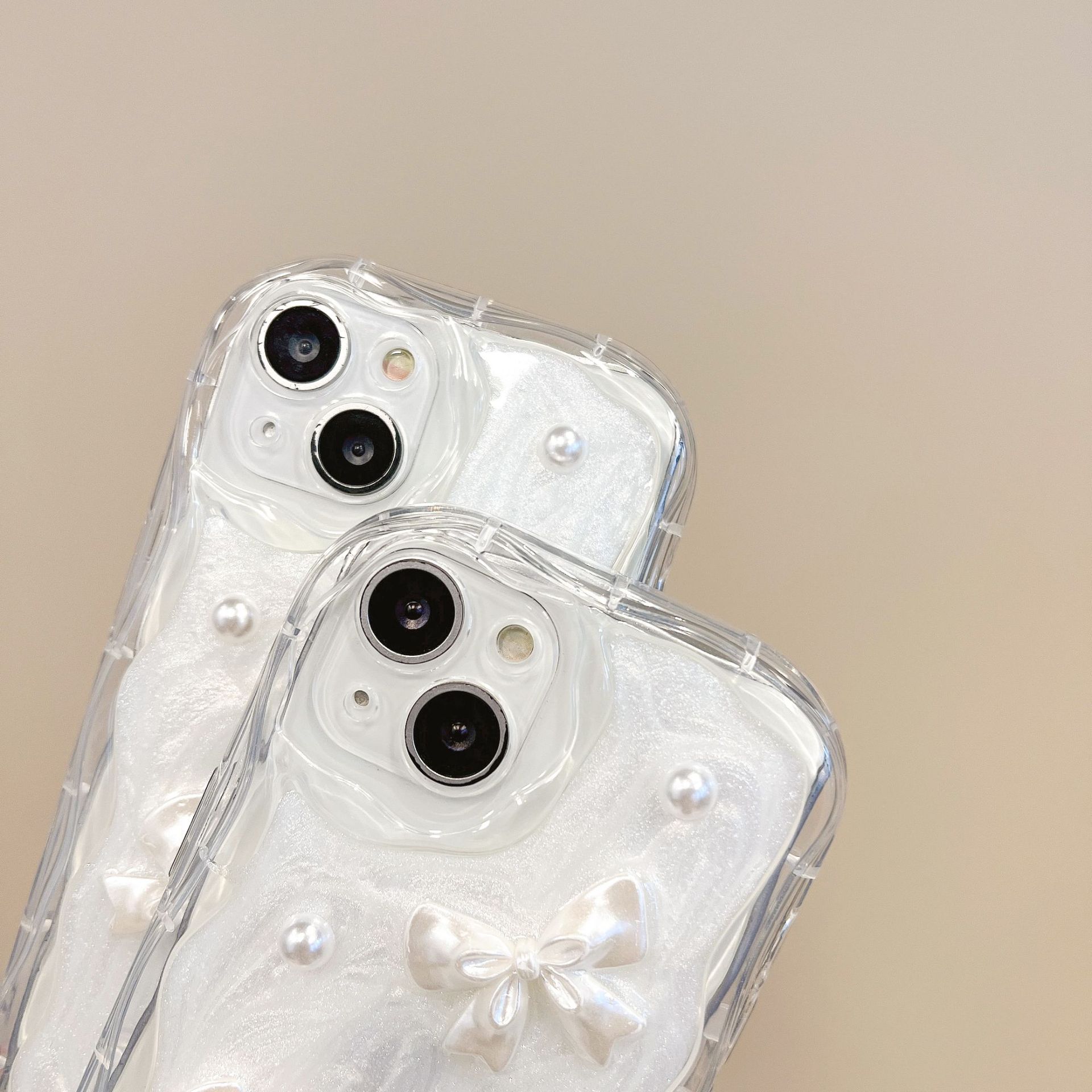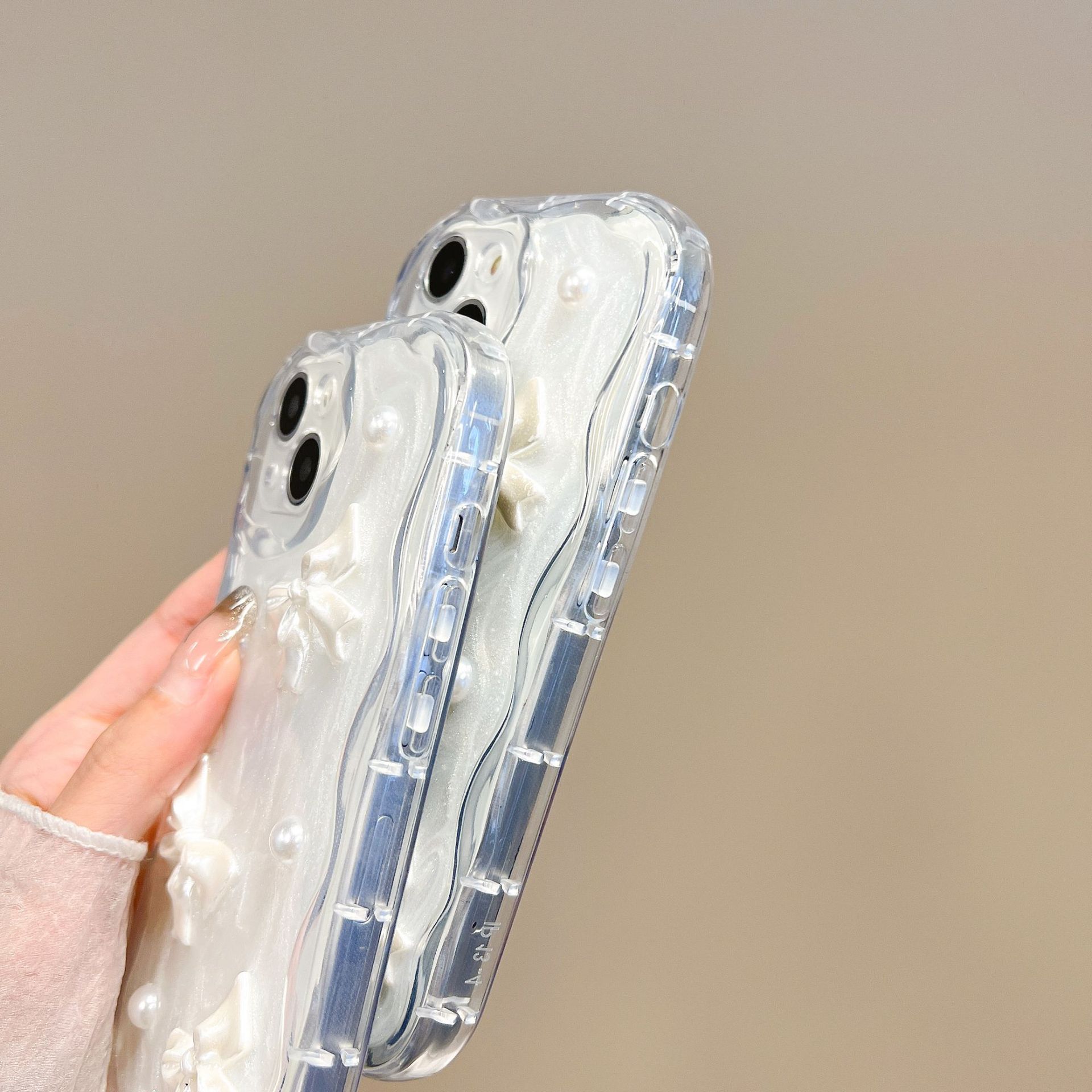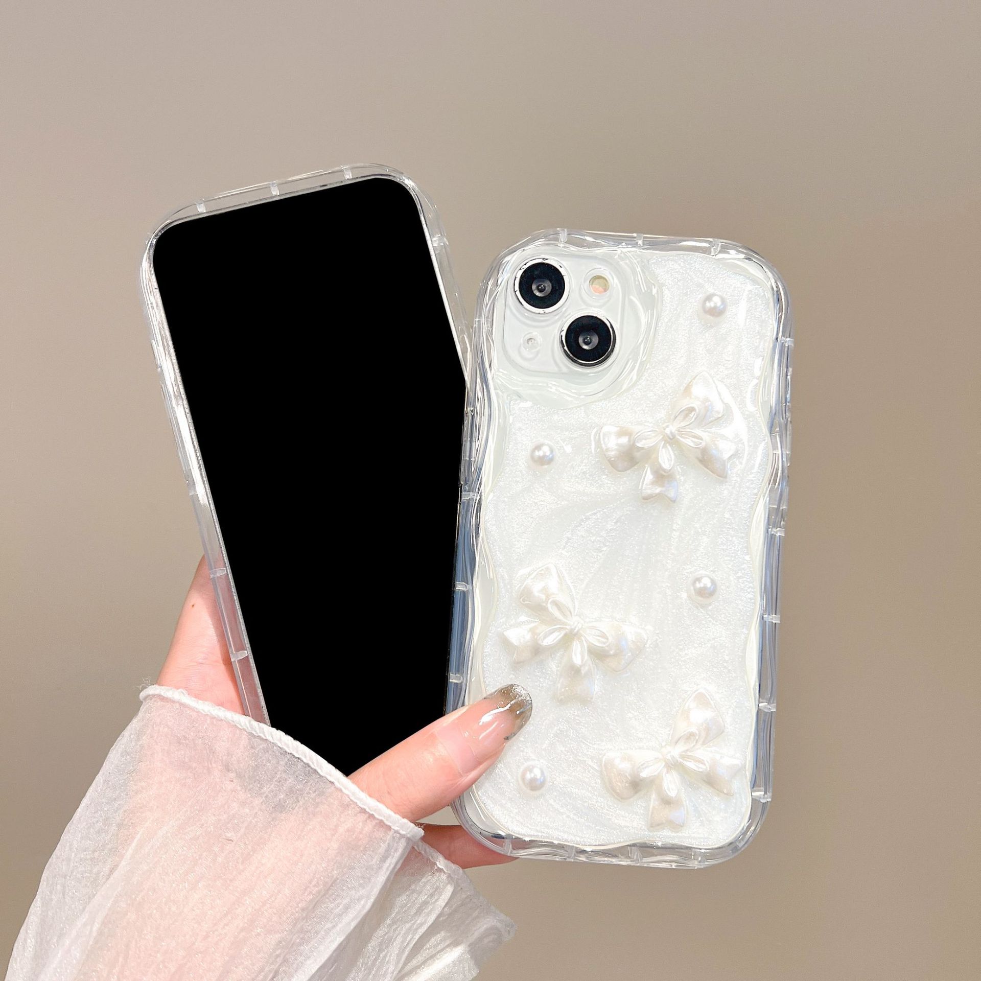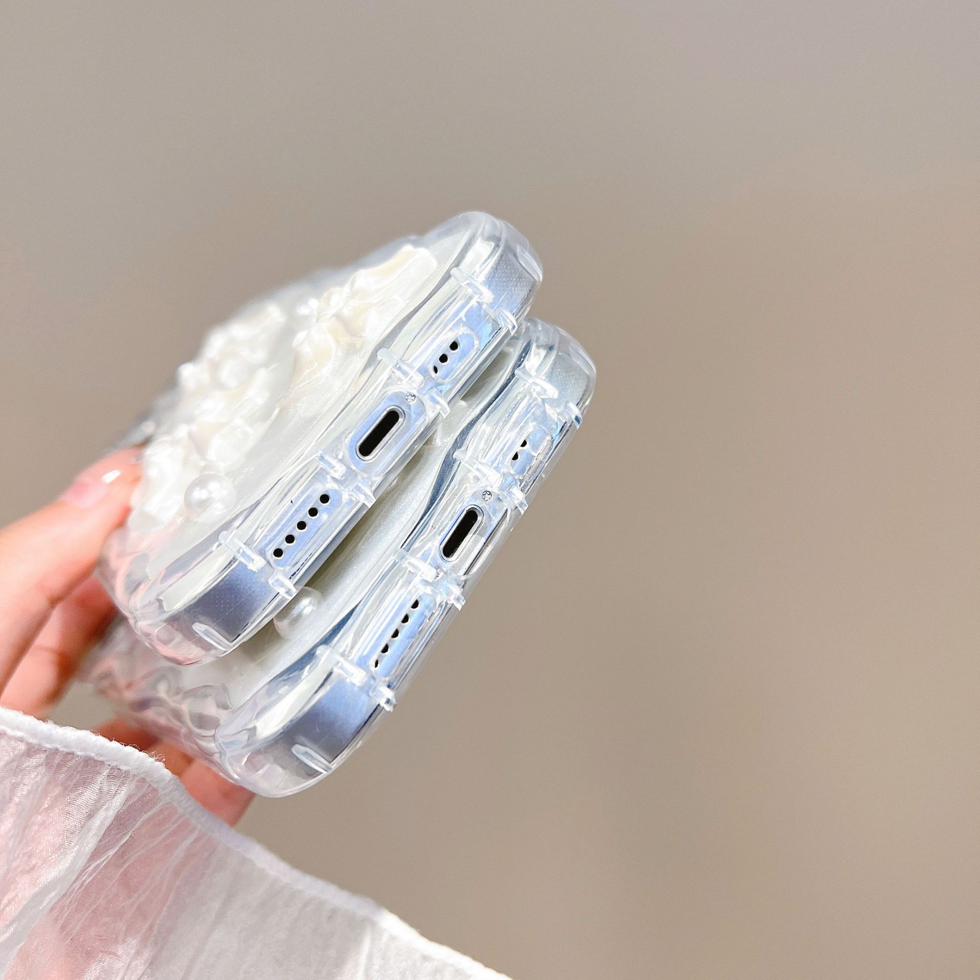 Apple 16 15Pro Max 휴대폰 케이스에 적합한 에폭시 밀크 화이트 iphone14 13 입체 나비 1 소프트 12 세트