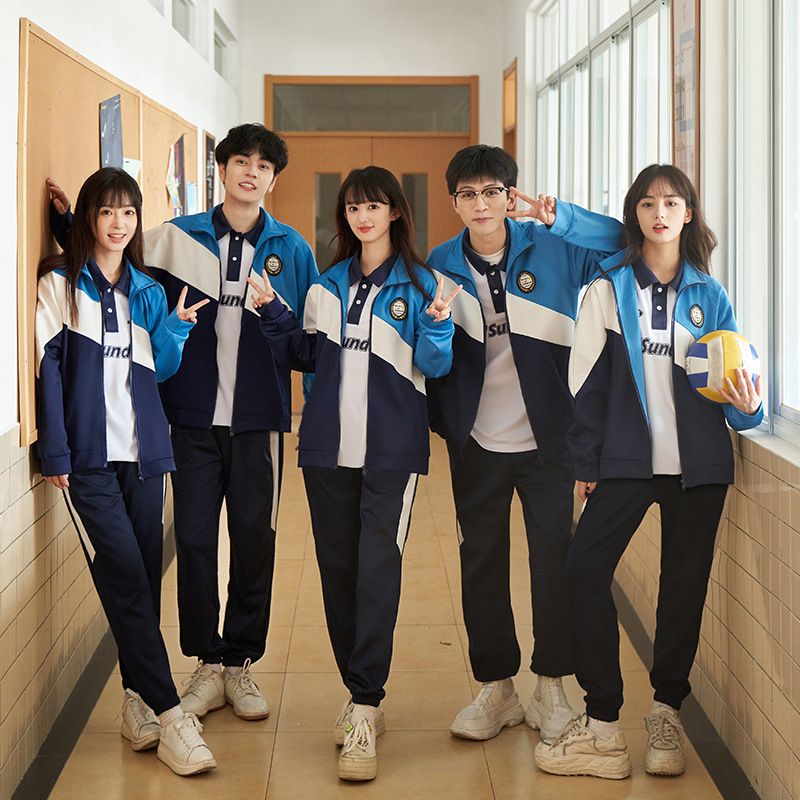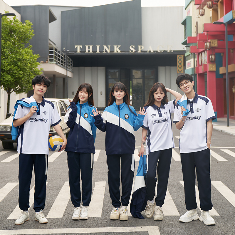 중학생 학급 교복 2023 스티치 스포츠 코트 3 종 세트 가을과 겨울 학생 학급 교복 반팔 세트스토어 가기