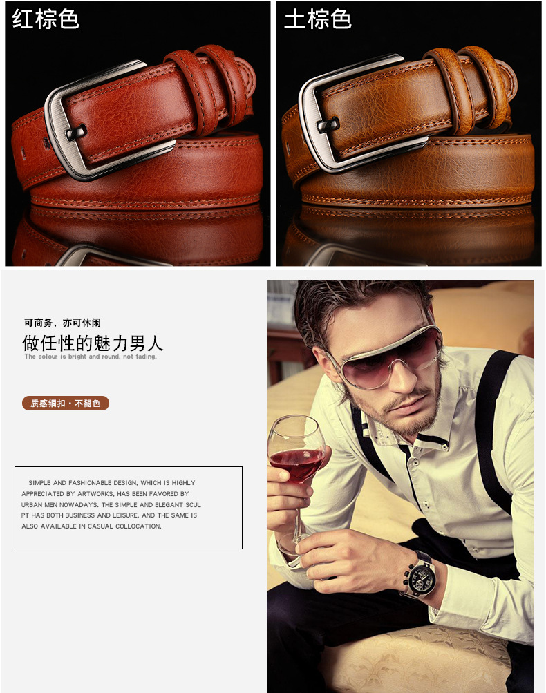 대외 무역 가죽 벨트 남성용 벨트 핀 버클 3.3cm 소가죽 간단한 캐주얼 레트로 남성 바지 고정 로고