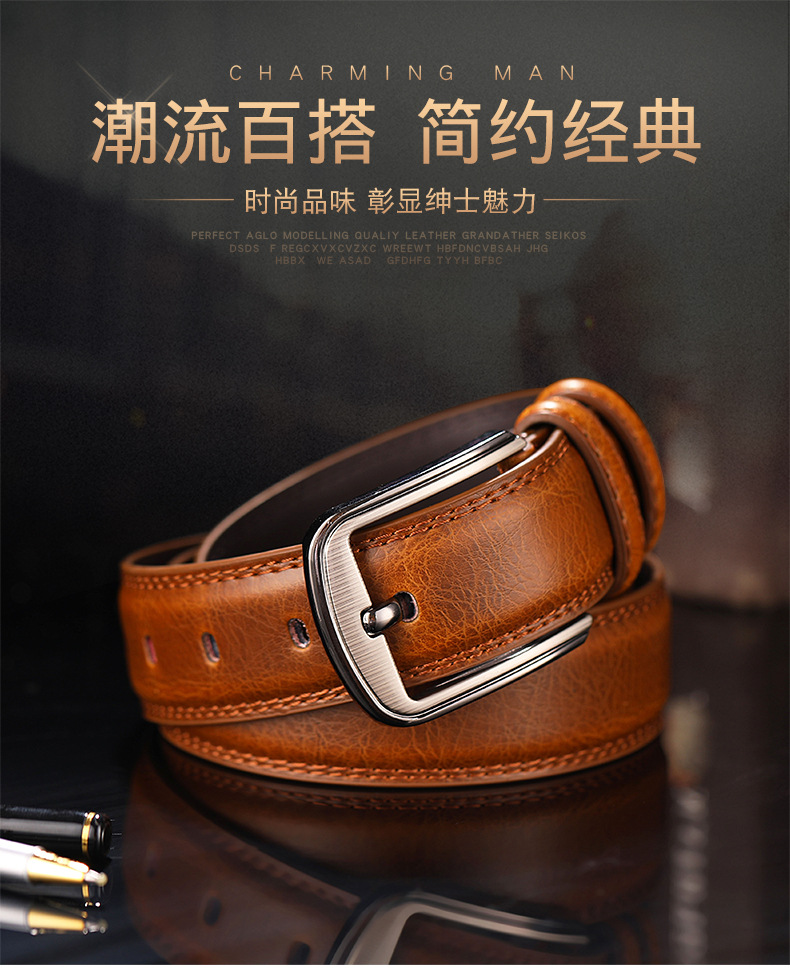 대외 무역 가죽 벨트 남성용 벨트 핀 버클 3.3cm 소가죽 간단한 캐주얼 레트로 남성 바지 고정 로고스토어 가기