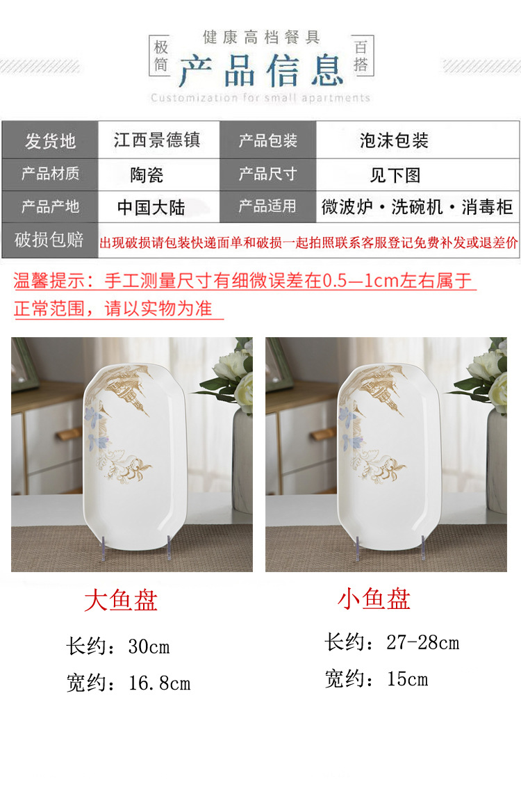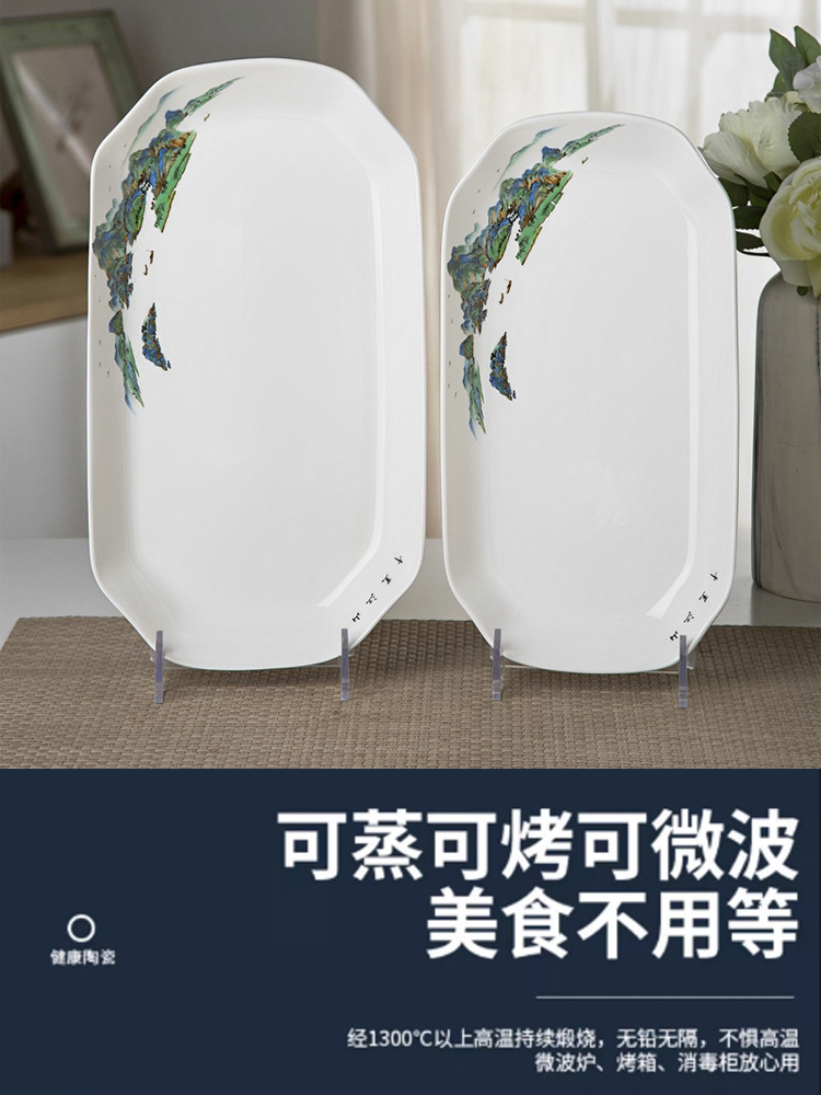 가정용 대형 생선 접시 직사각형 생선 접시 세라믹 식기 전자 레인지 용 크리 에이 티브 찐 구운 생선 접시스토어 가기