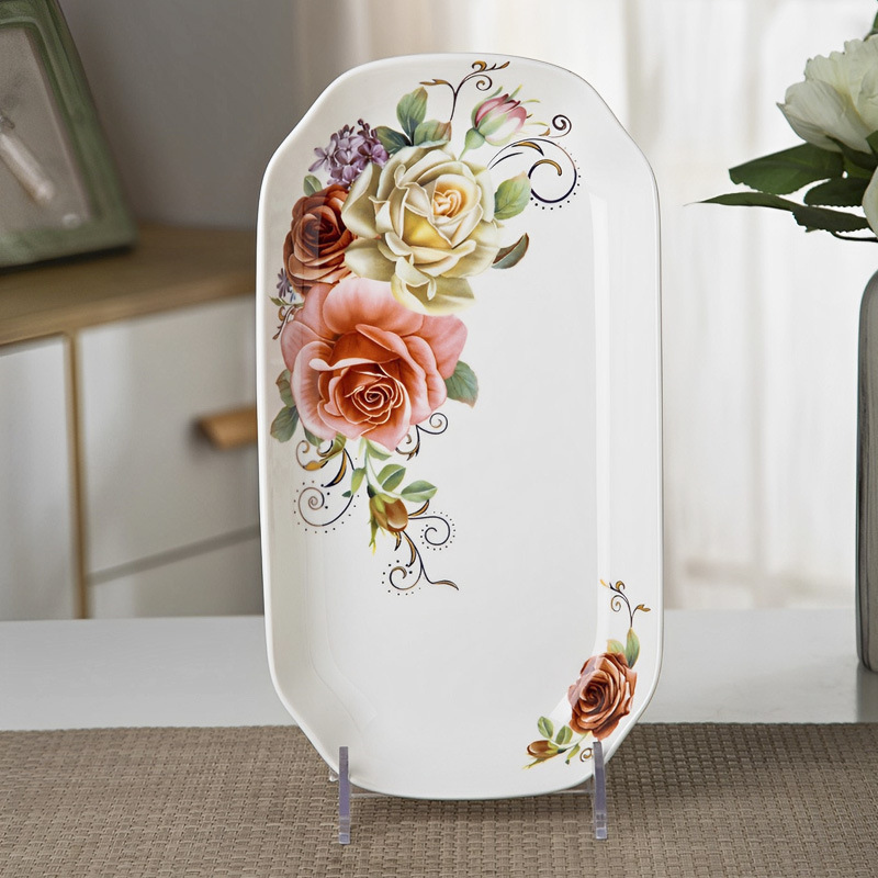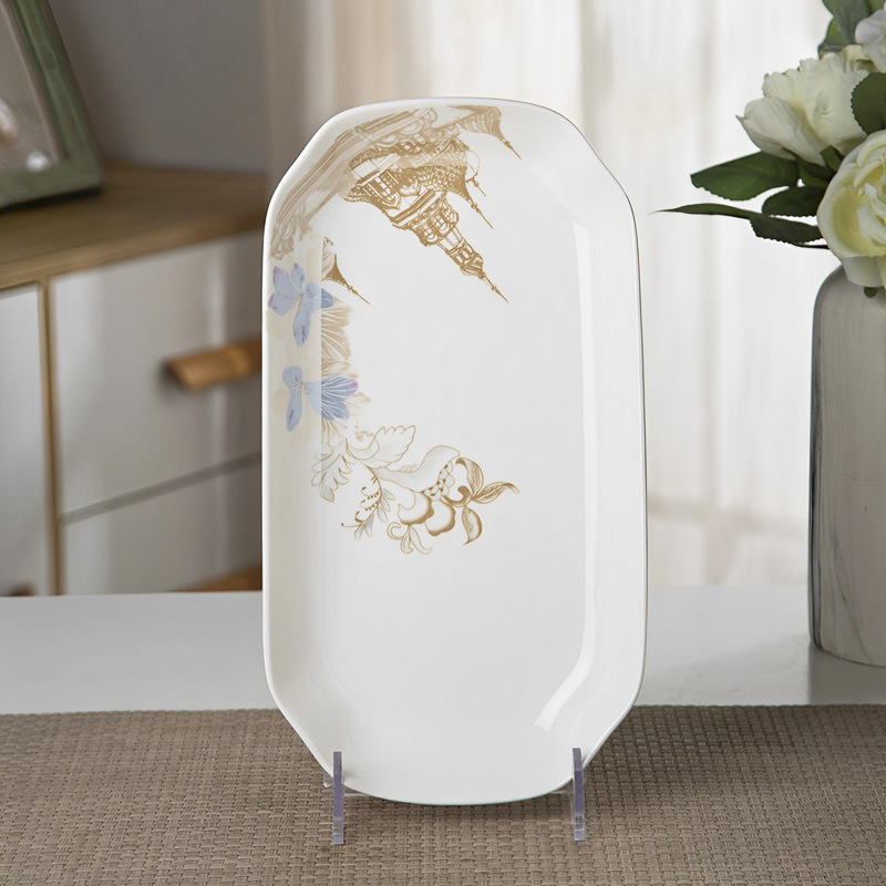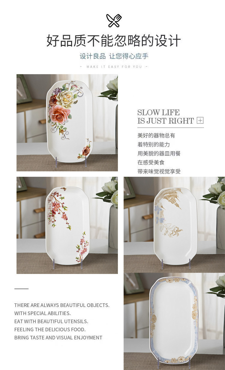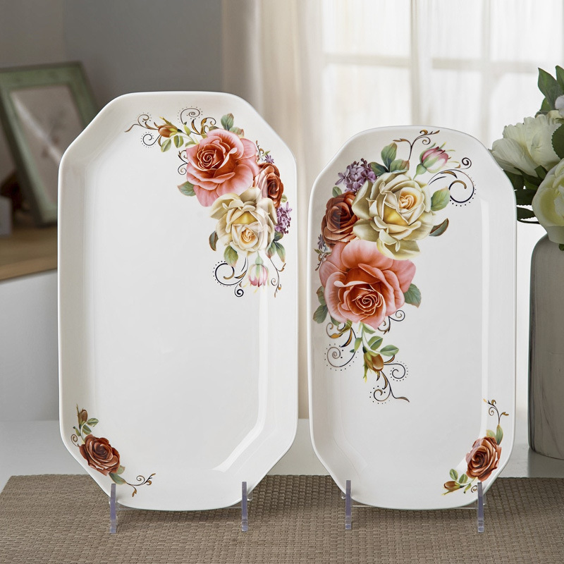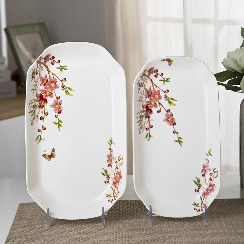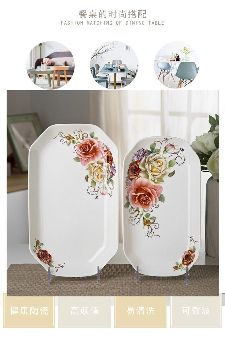 가정용 대형 생선 접시 직사각형 생선 접시 세라믹 식기 전자 레인지 용 크리 에이 티브 찐 구운 생선 접시
