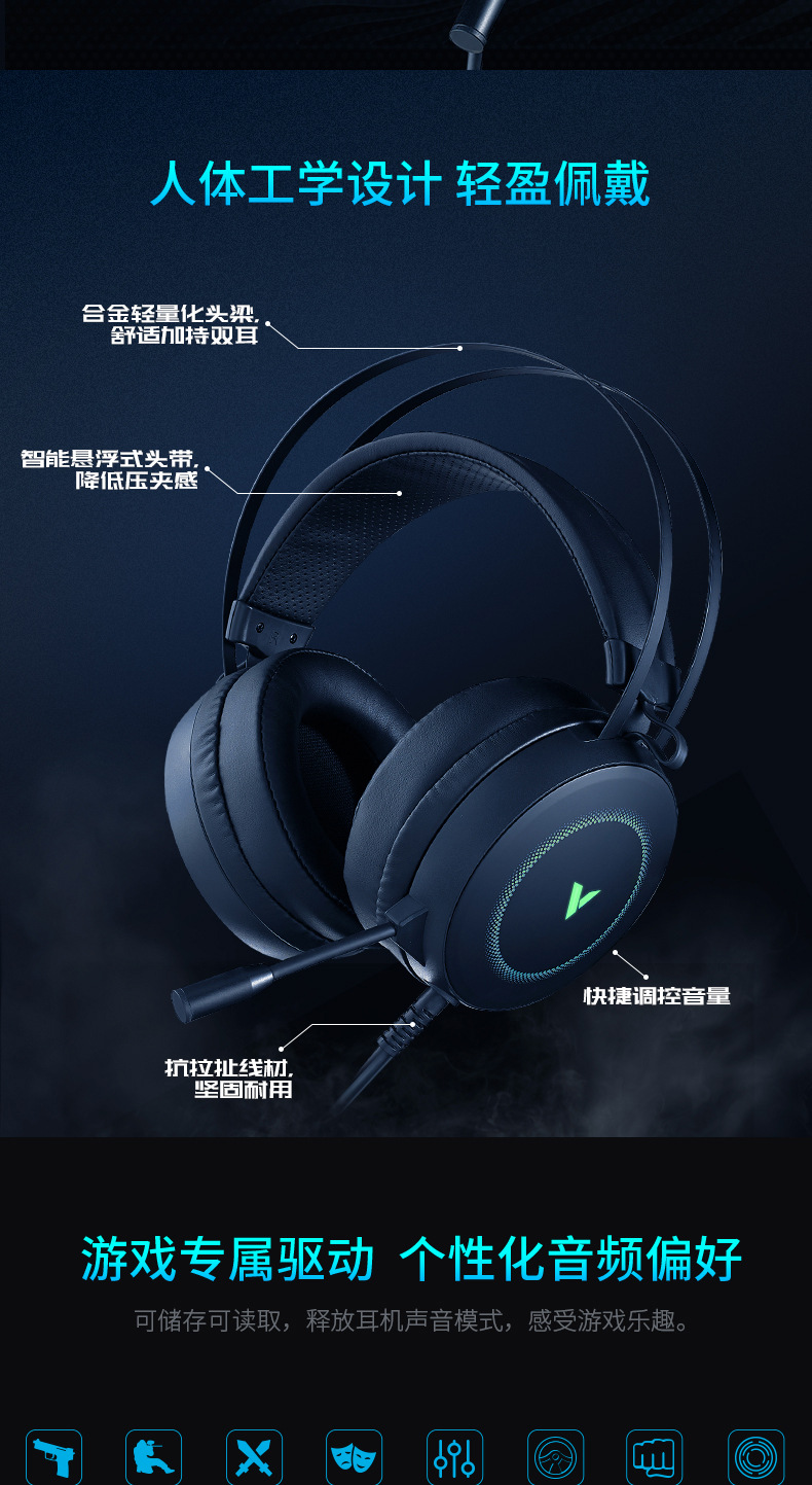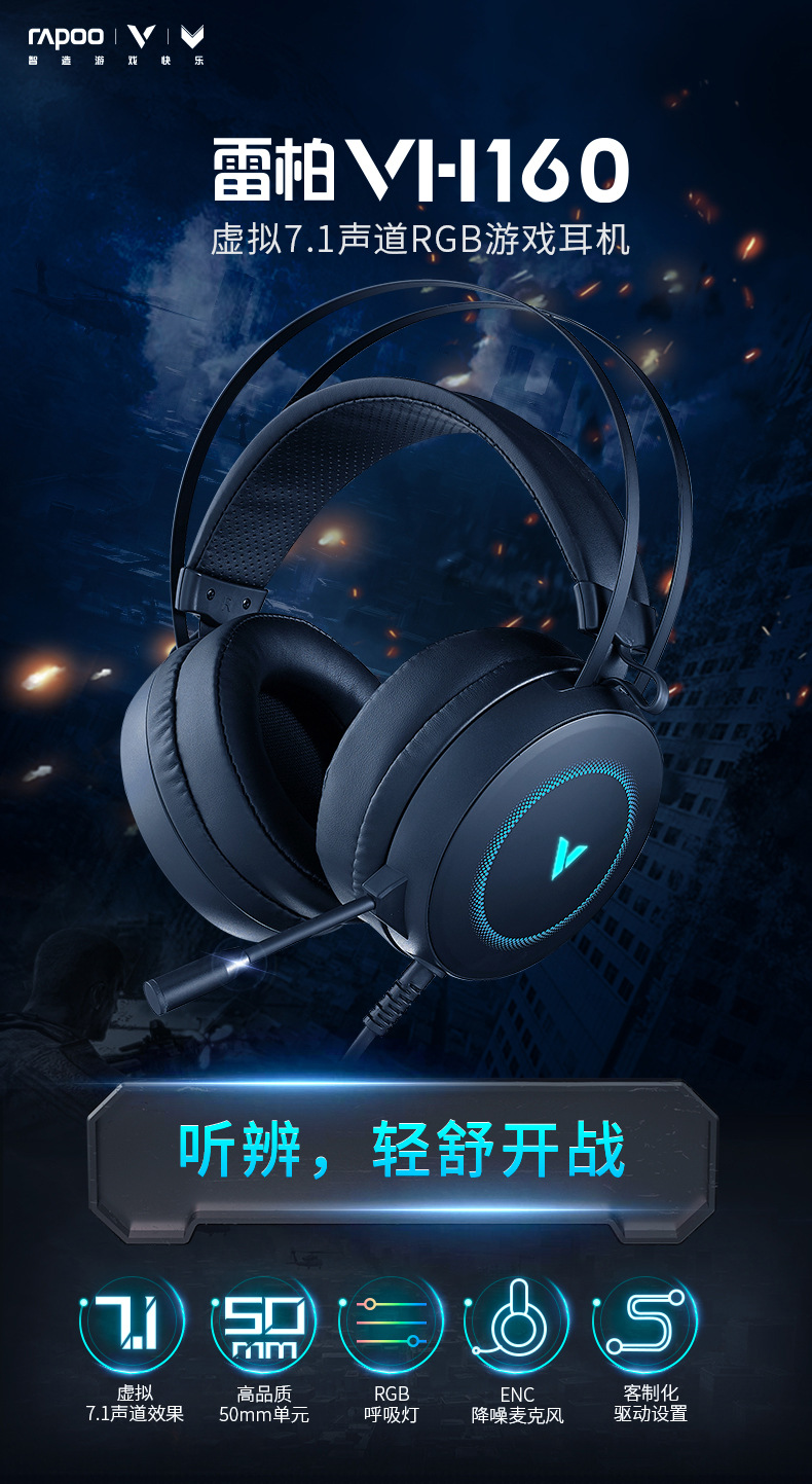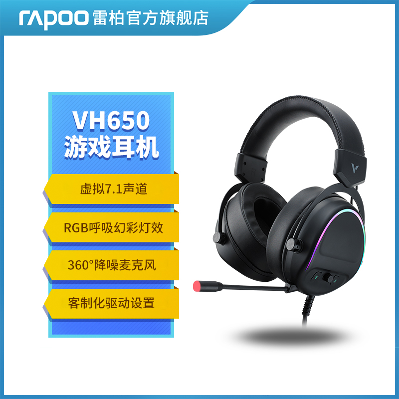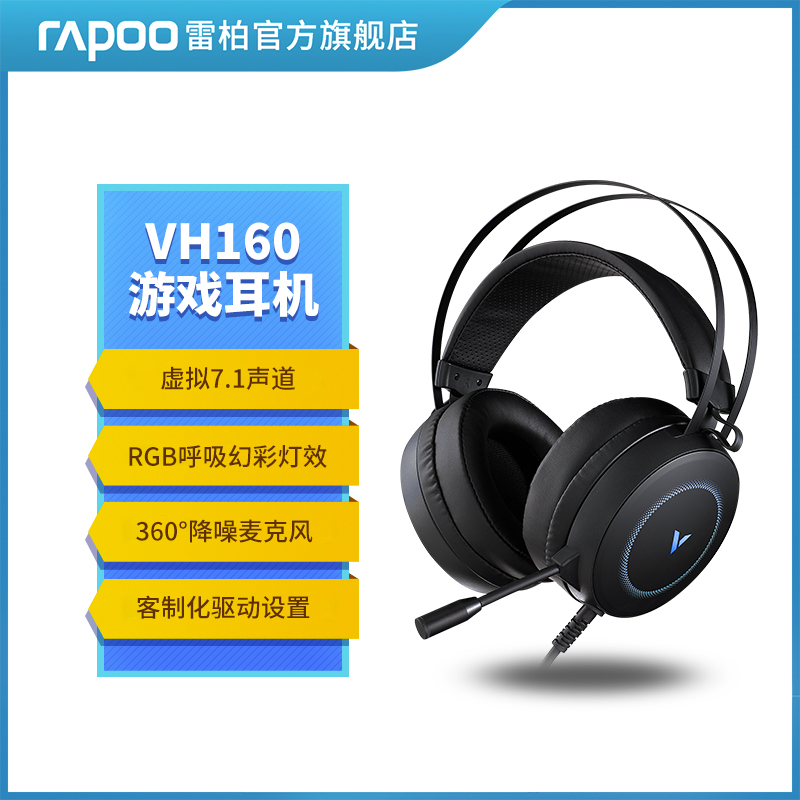 RAPOO VH160 게임 헤드셋 헤드셋 RGB 컴퓨터 가상 7.1 채널 전자 스포츠 소음 감소 마이크 U스토어 가기