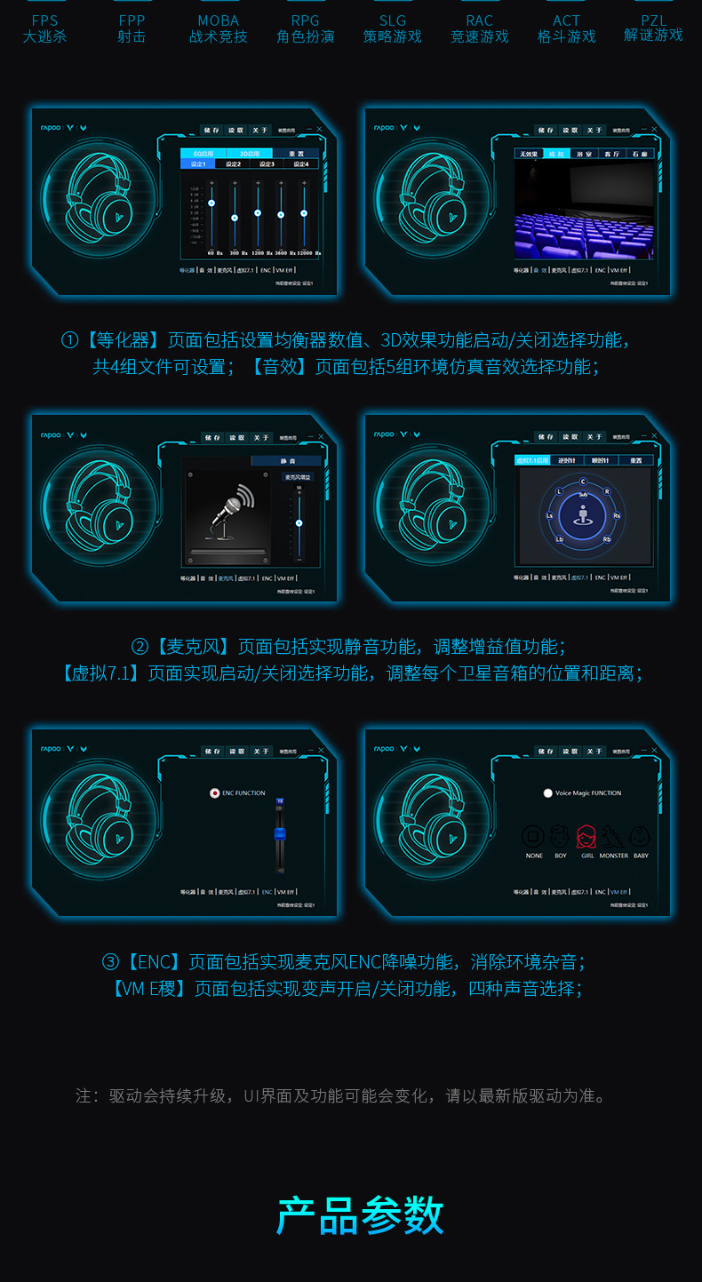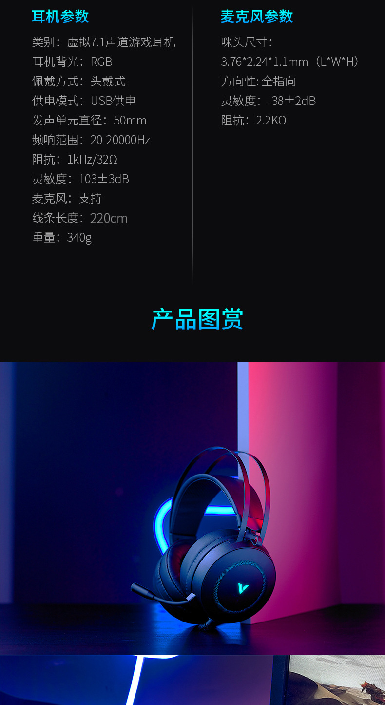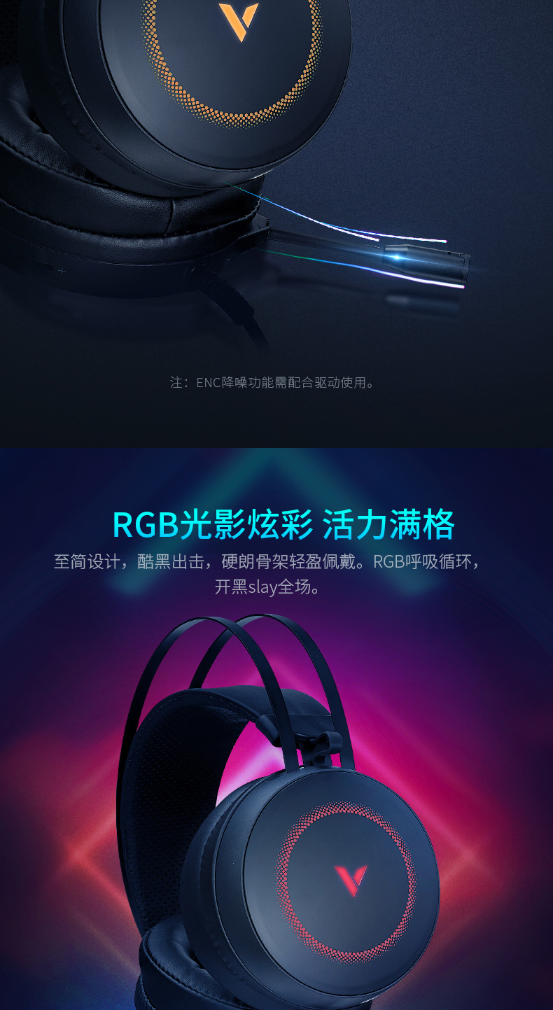 RAPOO VH160 게임 헤드셋 헤드셋 RGB 컴퓨터 가상 7.1 채널 전자 스포츠 소음 감소 마이크 U스토어 가기