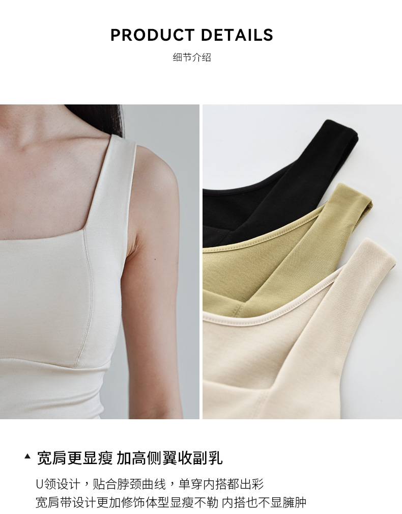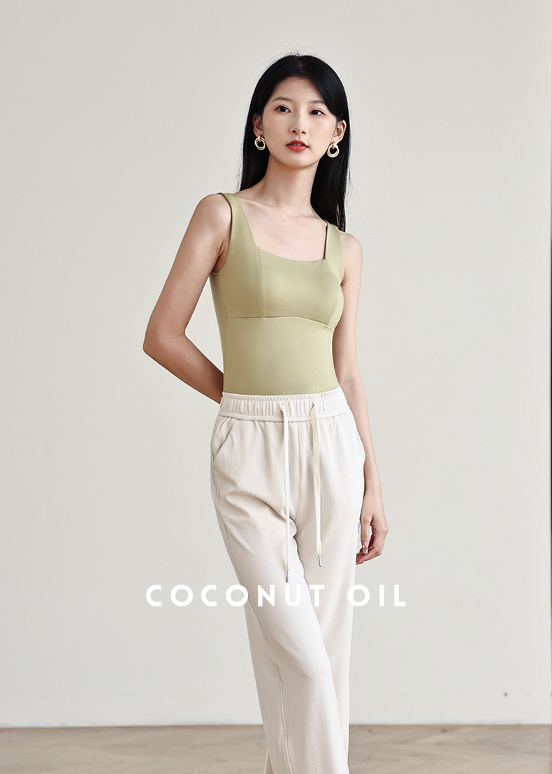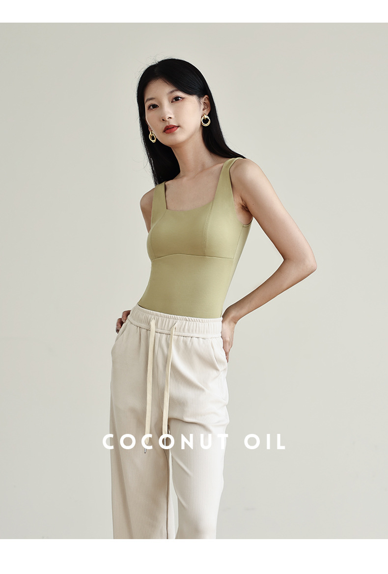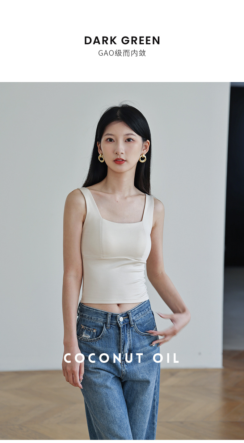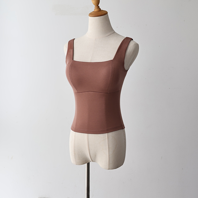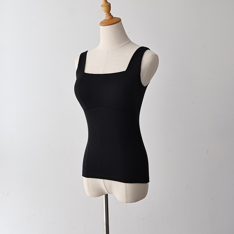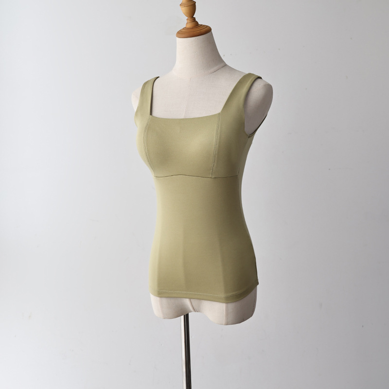 코코넛 오일 스킨 뷰티 샌딩 스퀘어 칼라 조끼 여성용 원피스 베이스 셔츠 가슴 패드 가을과 겨울 따뜻한 슬림 핏 내부 탑