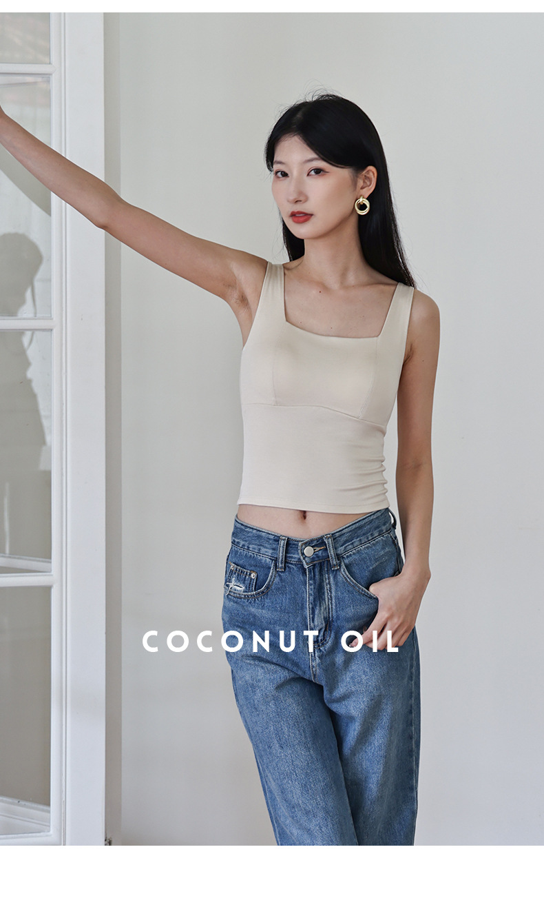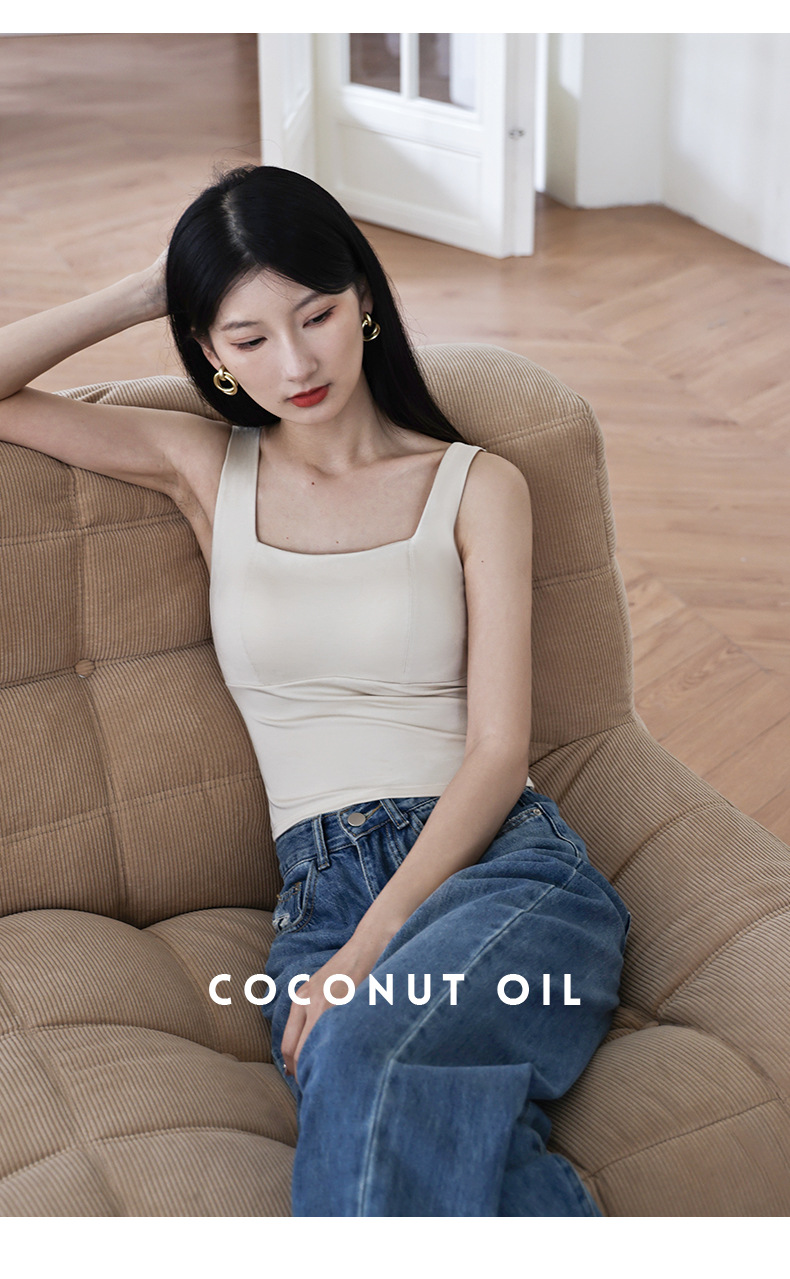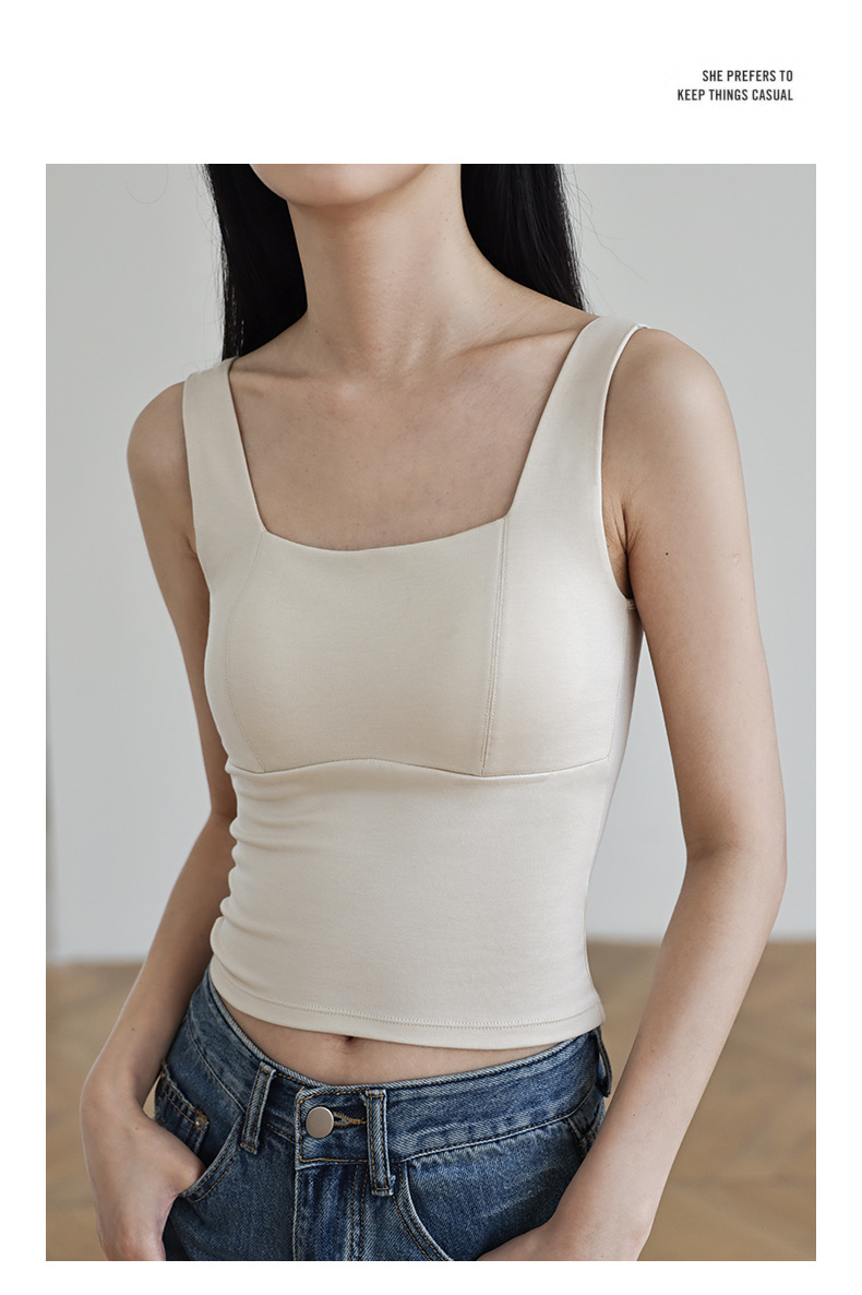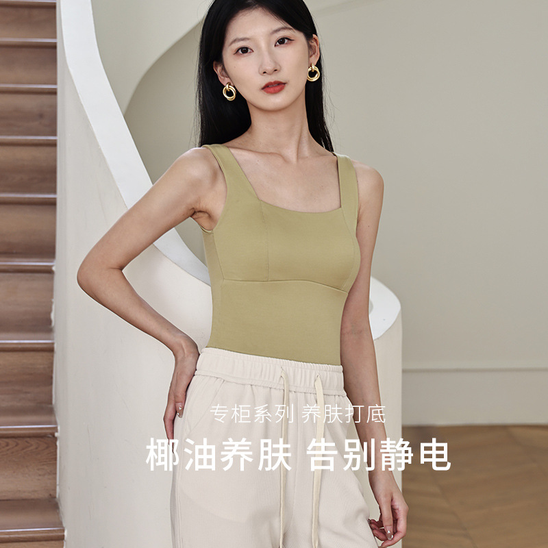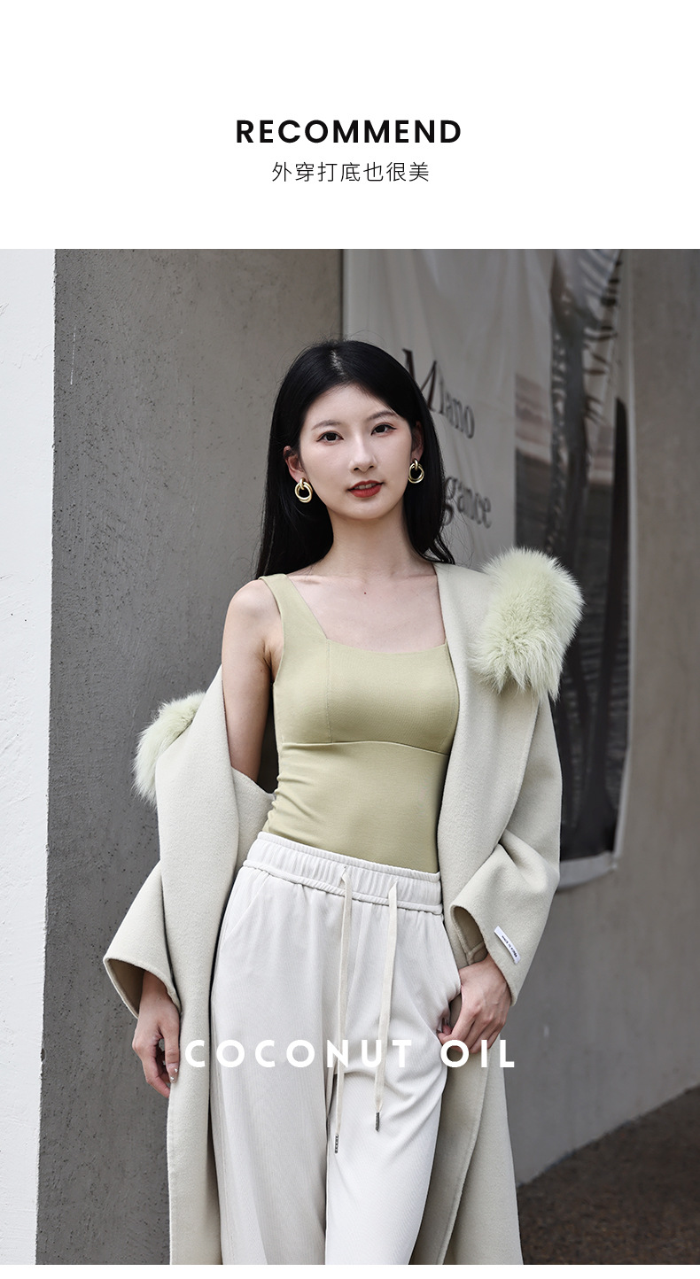 코코넛 오일 스킨 뷰티 샌딩 스퀘어 칼라 조끼 여성용 원피스 베이스 셔츠 가슴 패드 가을과 겨울 따뜻한 슬림 핏 내부 탑스토어 가기