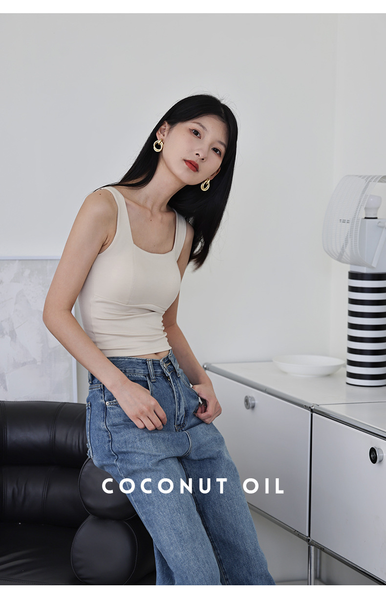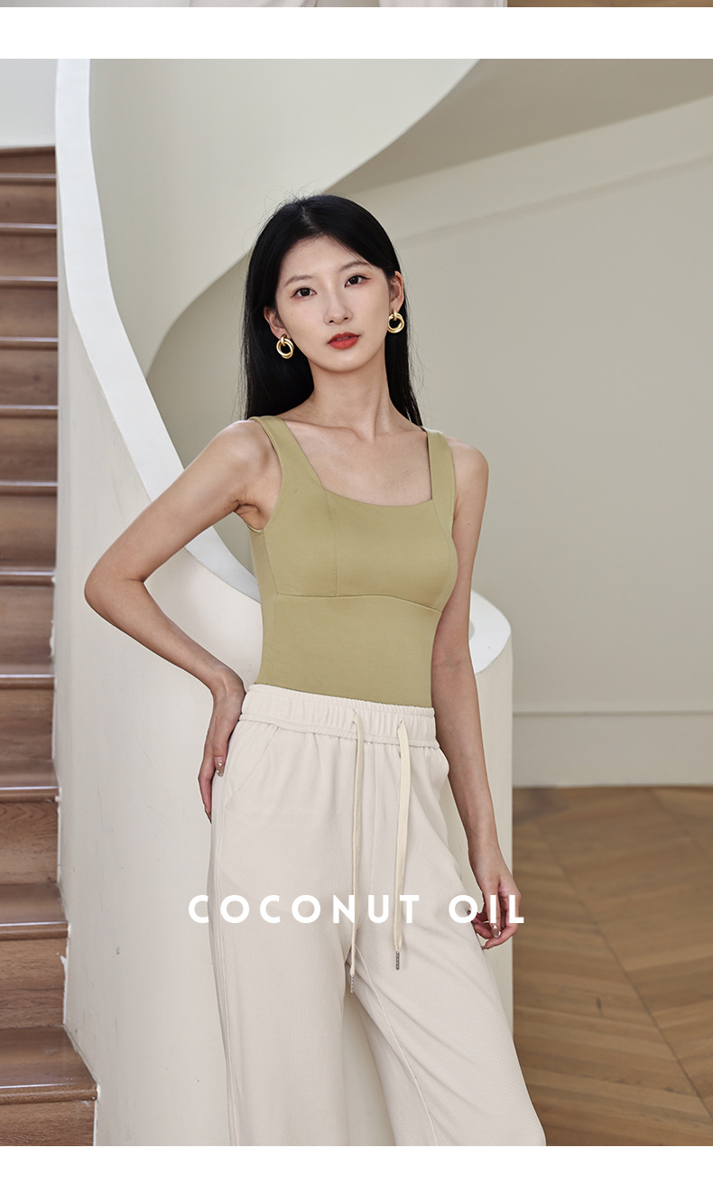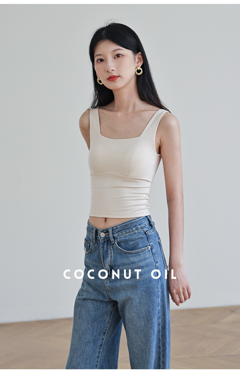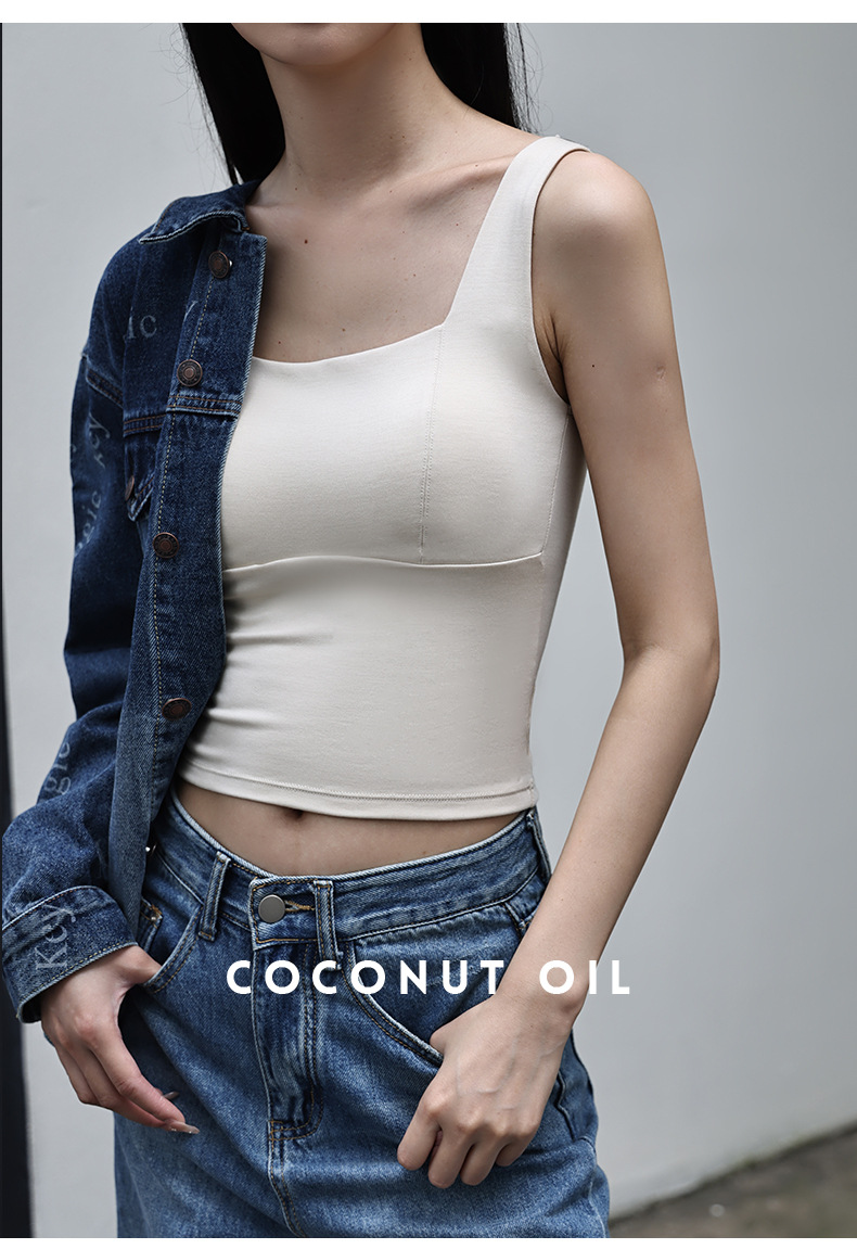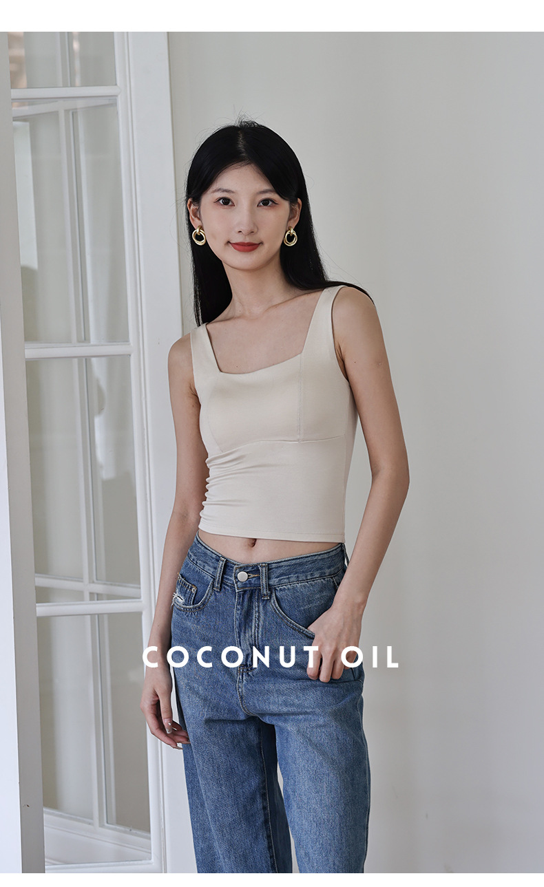 코코넛 오일 스킨 뷰티 샌딩 스퀘어 칼라 조끼 여성용 원피스 베이스 셔츠 가슴 패드 가을과 겨울 따뜻한 슬림 핏 내부 탑스토어 가기