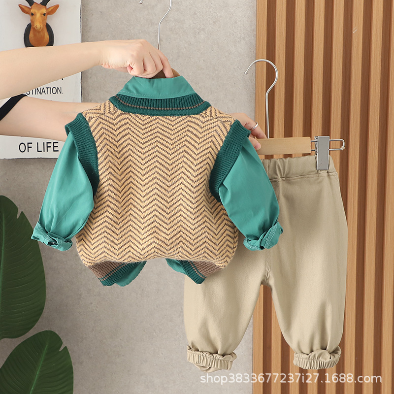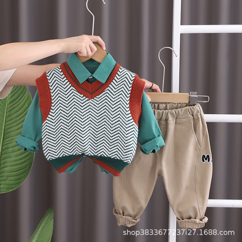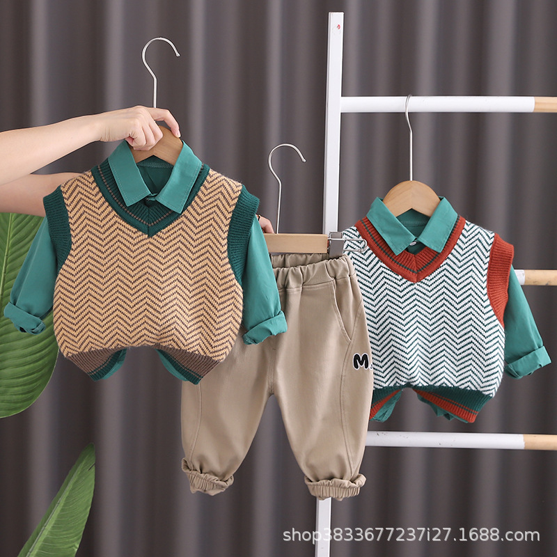 아동복 어린이 봄과 가을 세트 아기 슈퍼 외국 공기 파인 웨이브 스웨터 쓰리피스 세트 남아 공장 콘센트스토어 가기
