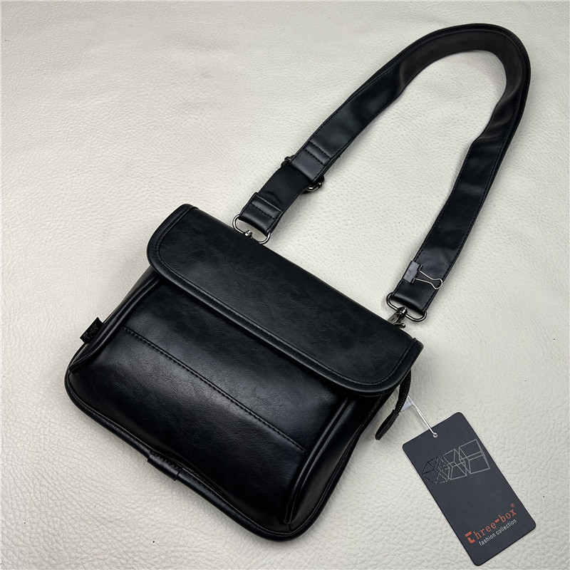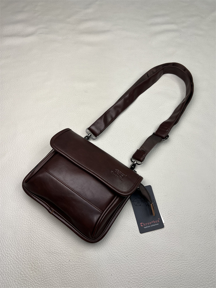 threebox日韩男士斜挎包 翻盖软皮单肩包 运动时尚背包休闲小男包