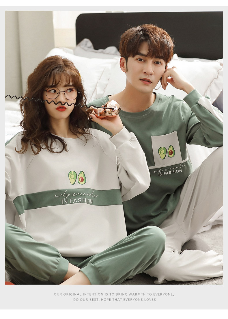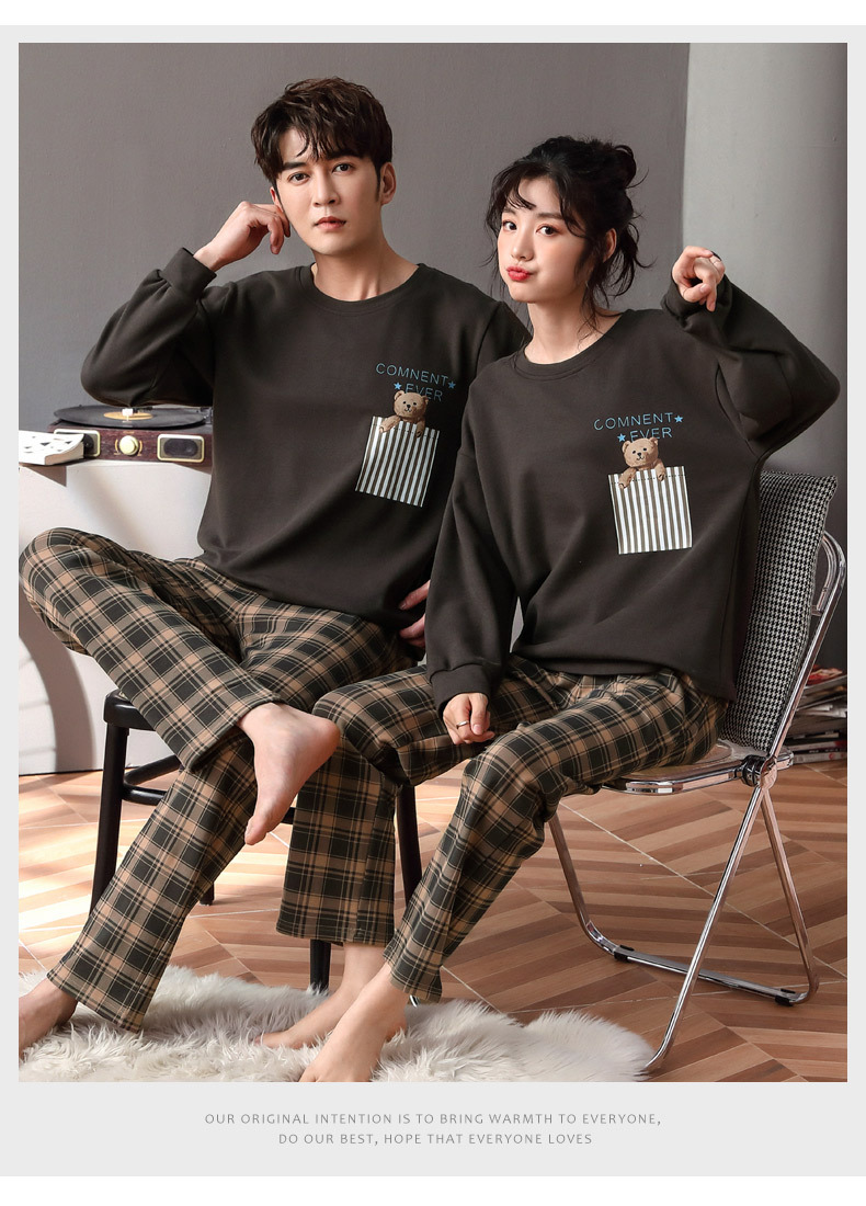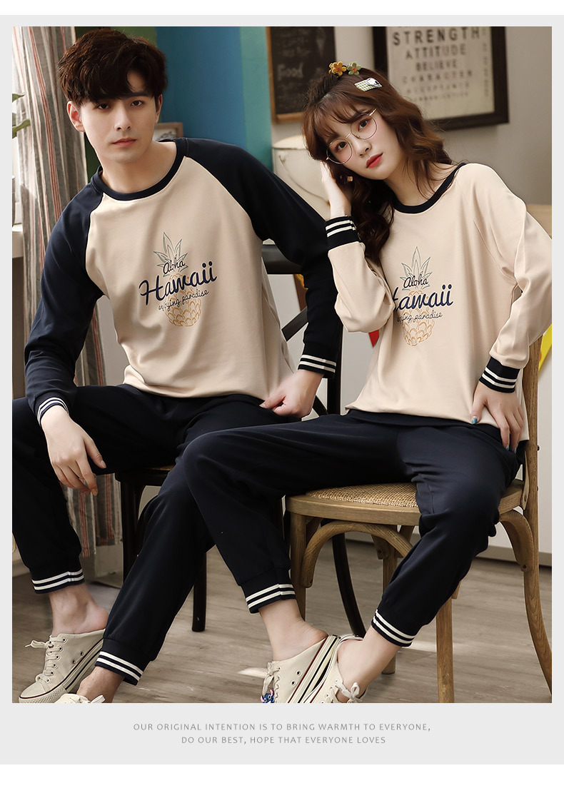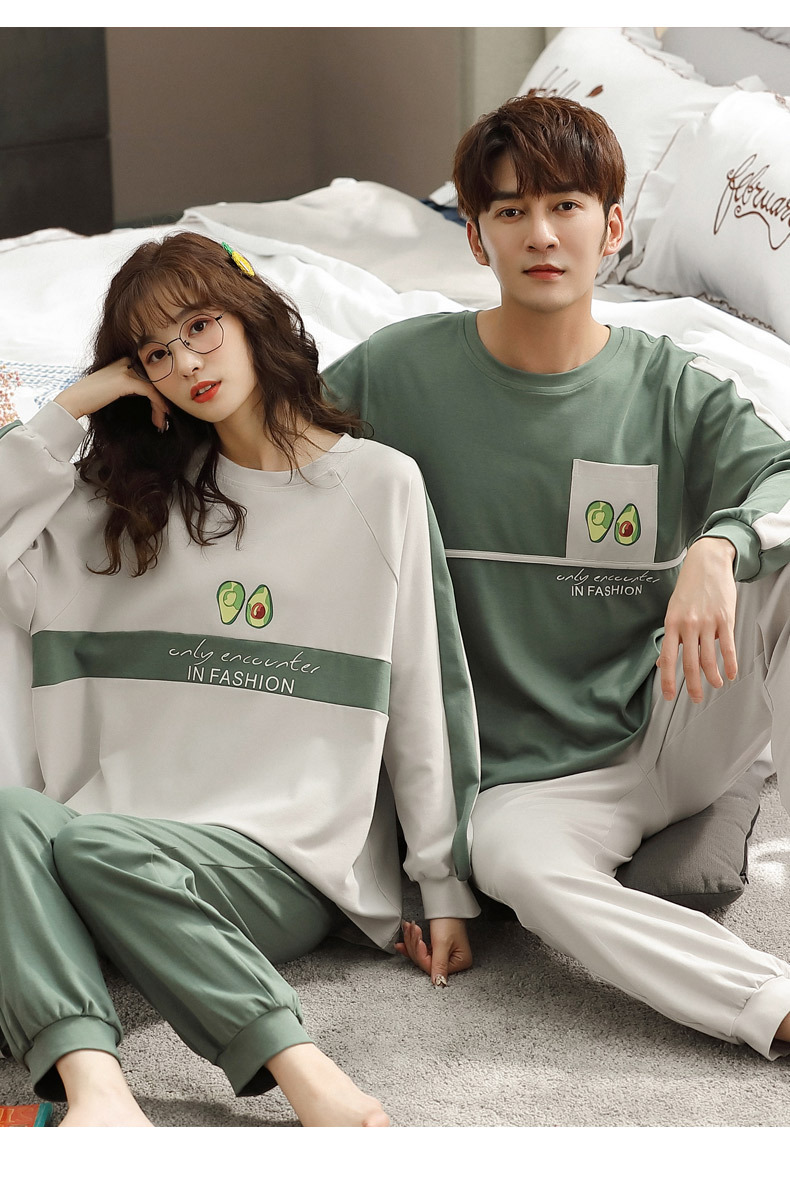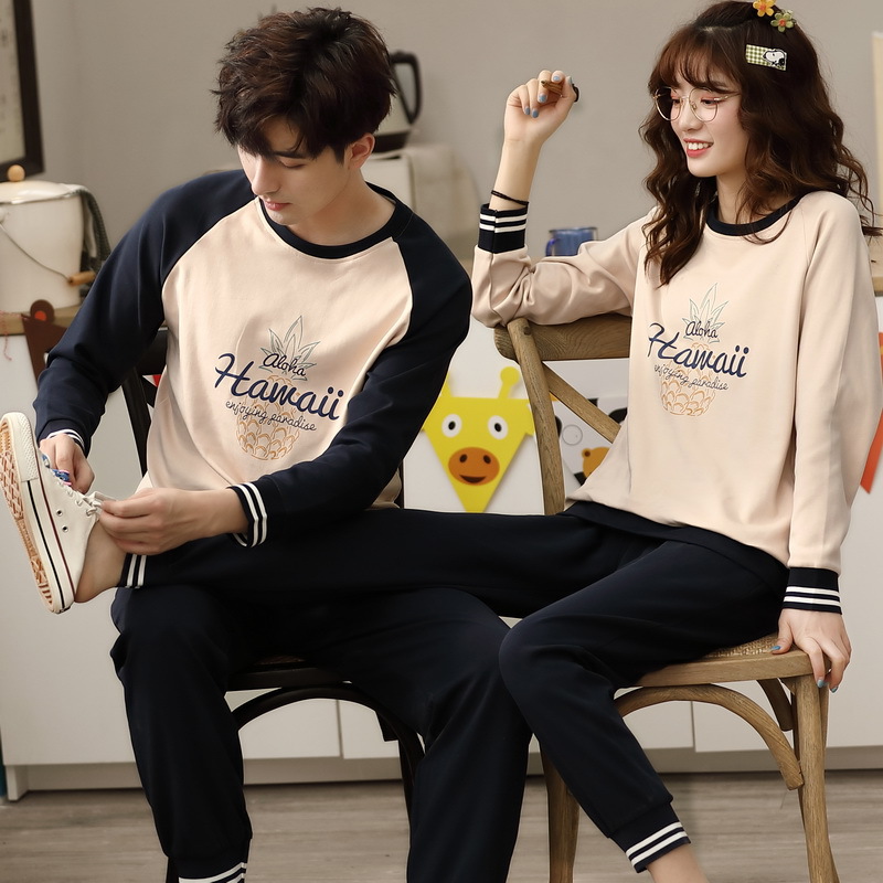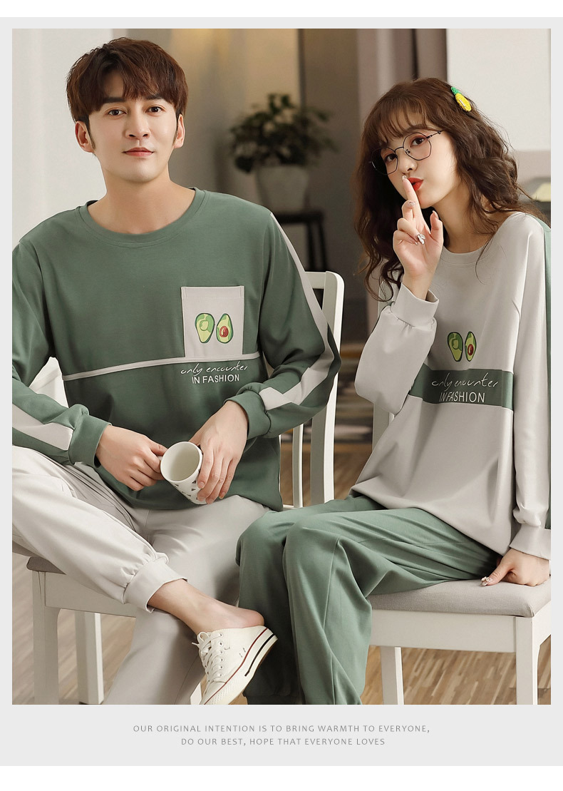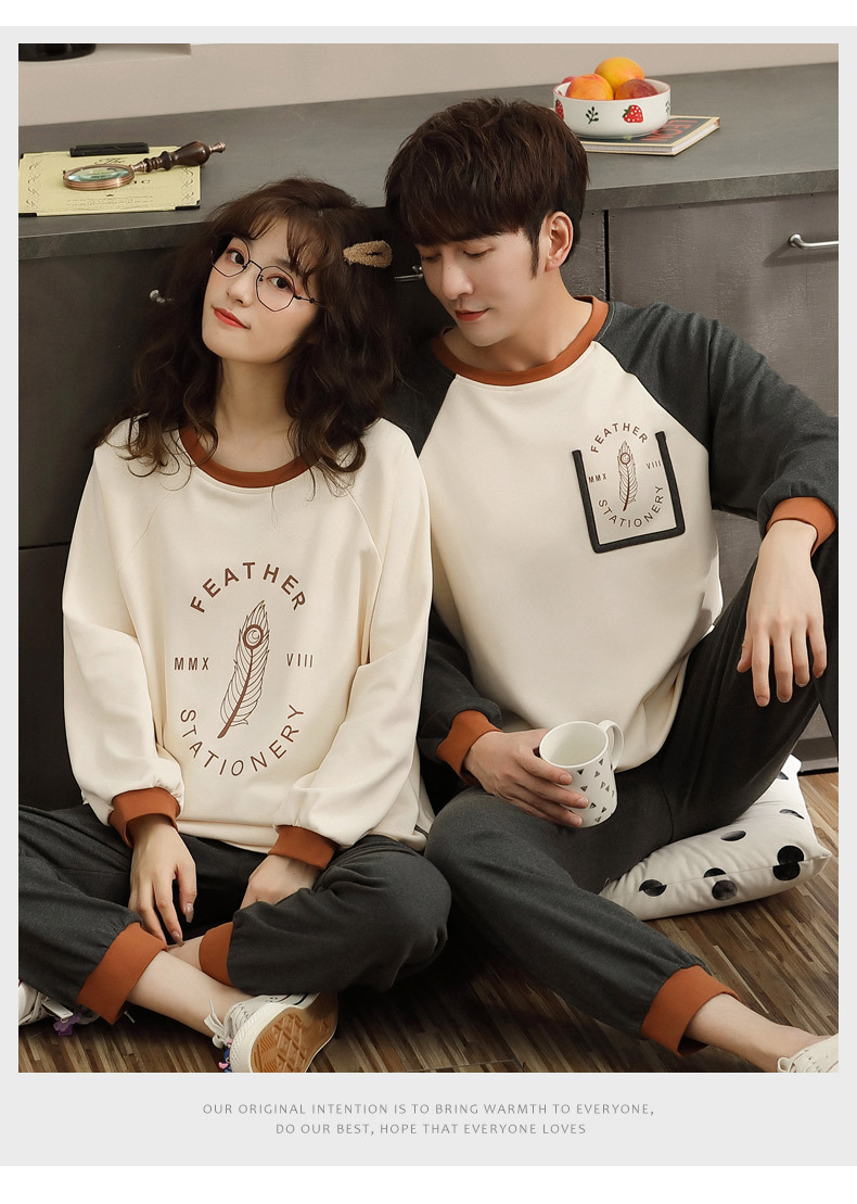 커플 잠옷 긴 소매 라운드 넥 풀오버 면 가을 플러스 사이즈 남자의 가정 의류 여자의 가을 면 세트 착용 할 수 있습니다스토어 가기