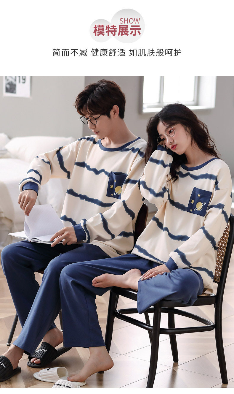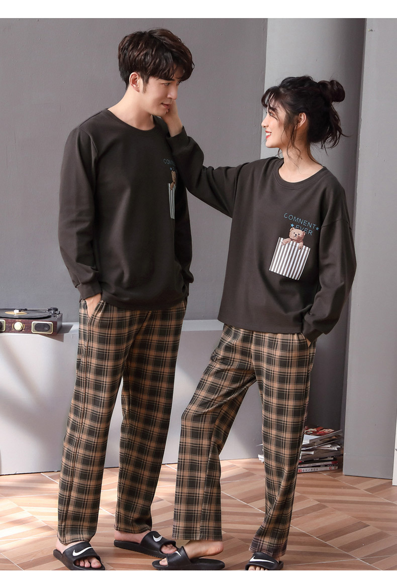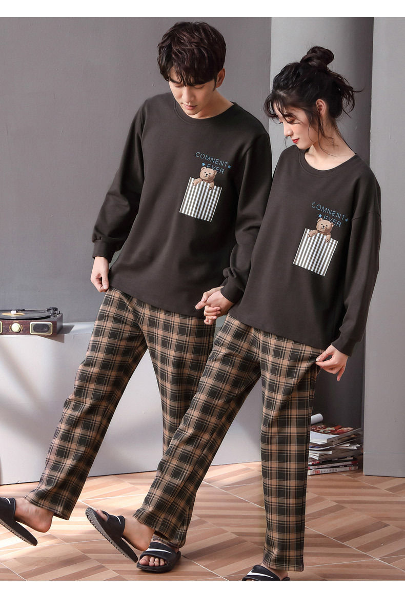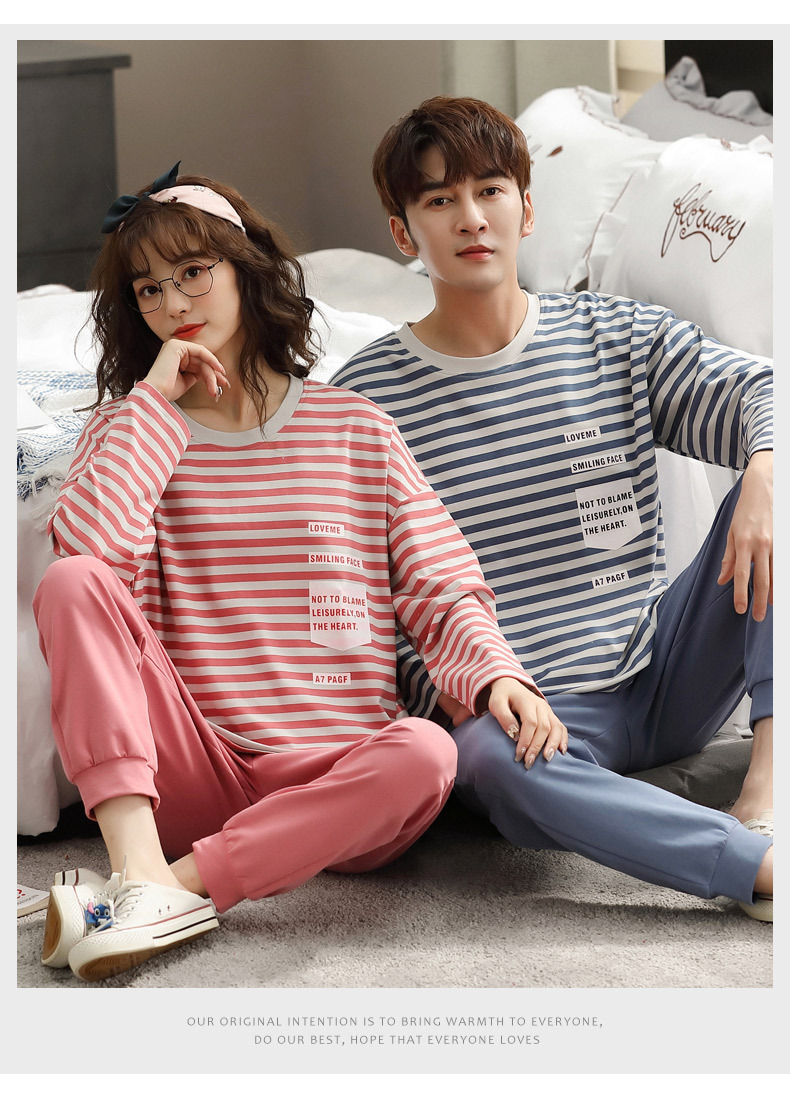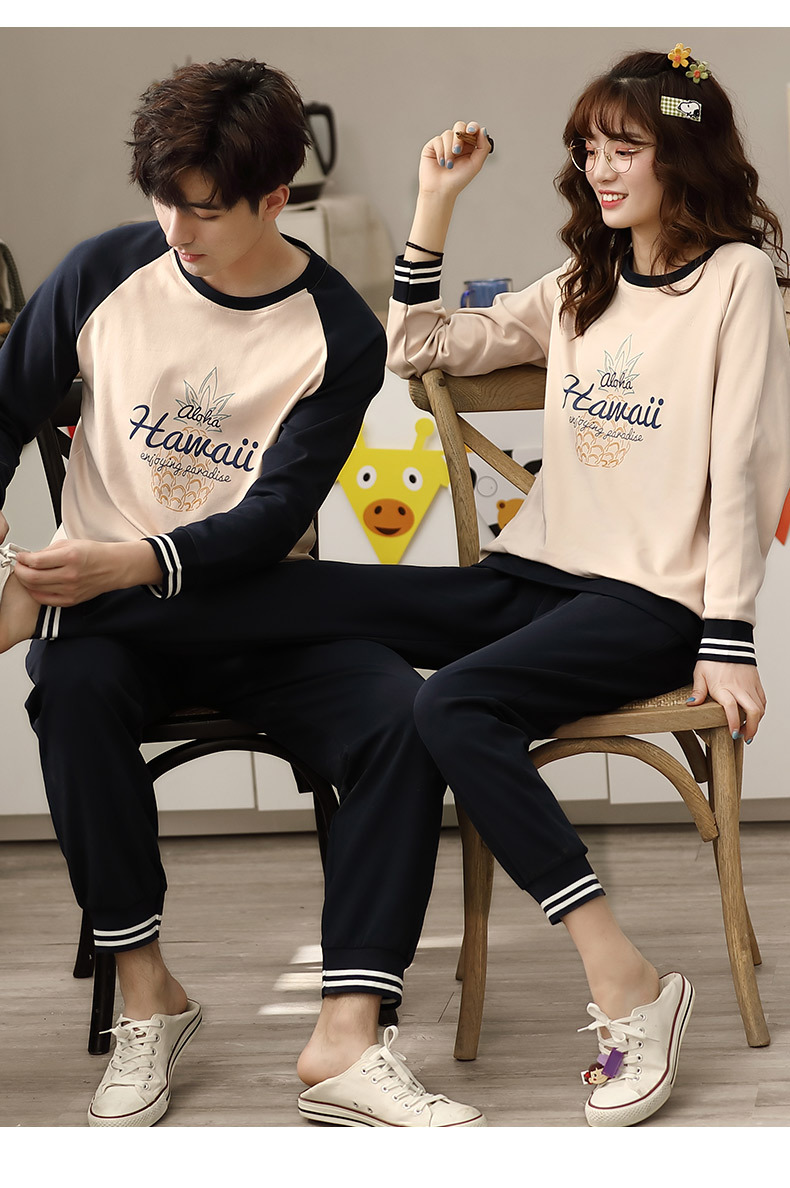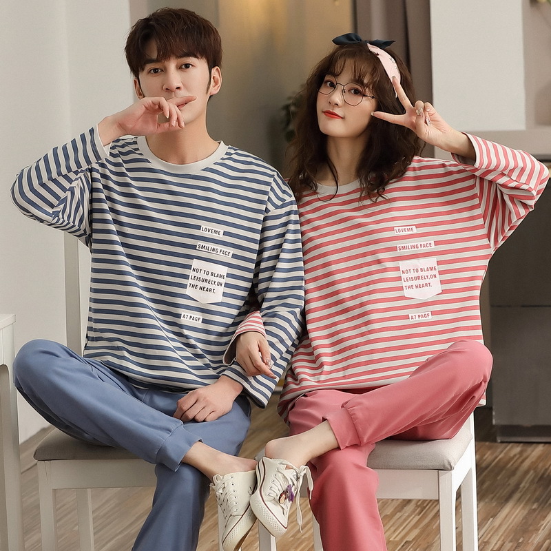 커플 잠옷 긴 소매 라운드 넥 풀오버 면 가을 플러스 사이즈 남자의 가정 의류 여자의 가을 면 세트 착용 할 수 있습니다스토어 가기