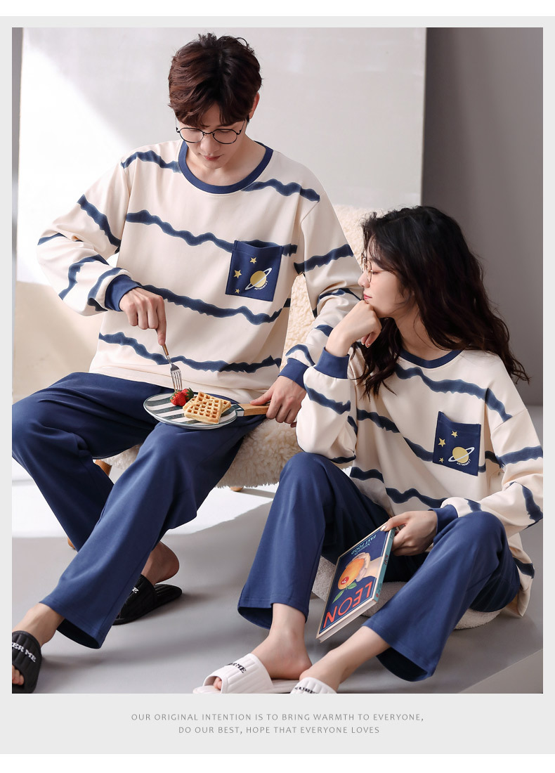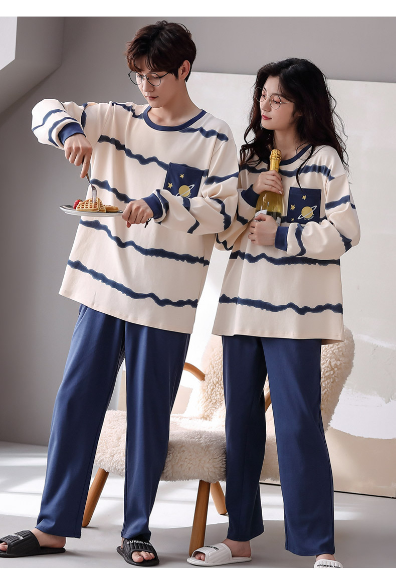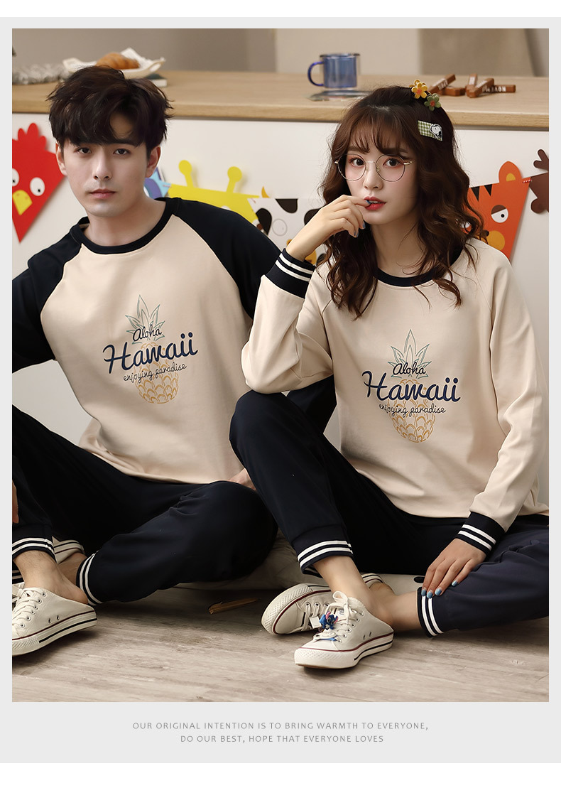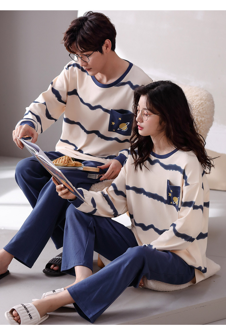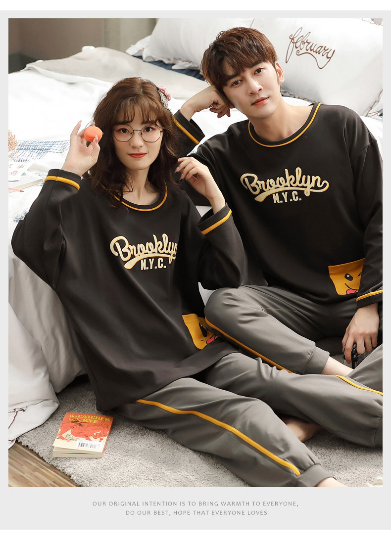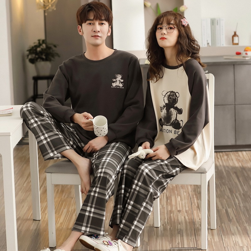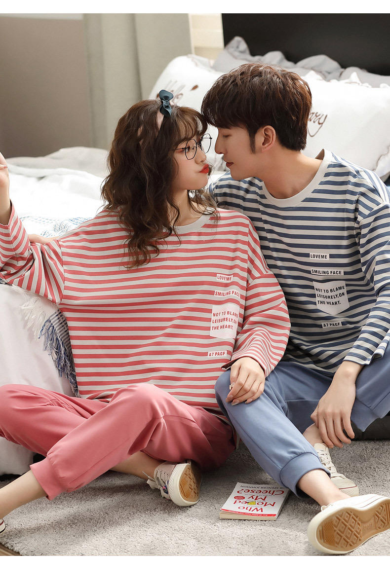 커플 잠옷 긴 소매 라운드 넥 풀오버 면 가을 플러스 사이즈 남자의 가정 의류 여자의 가을 면 세트 착용 할 수 있습니다스토어 가기