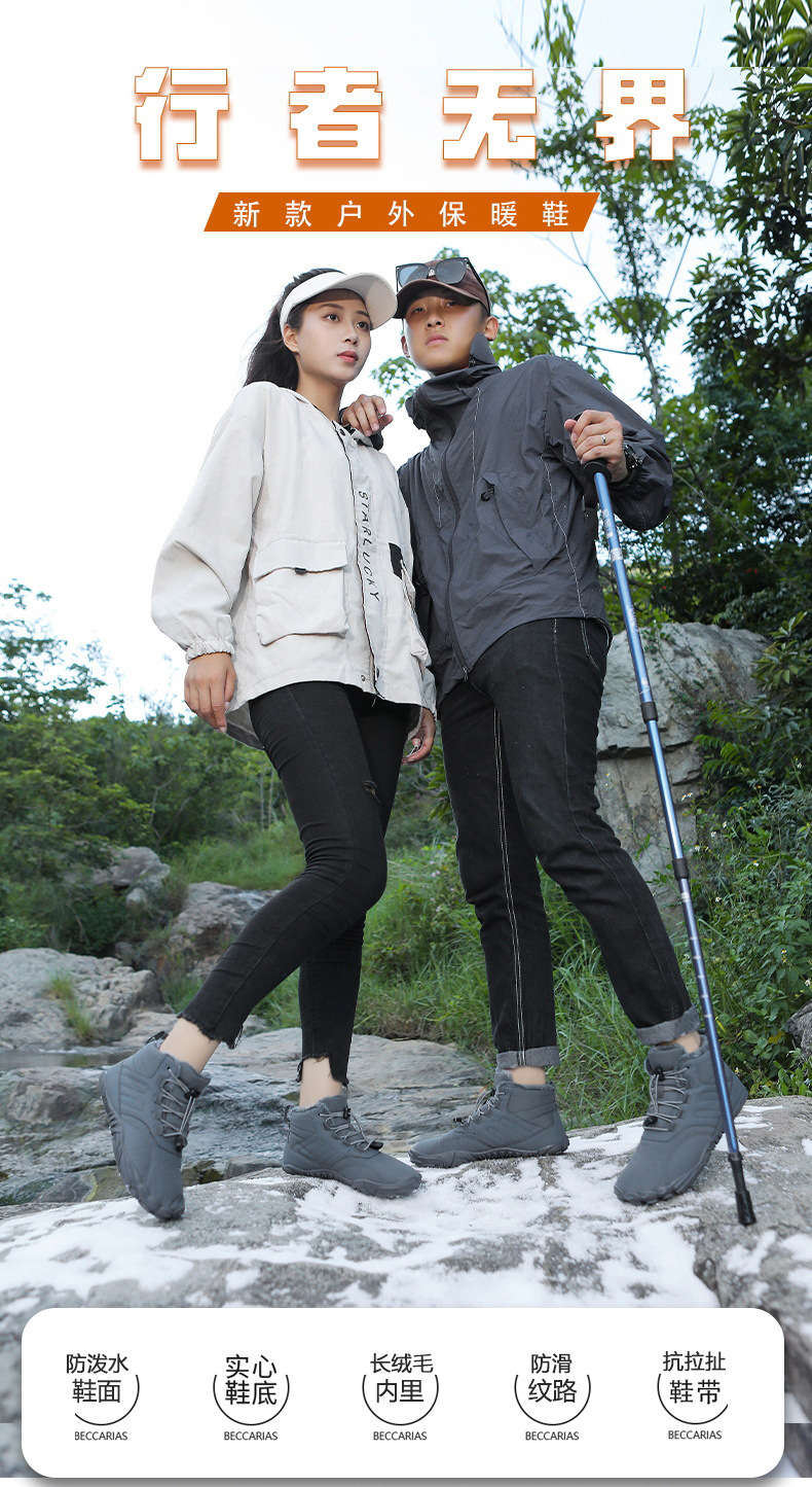 가을과 겨울 면화 신발 연인을위한 하이킹 신발 겨울 남성과 여성 하이킹 미끄럼 방지 방수 빵 신발 기모 따뜻한 스노우 부츠