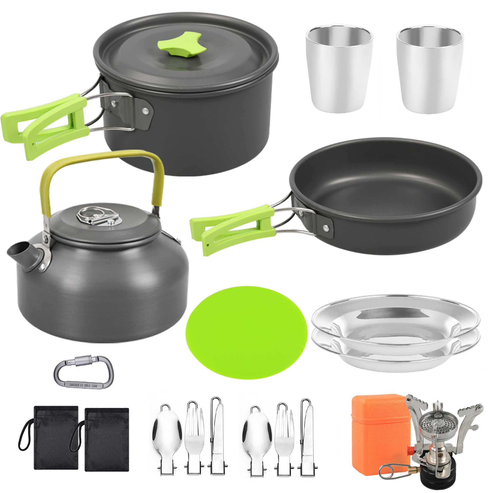 야외 캠핑 308 세트 냄비 플러스 스테인레스 스틸 플레이트 더블 워터 컵 스냅 식사 가방 미니 삼각형 스토브 매트 조합스토어 가기