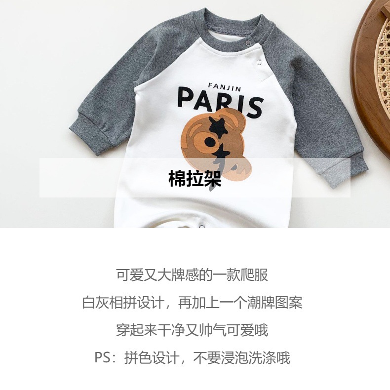 유아 봄과 가을 새로운 아기의 패치 워크 인쇄 곰 등산 세트 가을 순면 편지 하 하 하 옷 겉옷 유행스토어 가기