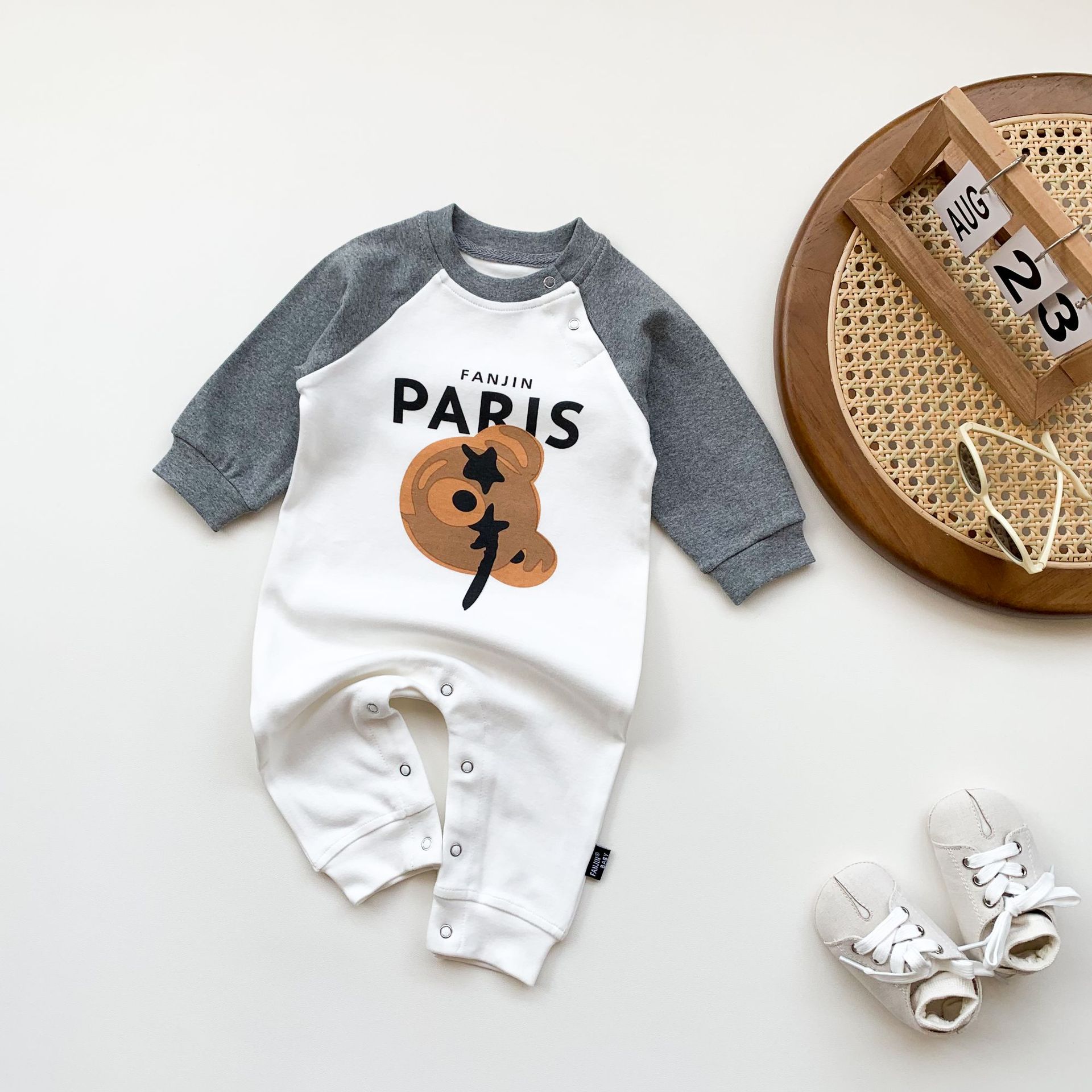 유아 봄과 가을 새로운 아기의 패치 워크 인쇄 곰 등산 세트 가을 순면 편지 하 하 하 옷 겉옷 유행