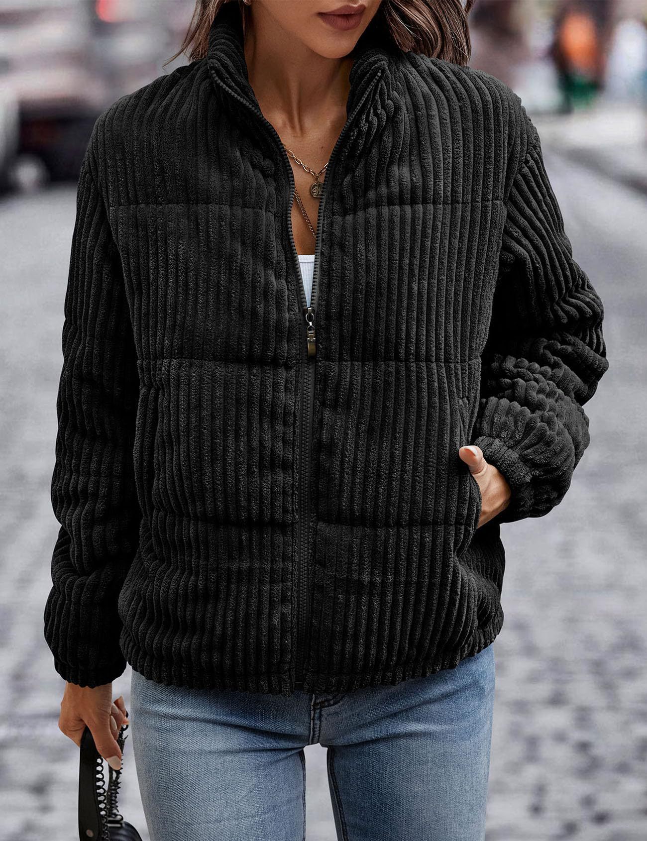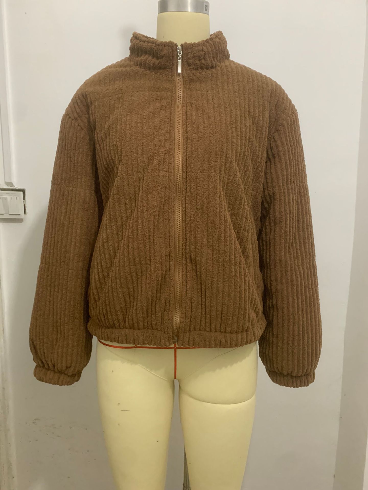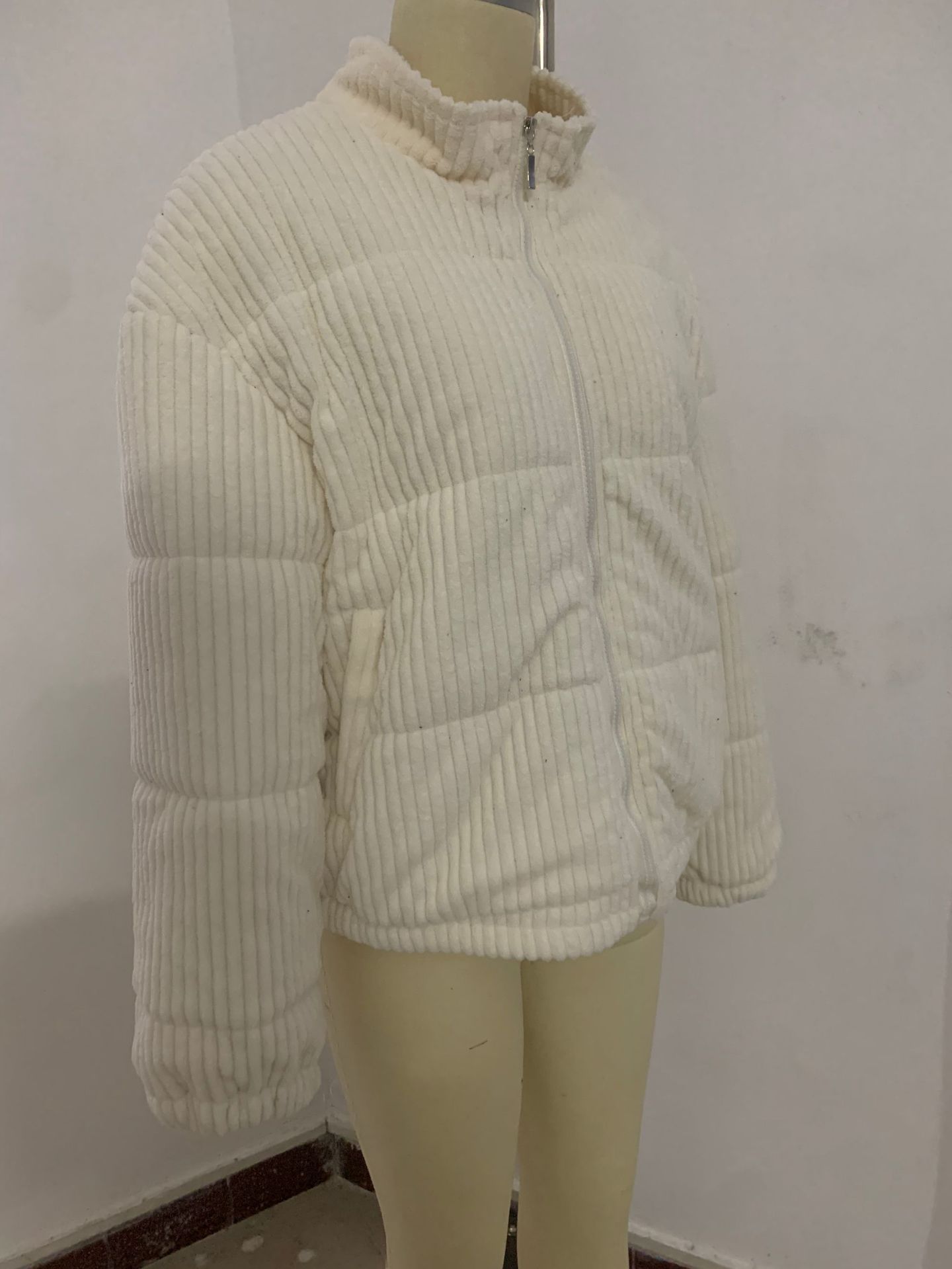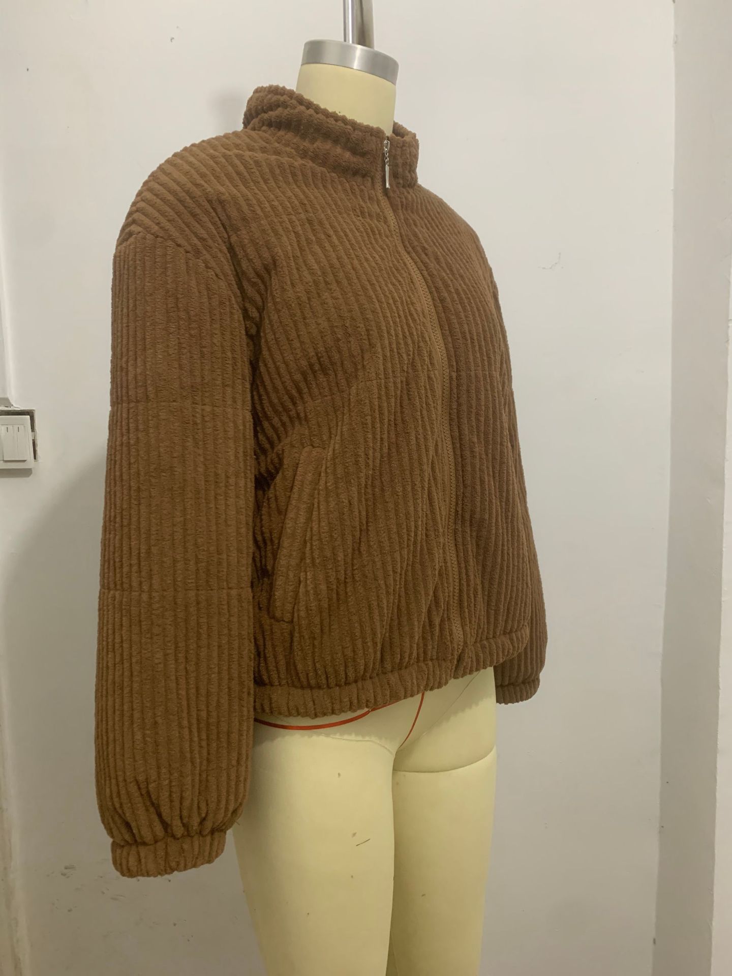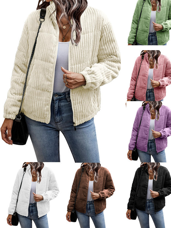 2024년 크로스보더 여성 의류 가을 겨울 코듀로이 스탠드 칼라 긴팔 숏 포켓 재킷 두꺼운 면 코트스토어 가기