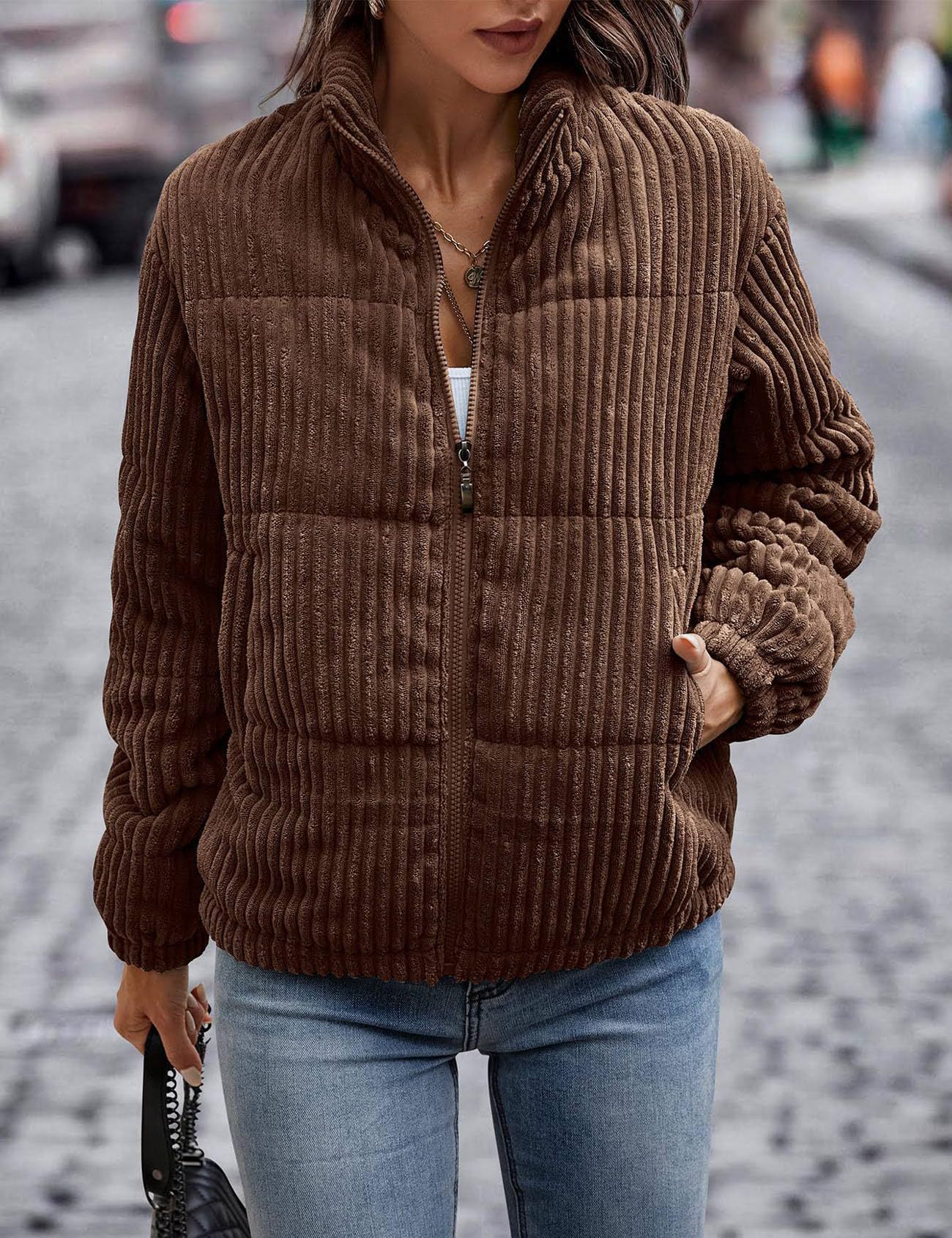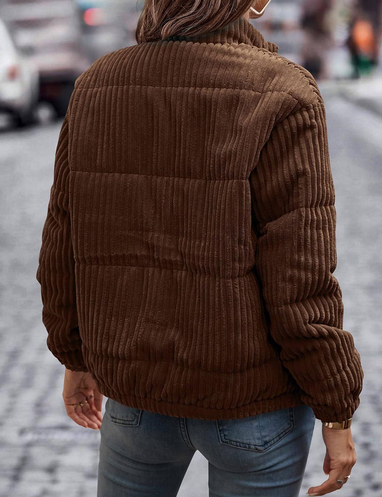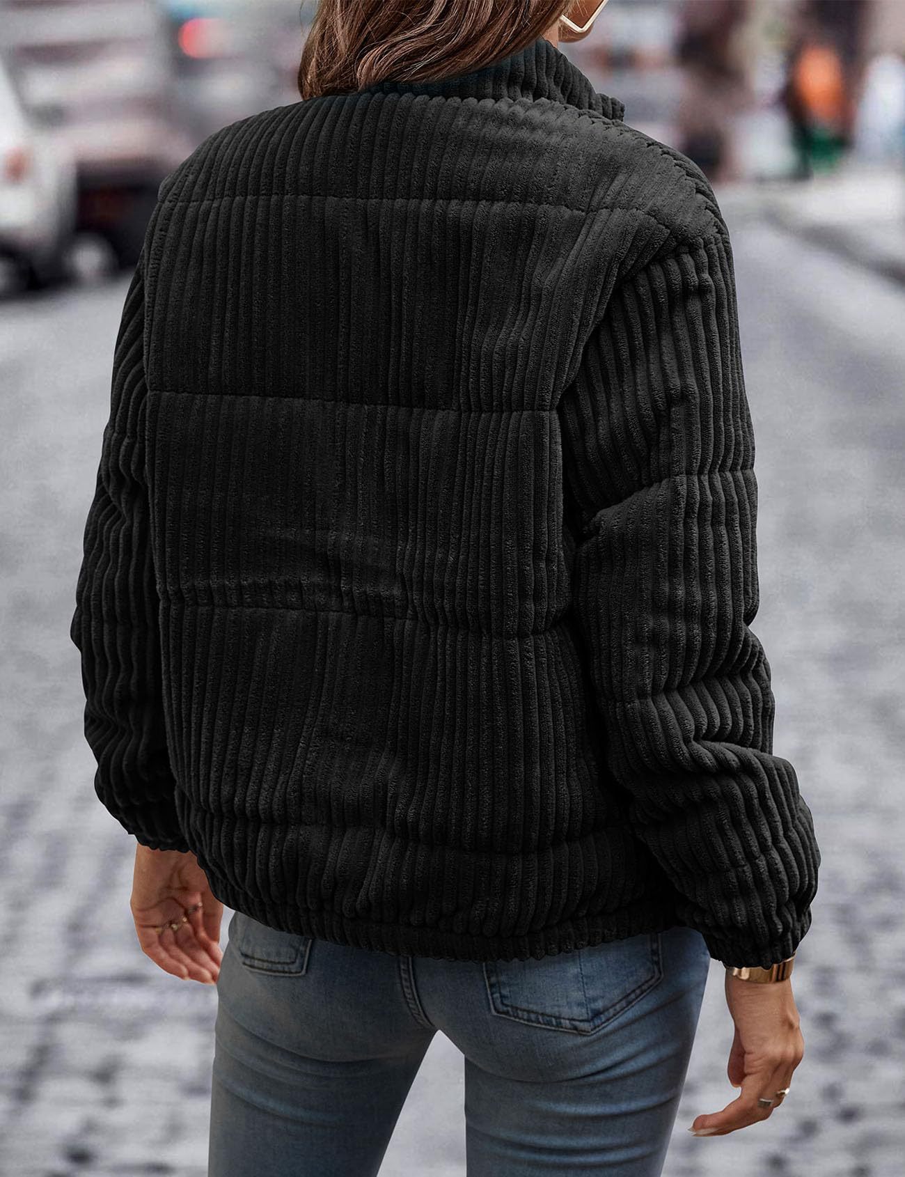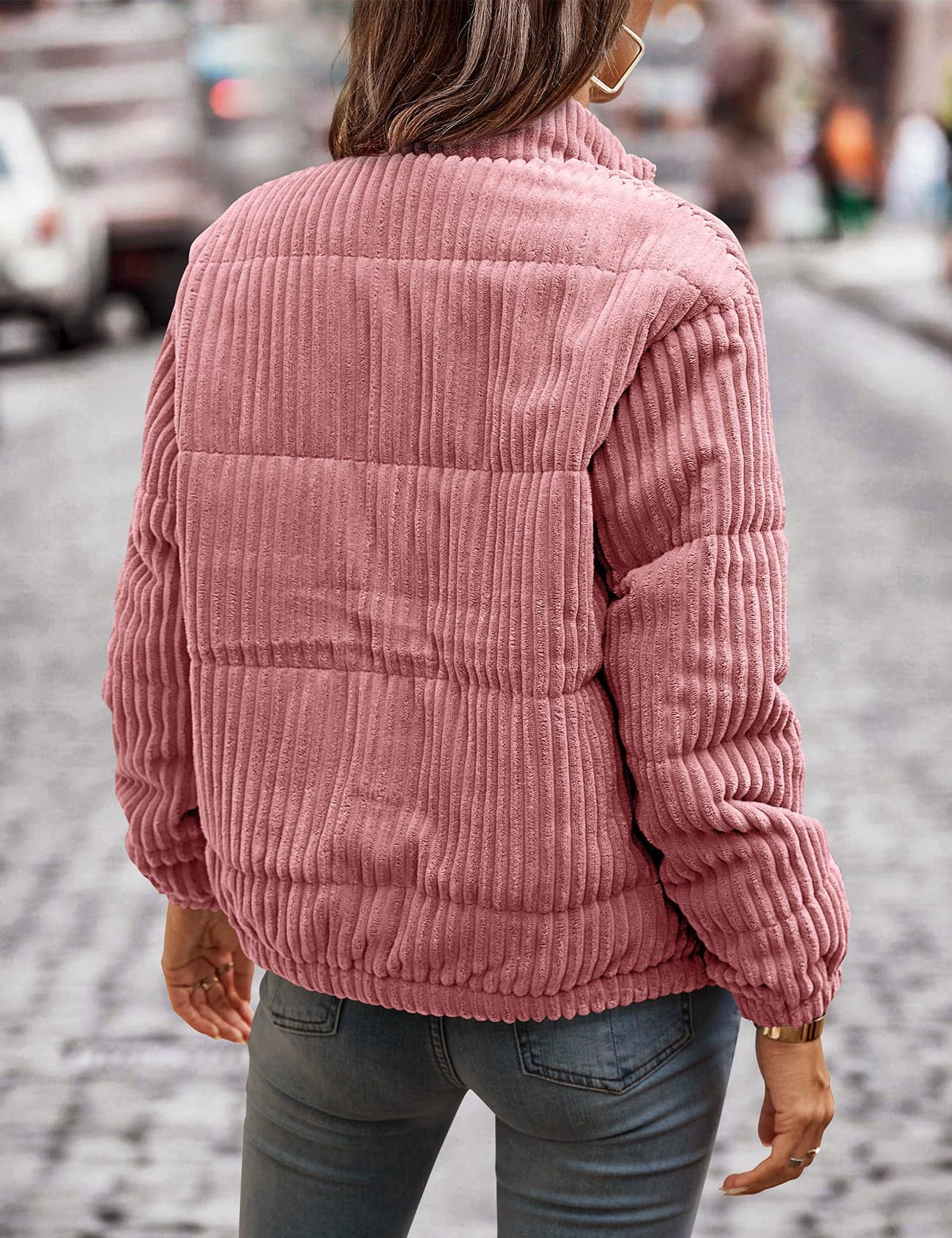 2024년 크로스보더 여성 의류 가을 겨울 코듀로이 스탠드 칼라 긴팔 숏 포켓 재킷 두꺼운 면 코트스토어 가기