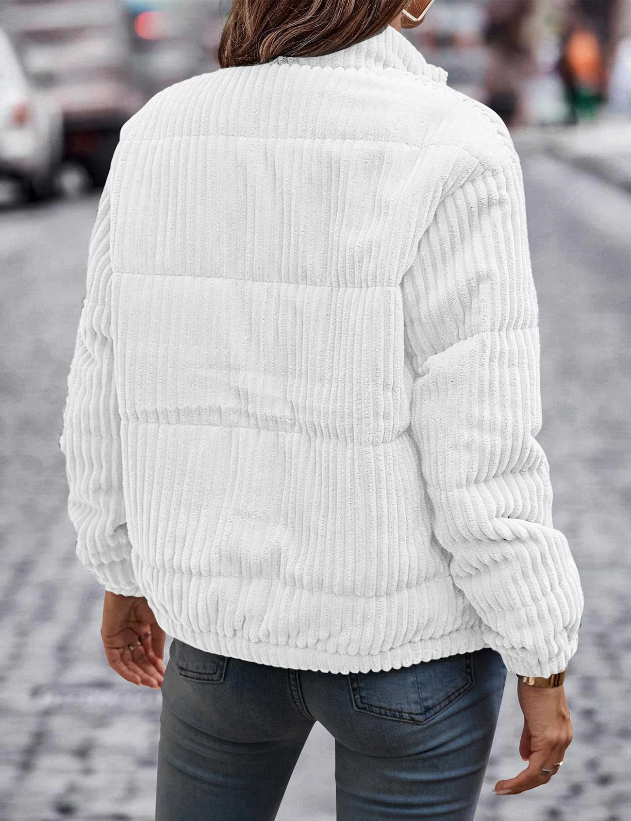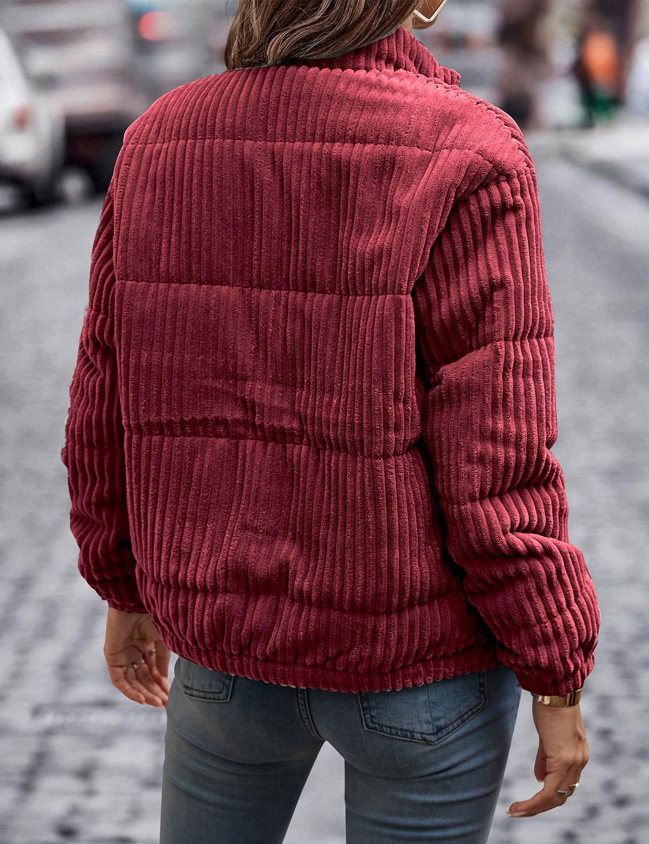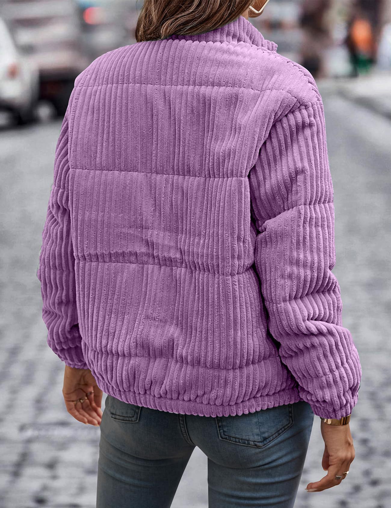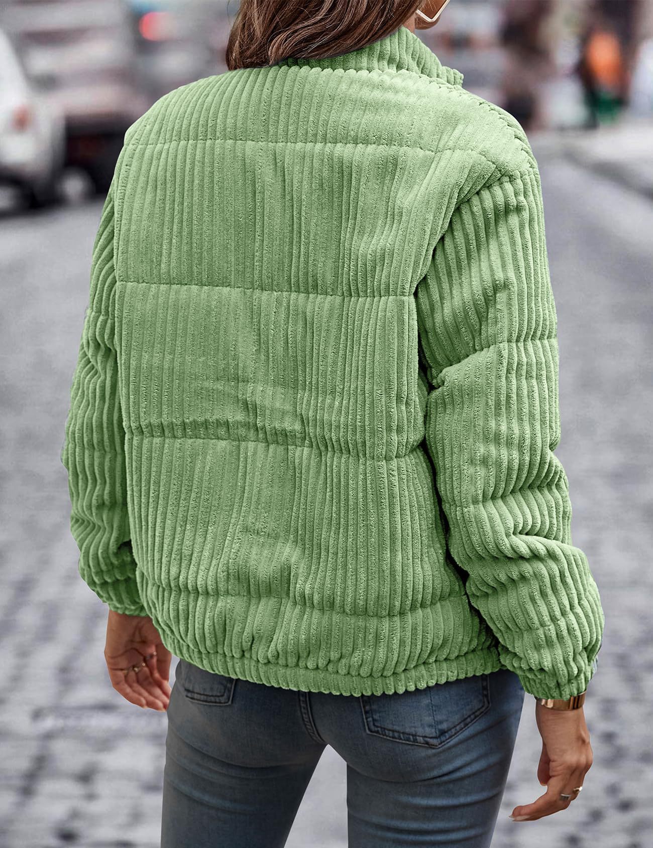2024년 크로스보더 여성 의류 가을 겨울 코듀로이 스탠드 칼라 긴팔 숏 포켓 재킷 두꺼운 면 코트스토어 가기