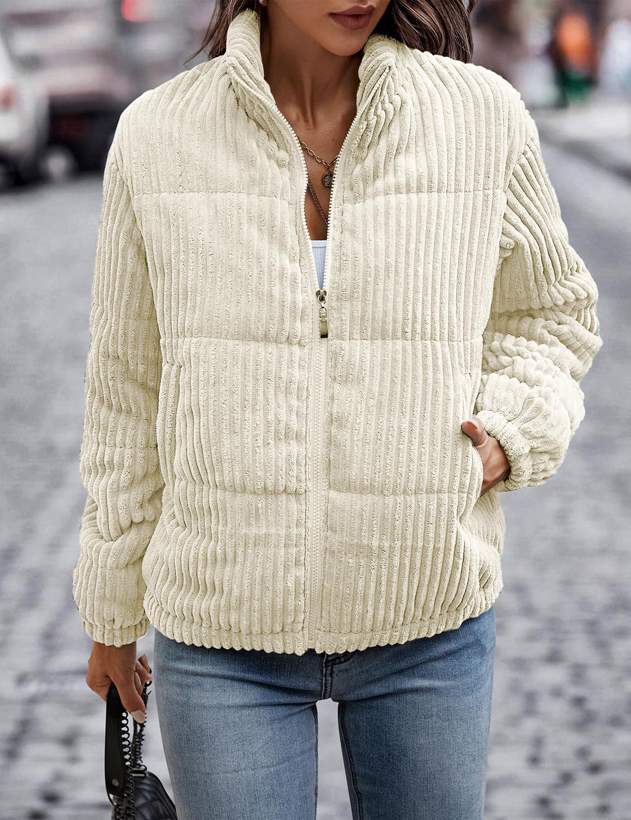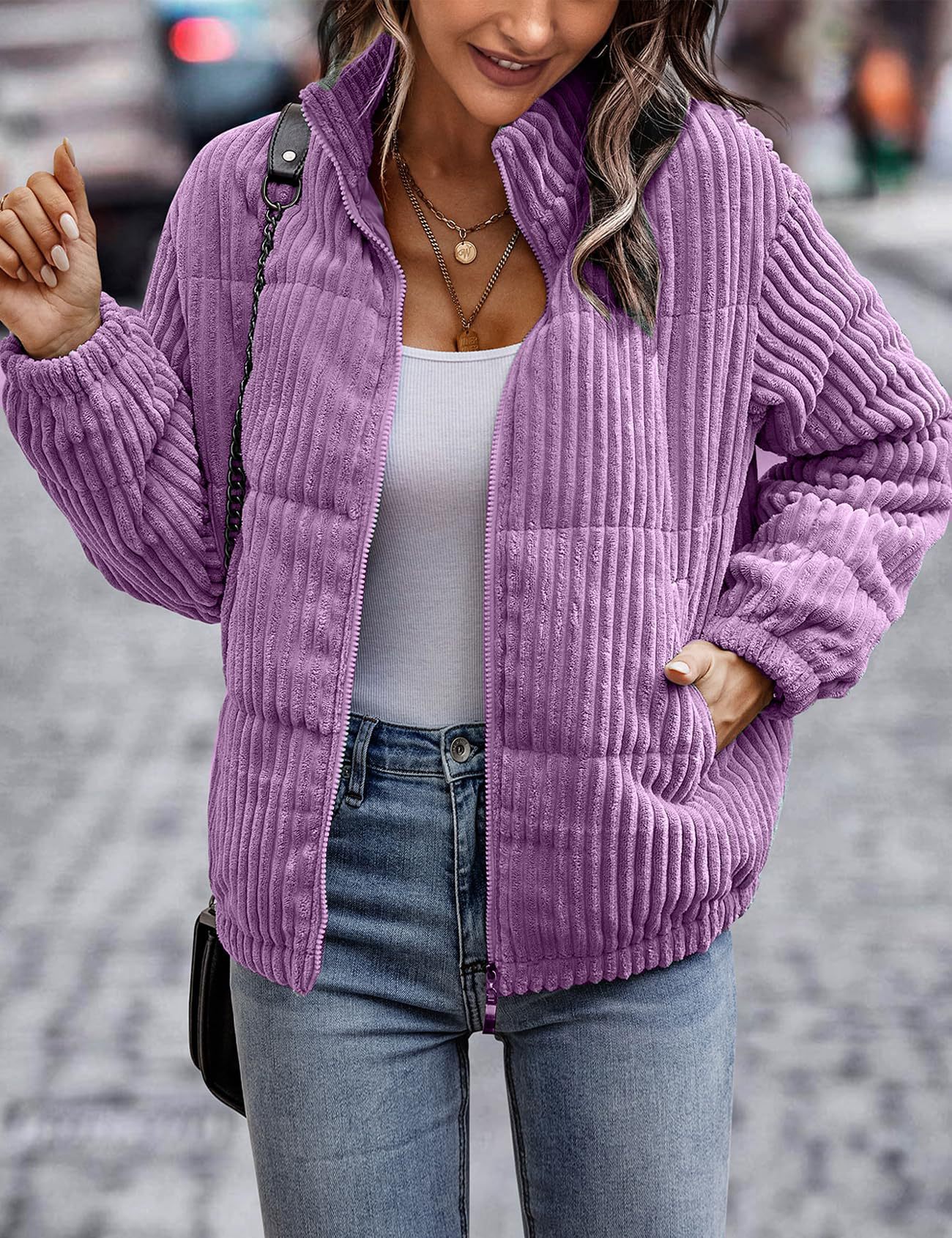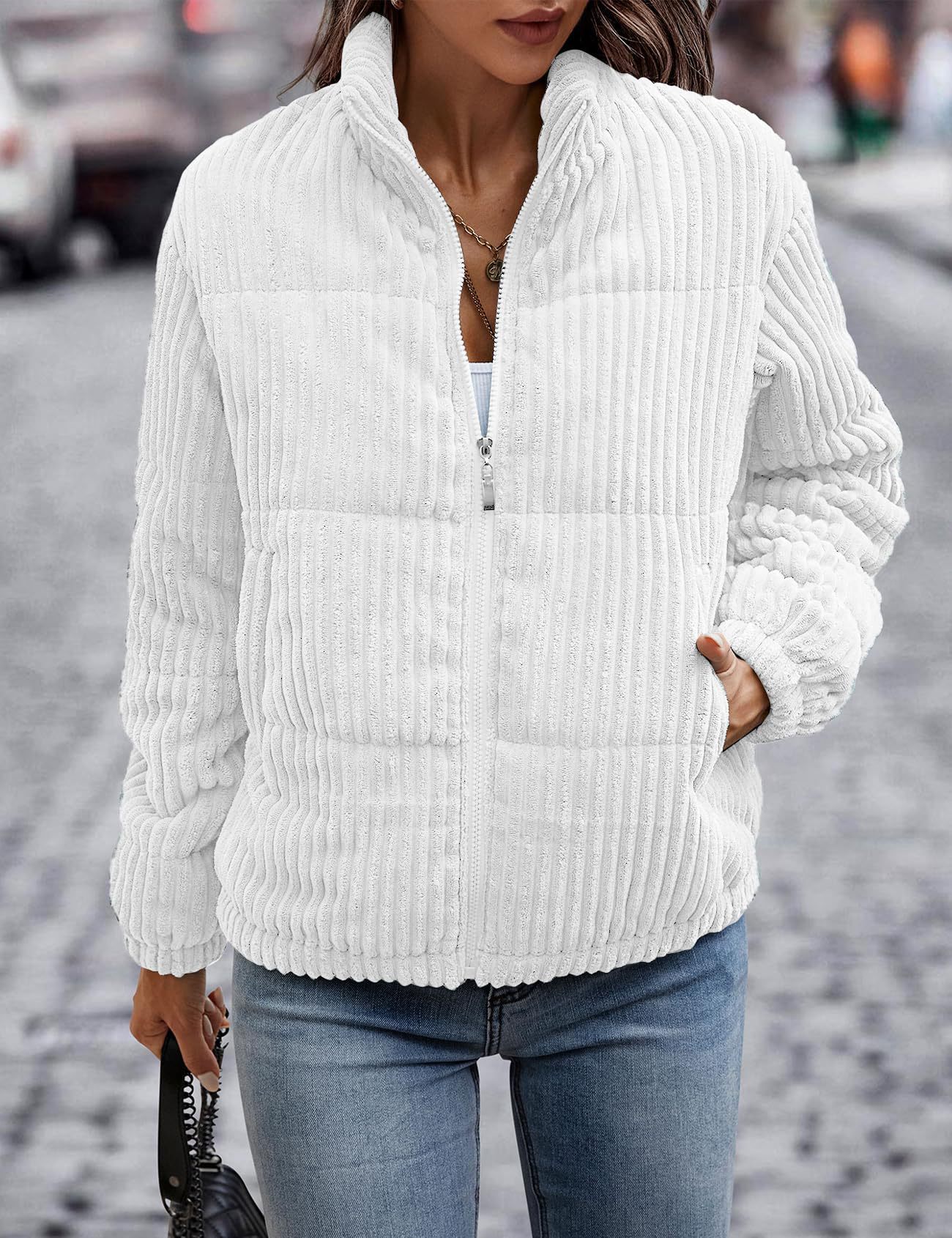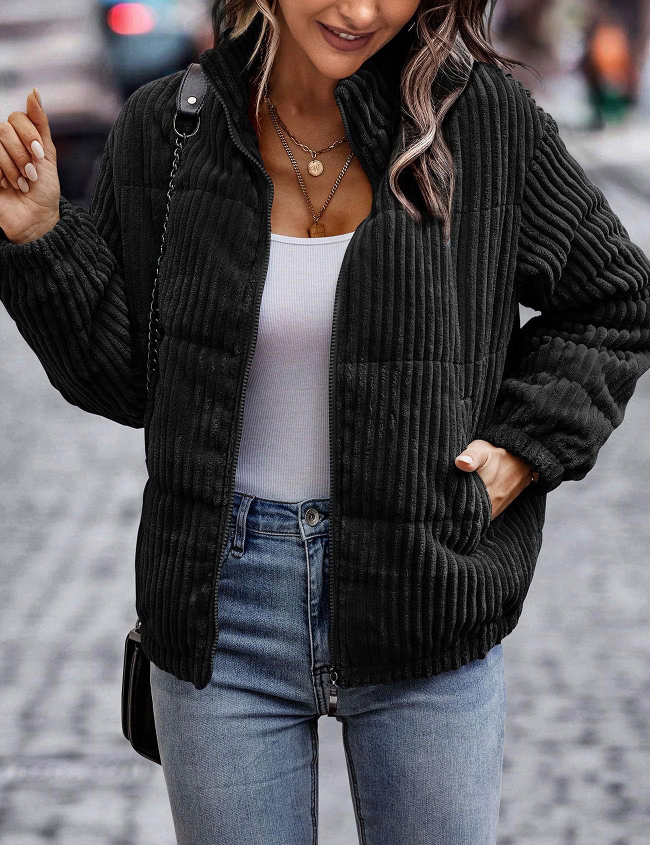 2024년 크로스보더 여성 의류 가을 겨울 코듀로이 스탠드 칼라 긴팔 숏 포켓 재킷 두꺼운 면 코트스토어 가기