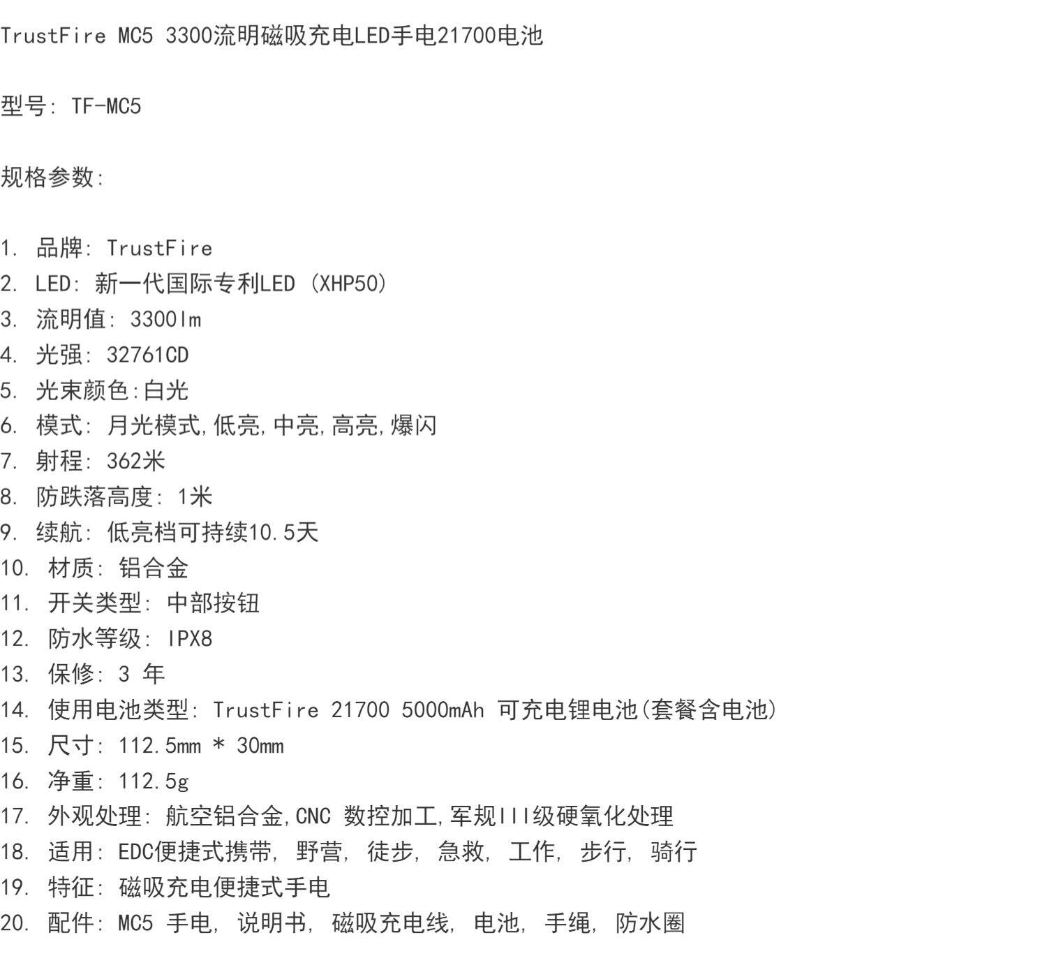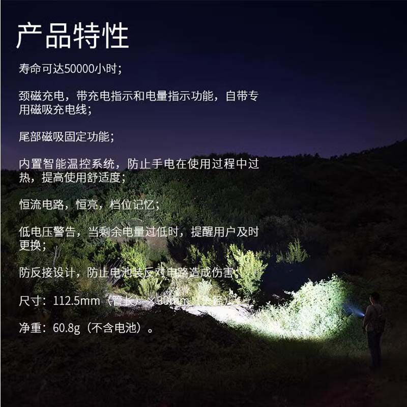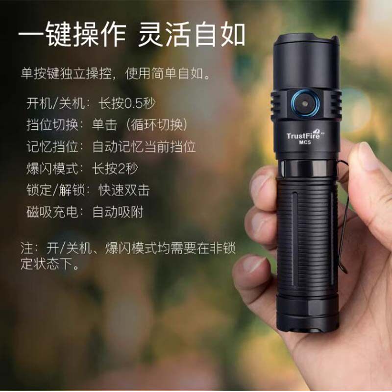 MC3 使用21700锂电池,磁吸充电 铝合金硬质,超长续航,徒步穿越,户外探洞级电筒。