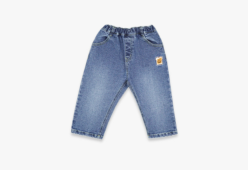 현재 재고 있음 PS24 가을 겨울 신상 아동 캐주얼 바지 중소 아동용 만화 빵 글자 자수 플리스 데님 팬츠스토어 가기