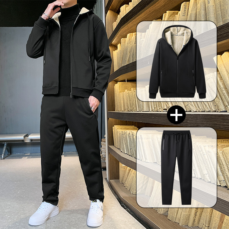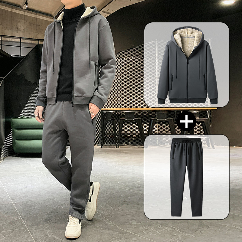 남성용 플리스 세트 신상 겨울 두꺼운 후드 가디건 양털 따뜻한 캐주얼 스포츠 세트 남성용 프린트스토어 가기