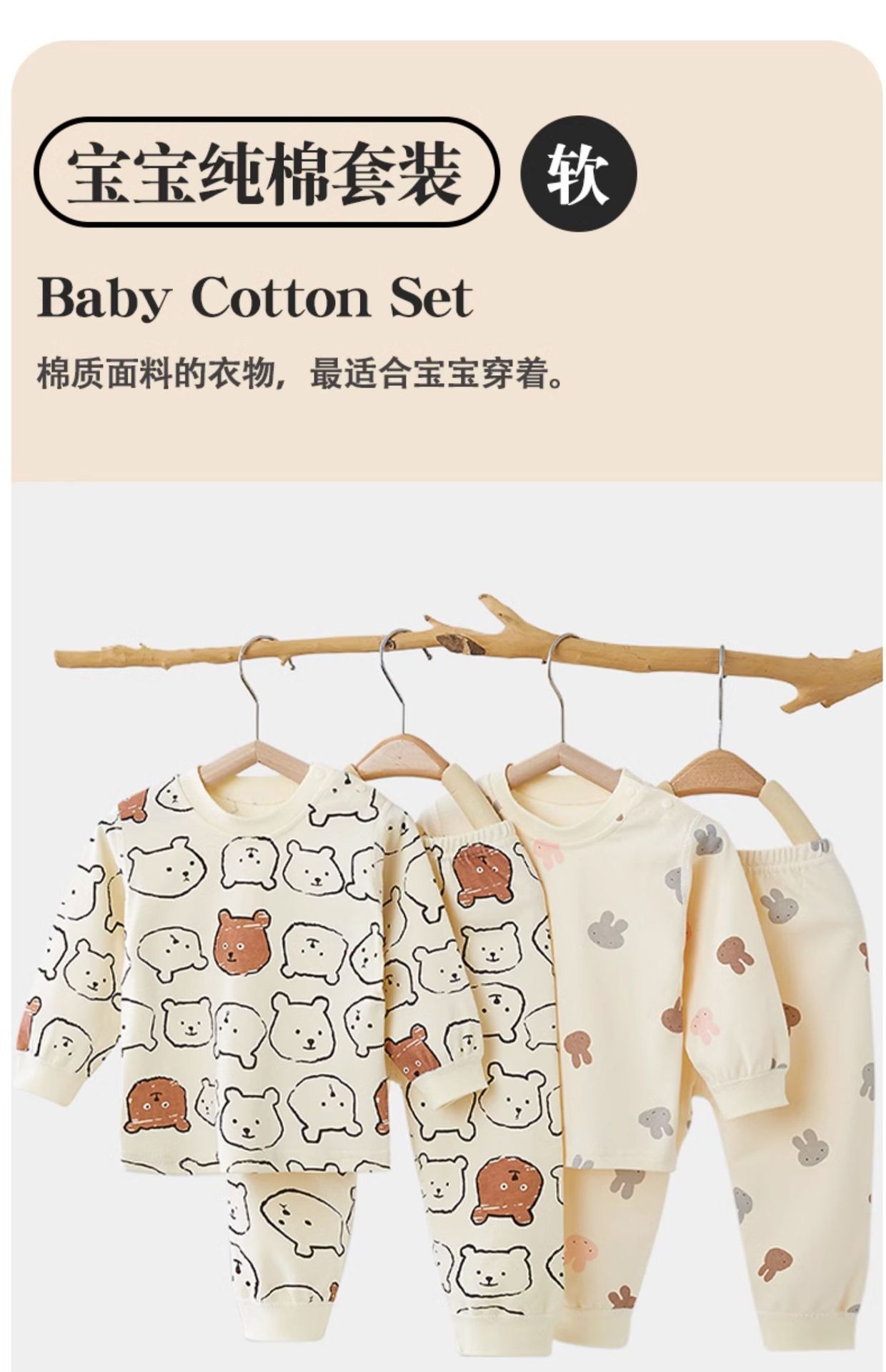 가을 옷 긴 바지 순수한면 투피스 바닥 아기 아기 투피스 어린이 속옷 세트 잠옷 풀오버 홈웨어스토어 가기