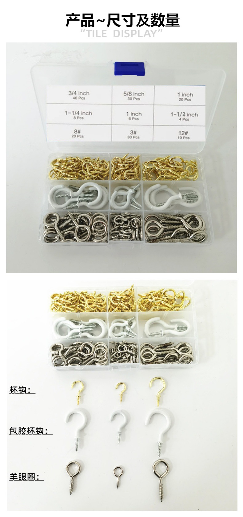 크로스 보더 박스형 후크 9 사양 168PC 흰색 플라스틱 컵 후크 셀프 태핑 나사가 양 아이 링으로 회전스토어 가기
