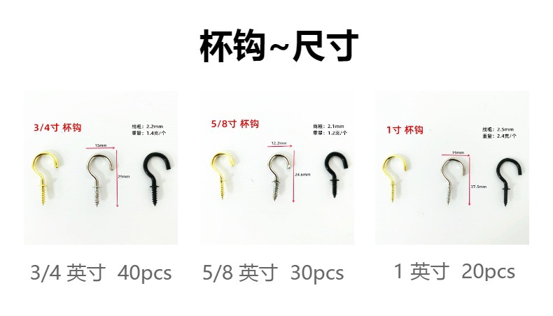 • 골드 컵 색상 + 흰색 고무 컵 후크 + 실버 양 눈 반지