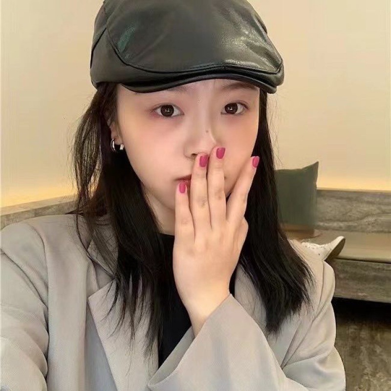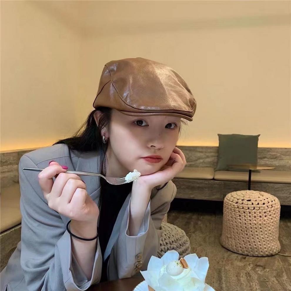 일본식 pu 가죽 베레모 여성의 가을과 겨울 영국 스타일 복고풍 한국 스타일 유행 모든 경기 앞으로 오리 혀 모자스토어 가기