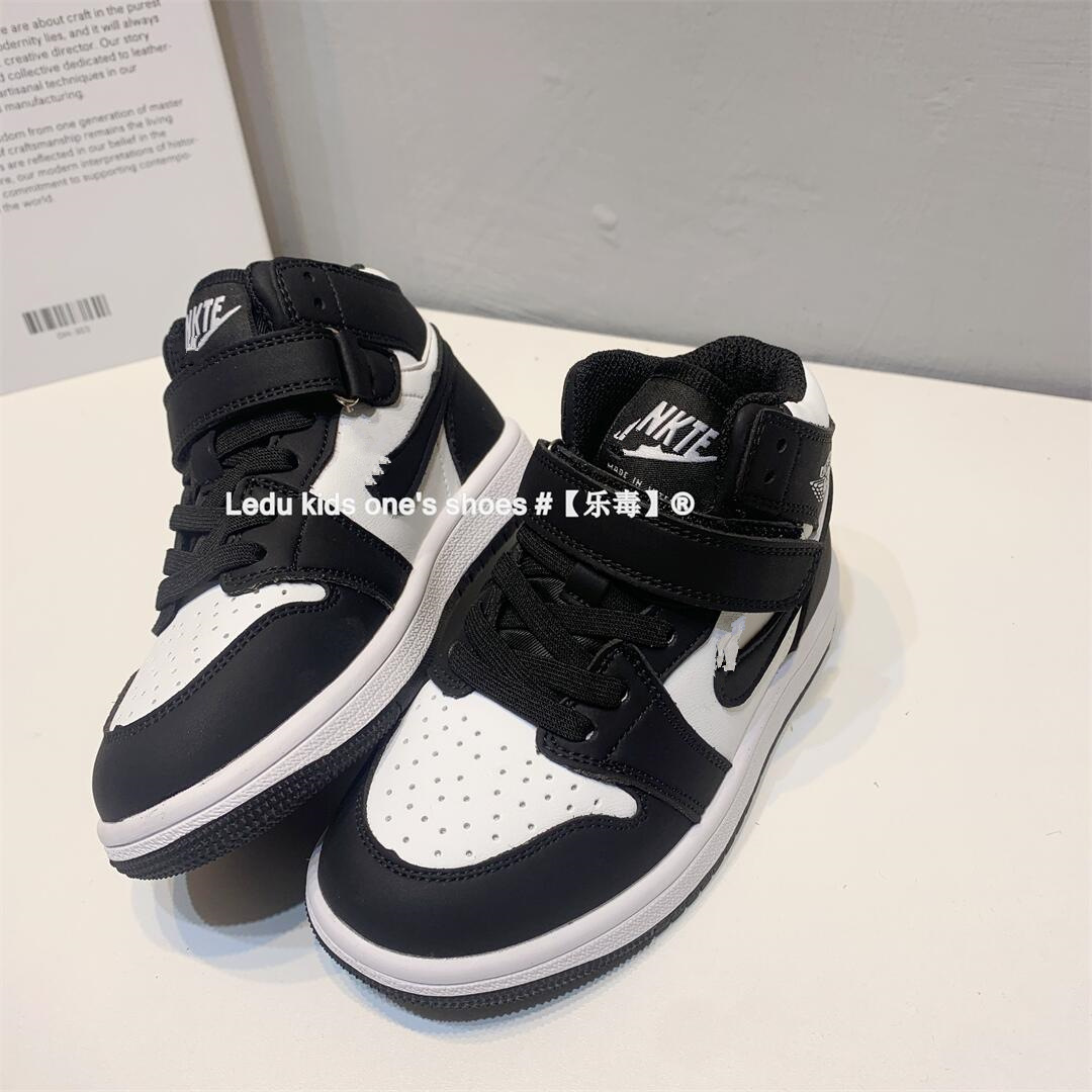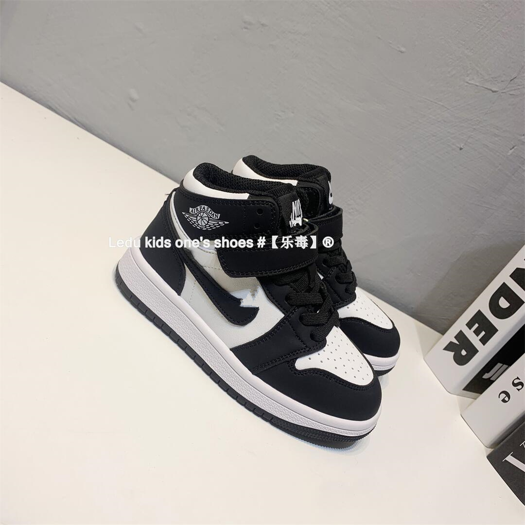 어린이 스포츠 신발 2024 봄과 가을 새로운 흑백 팬더 신발 에어 포스 원 화이트 신발 Aj 어린이 신발 유행 브랜드 보드 신발스토어 가기