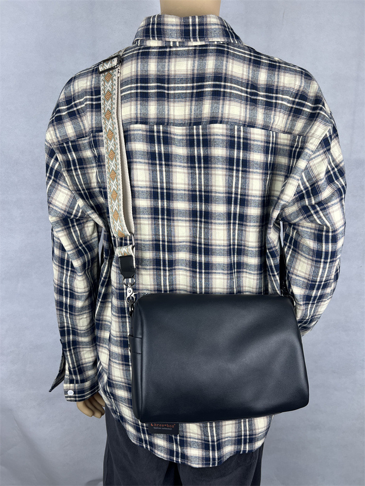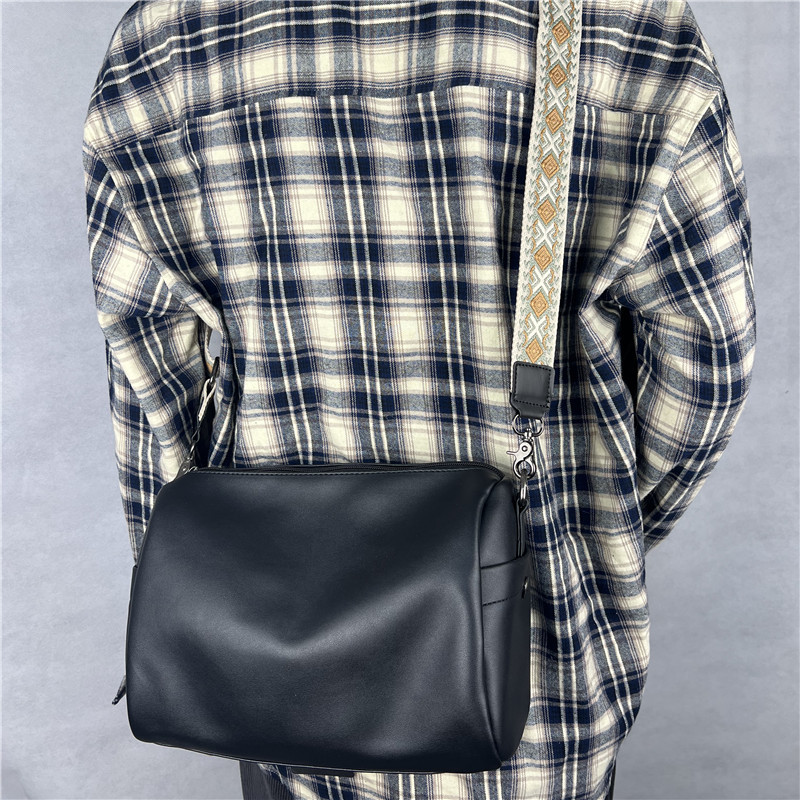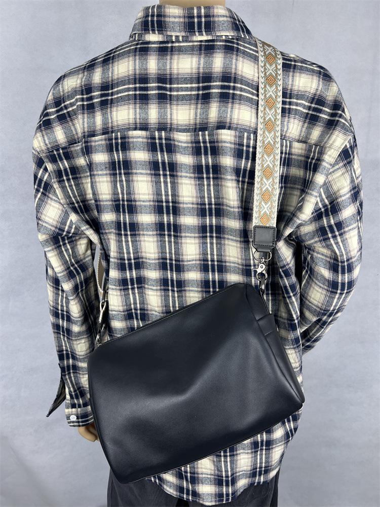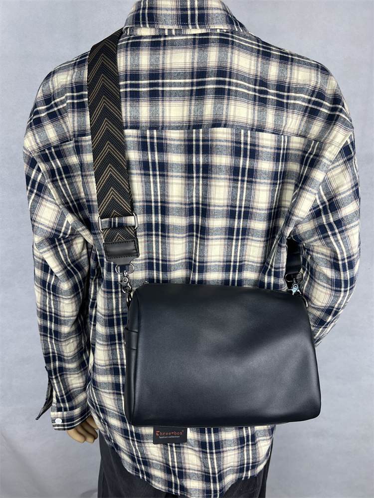 전국 트렌디 한 일본과 한국 숄더백 밝은 심플한 디자인 청소년 남성용 크로스 바디 백 학생용 밝은 부드러운 가죽 플랫 백팩