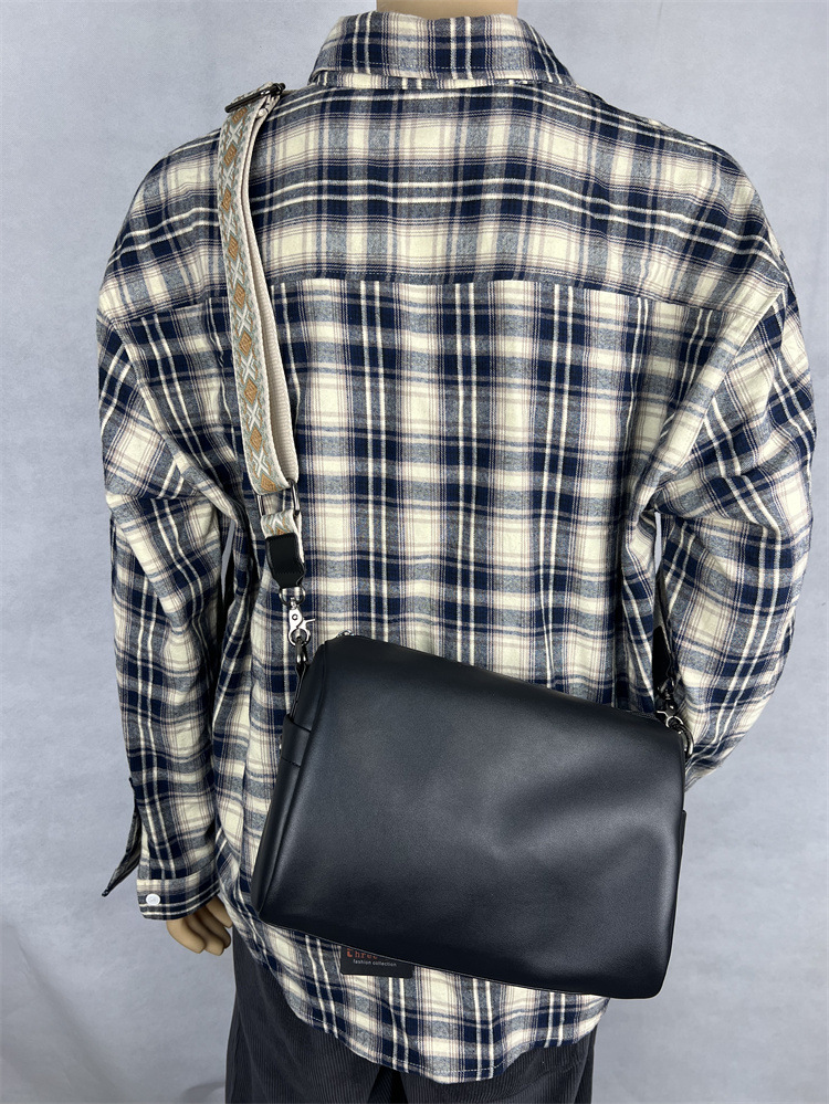 国潮日韩单肩包亮简约设计青年男斜挎包男女学生包亮软皮平板背包