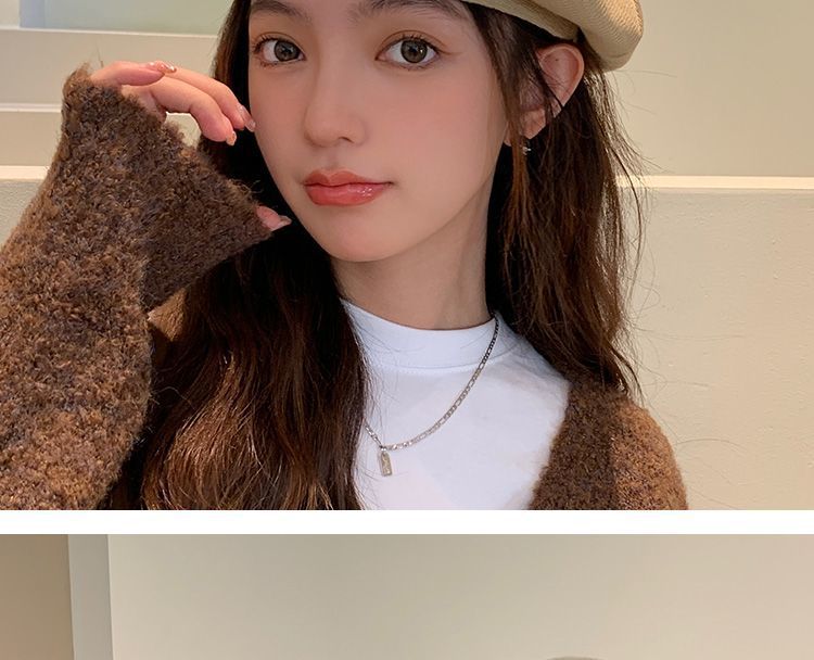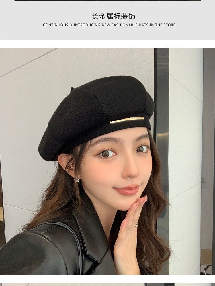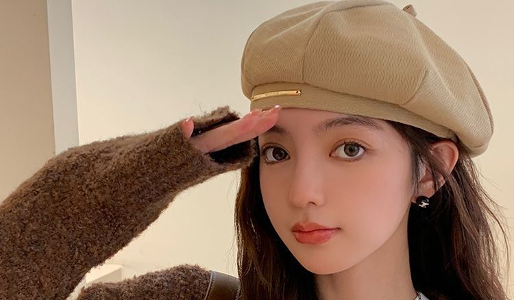 강한 추천 ~ 그물 빨간 베레모 어린이 검은 긴 스트립 로고 얼굴 작은 호박 모자 거리 한국 화가의 모자