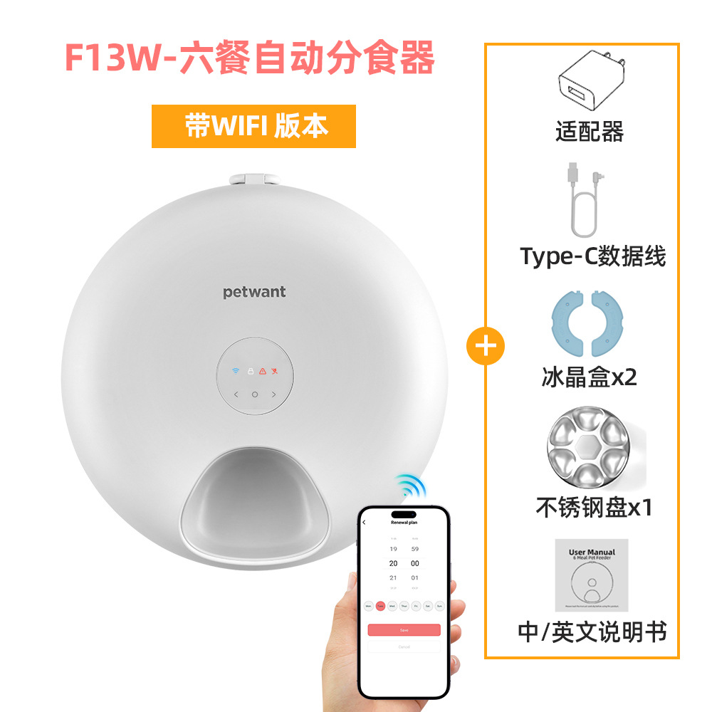 • F13W-Six 식사 피더 [WIFI] (어댑터 2 아이스 크리스탈 박스 1 스테인레스 스틸 플레이트 포함)