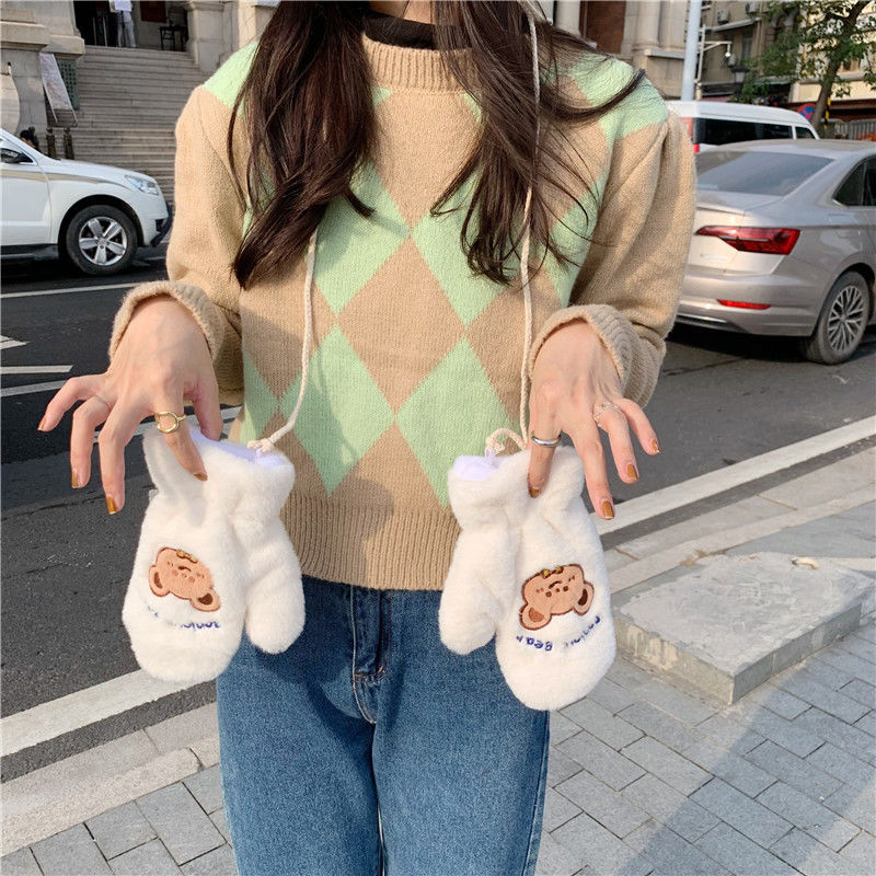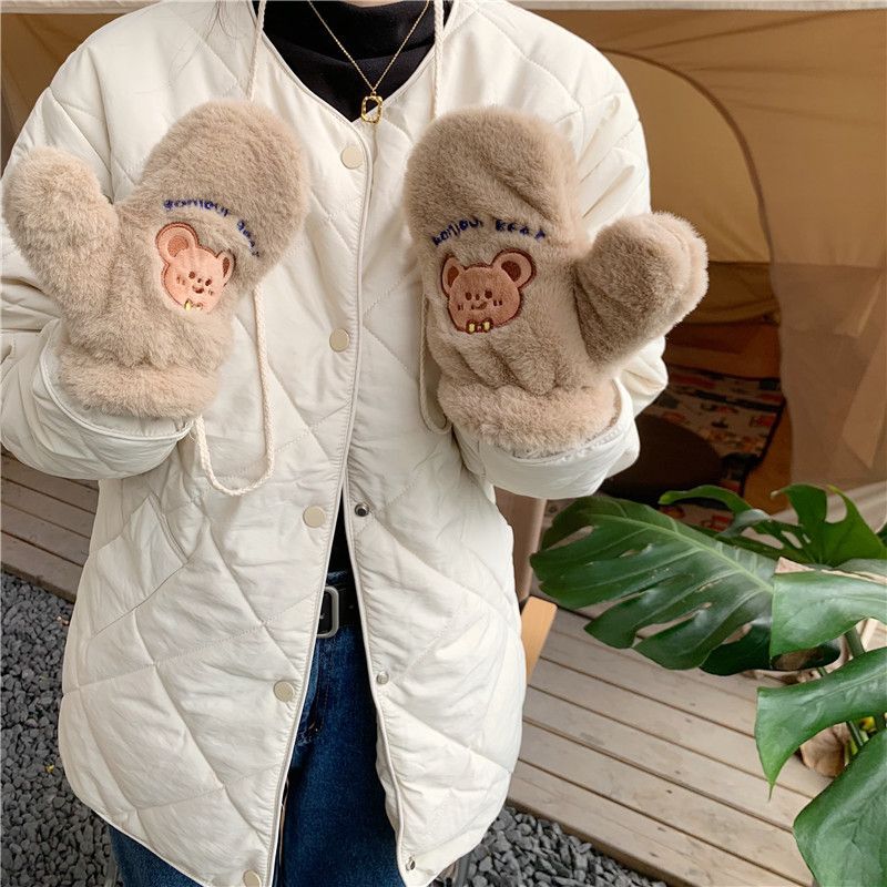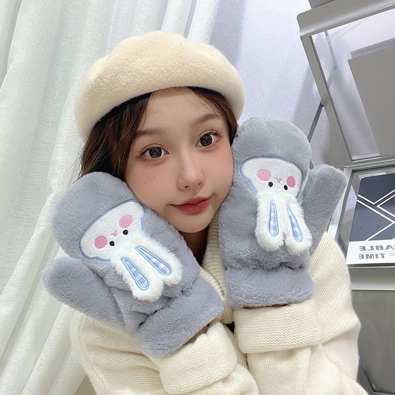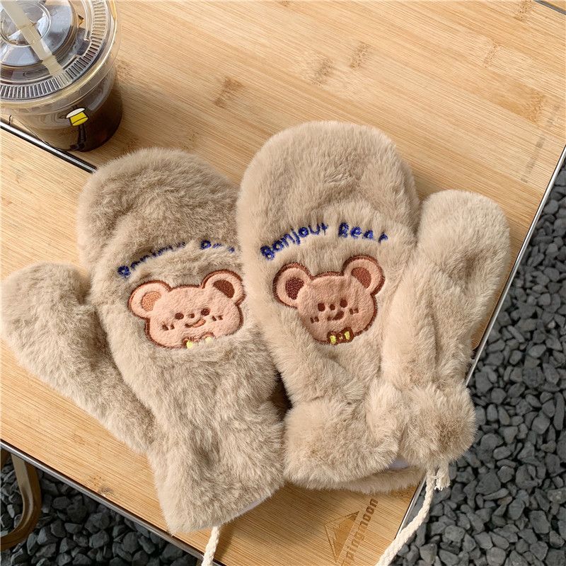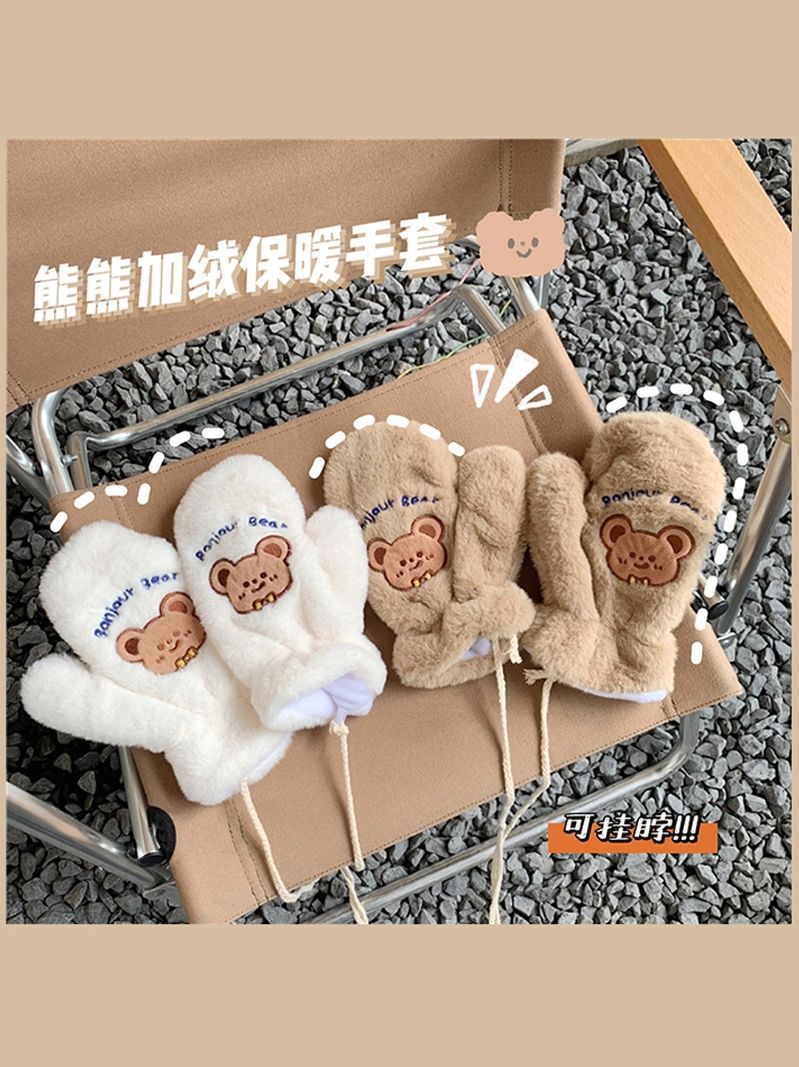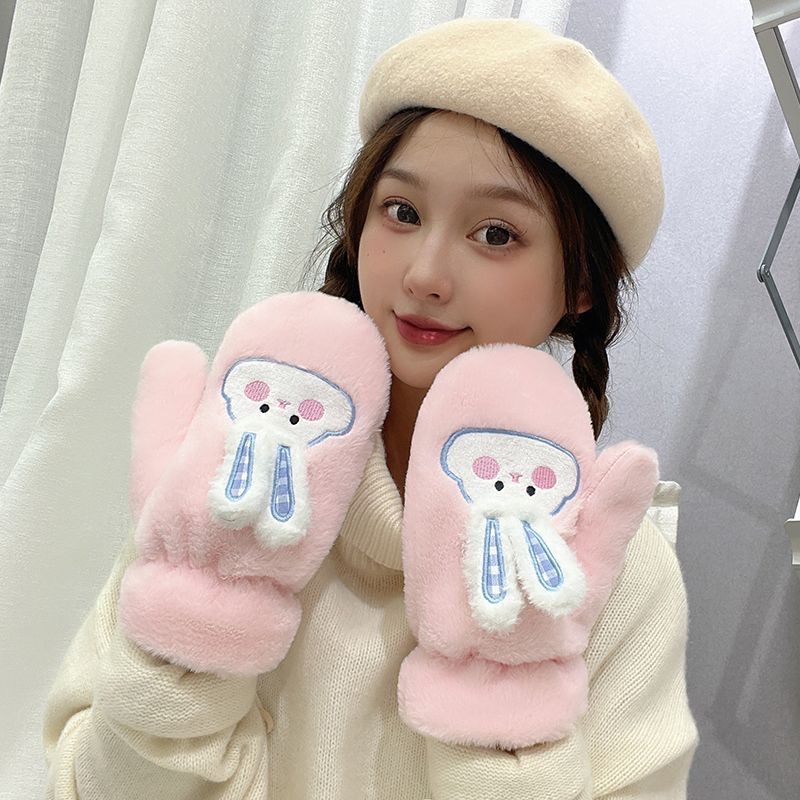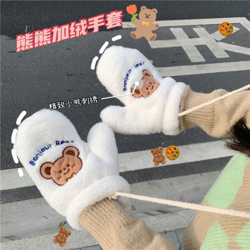 만화 캐릭터 디자인의 겨울용 벨벳 안감 두꺼운 방풍 보온 캐주얼 풀핑거 학생용 방한 라이딩 장갑스토어 가기