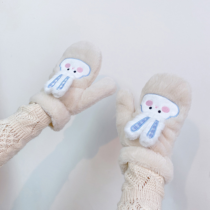 만화 캐릭터 디자인의 겨울용 벨벳 안감 두꺼운 방풍 보온 캐주얼 풀핑거 학생용 방한 라이딩 장갑