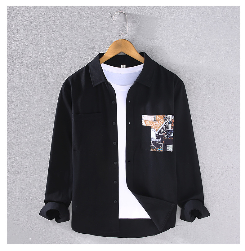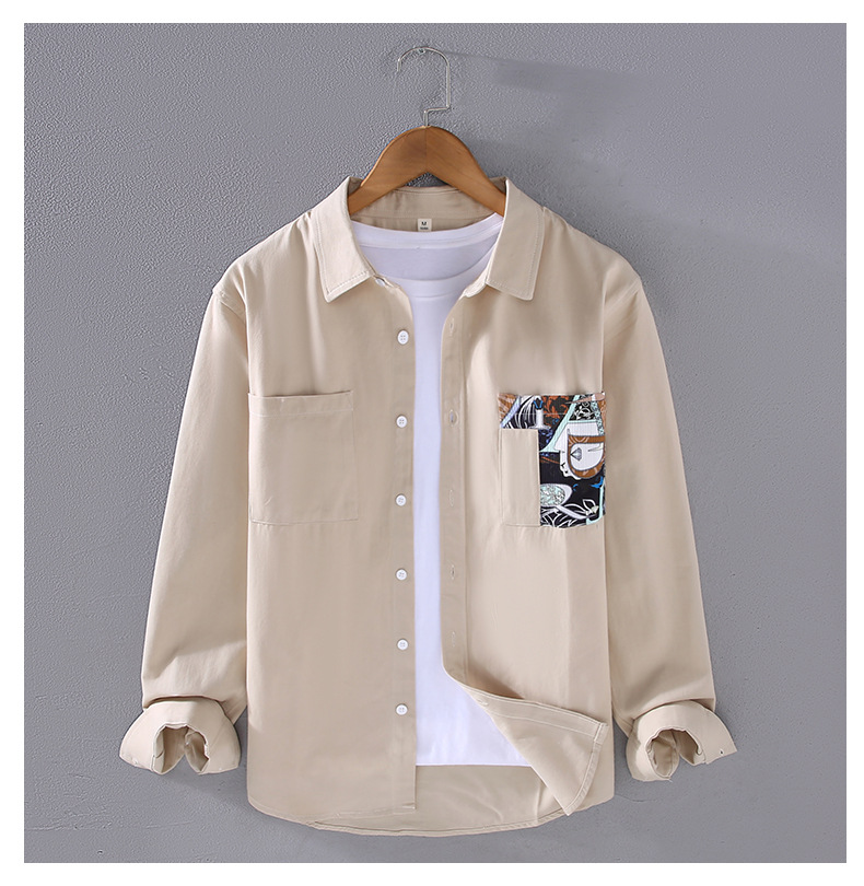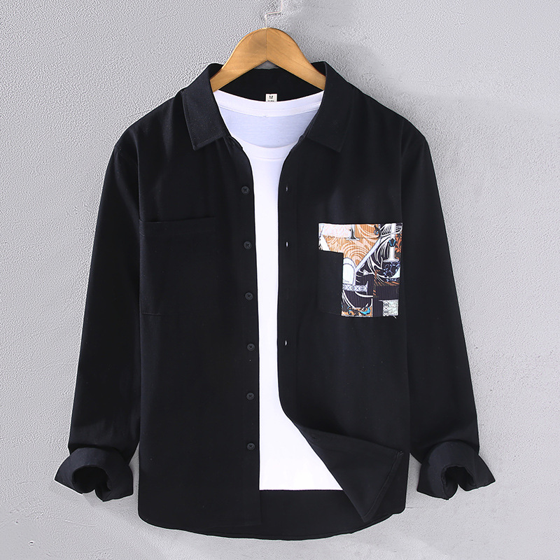 2322 스티칭 대비 컬러 셔츠 자켓 남성용 셔츠 긴팔 남성 캐주얼 봄과 가을 신상품 가을 셔츠 남성용 아메리칸 스타일스토어 가기