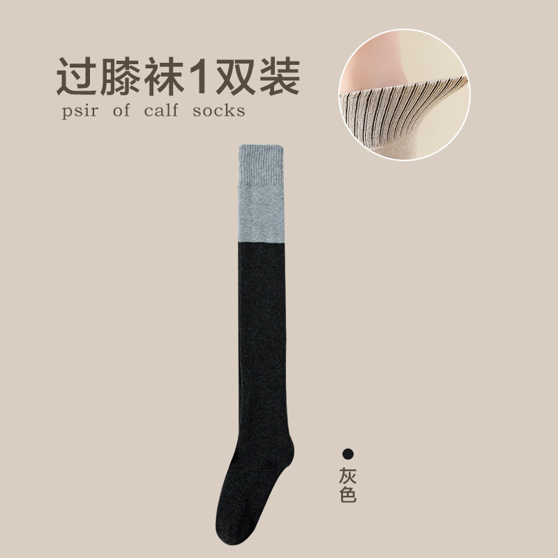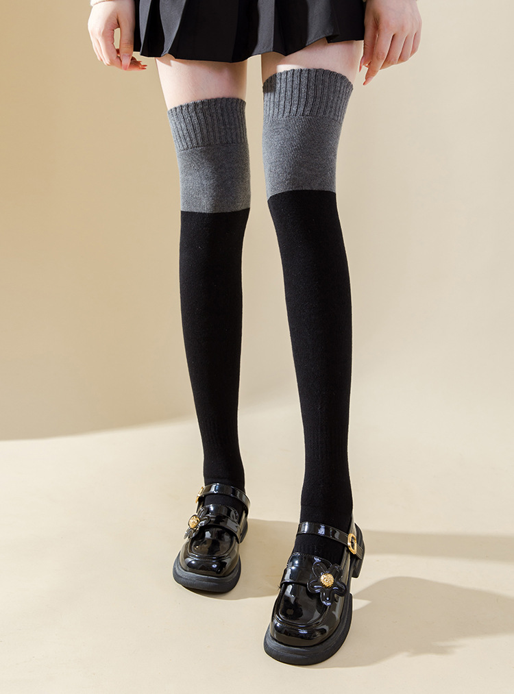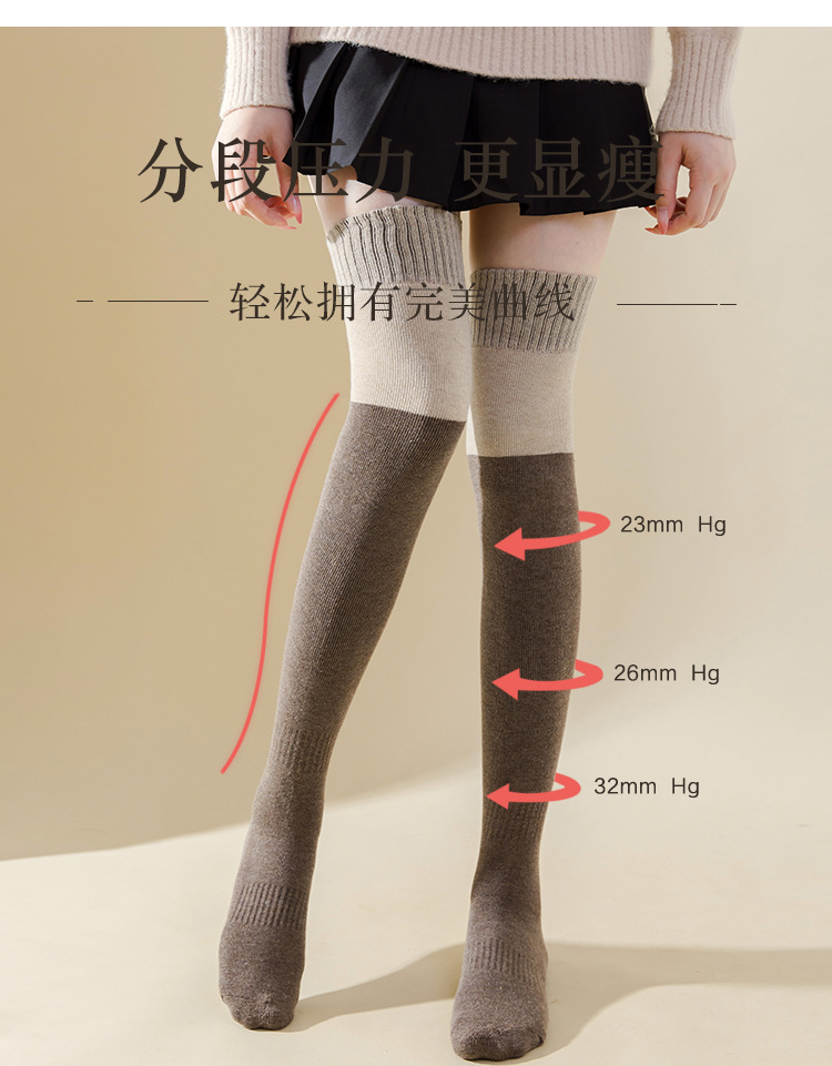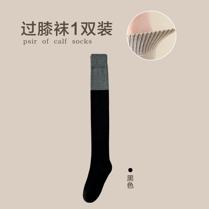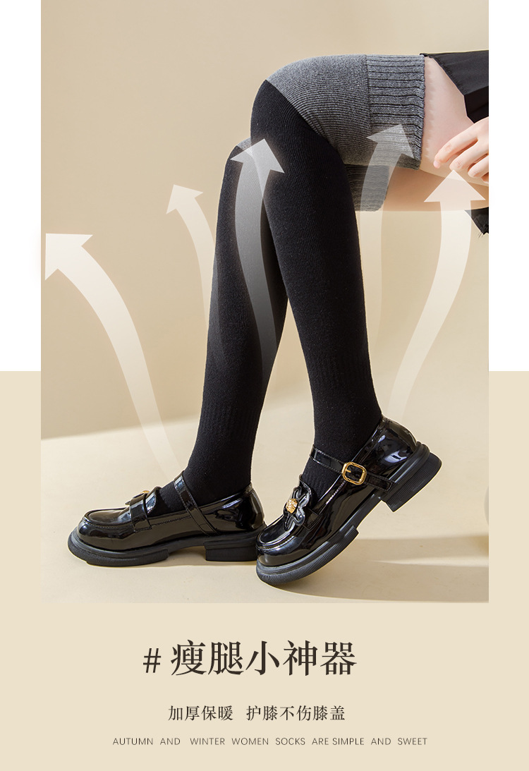 여성용 무릎 위 양말, 가을 겨울용 두꺼운 테리 소재 보온 압박 슬림 레그 블랙 jk 미끄럼 방지 무릎 보호 롱 양말, 슬림 효과