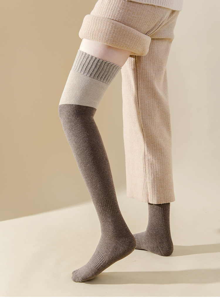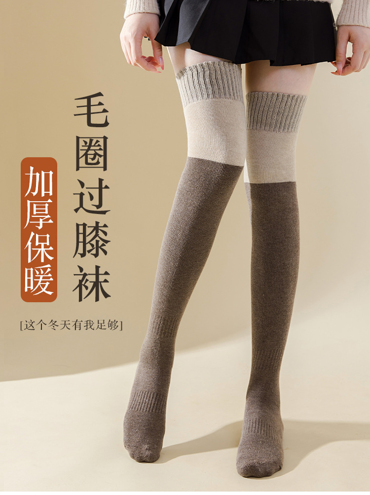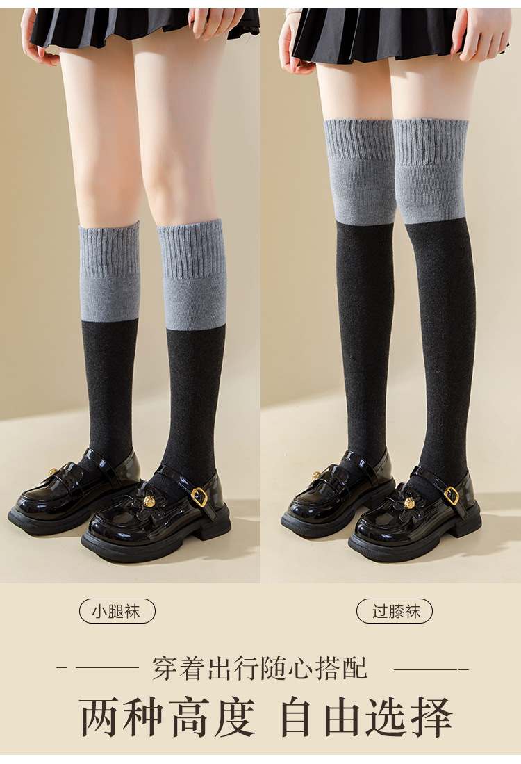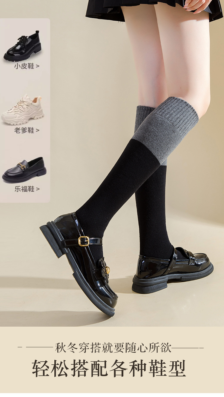 여성용 무릎 위 양말, 가을 겨울용 두꺼운 테리 소재 보온 압박 슬림 레그 블랙 jk 미끄럼 방지 무릎 보호 롱 양말, 슬림 효과