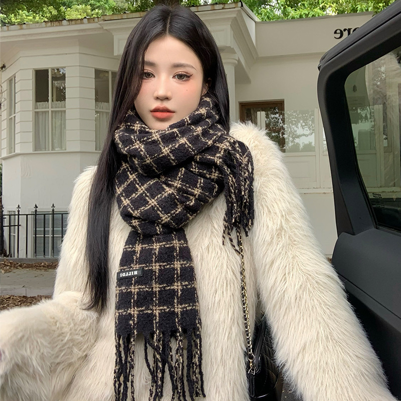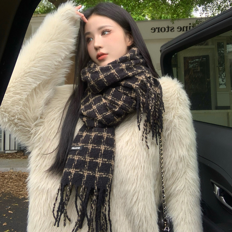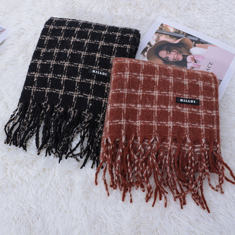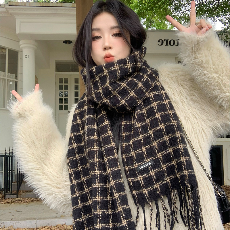 가을과 겨울 캐주얼 편안한 따뜻한 통기성 스카프 야외 놀이를위한 간단한 개성 격자 무늬 인쇄 방한 스카프스토어 가기