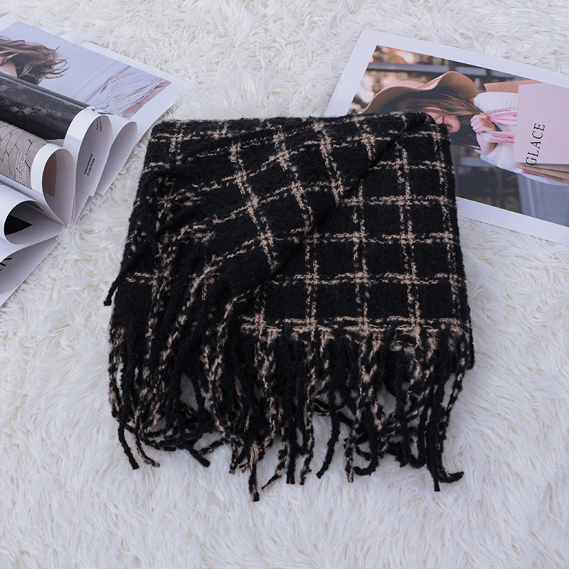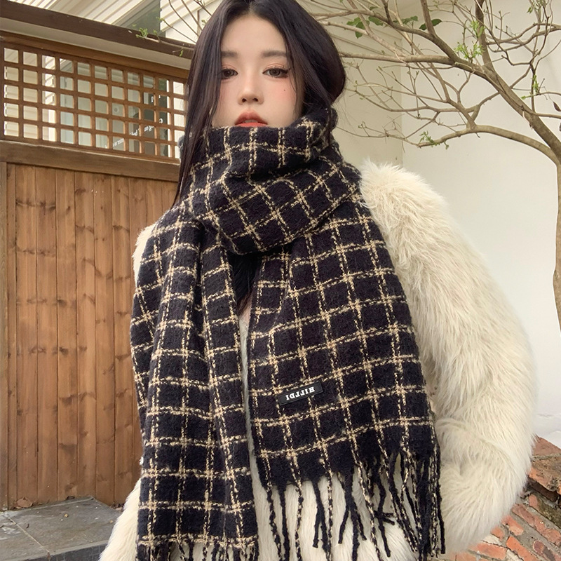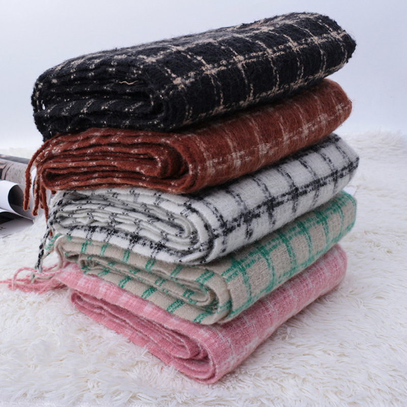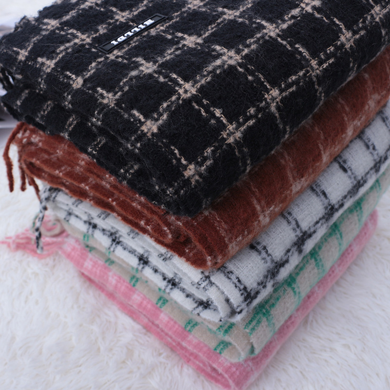 가을과 겨울 캐주얼 편안한 따뜻한 통기성 스카프 야외 놀이를위한 간단한 개성 격자 무늬 인쇄 방한 스카프