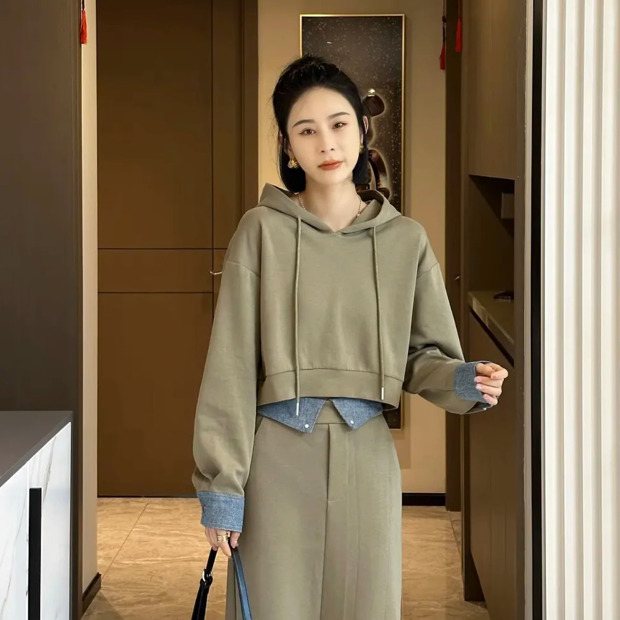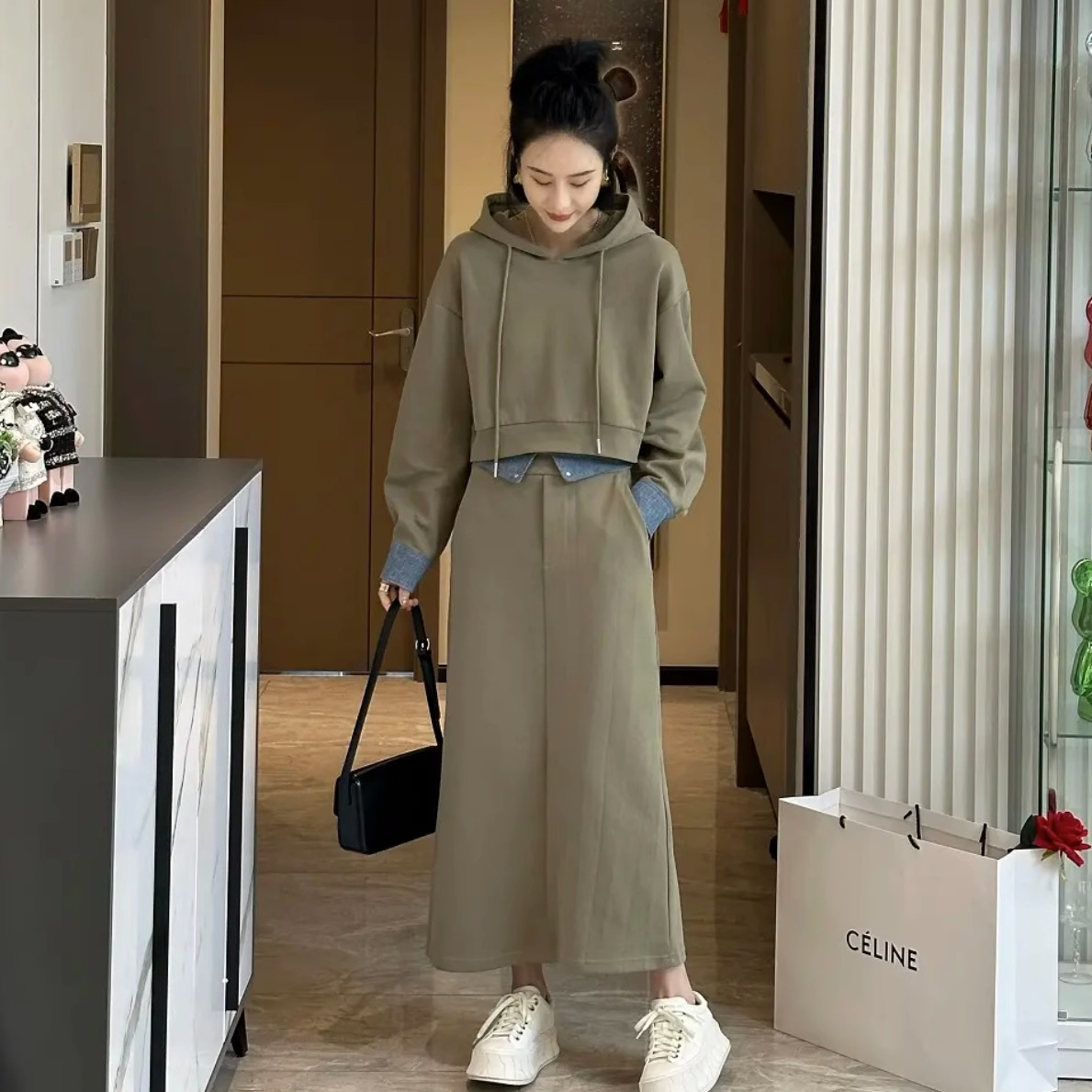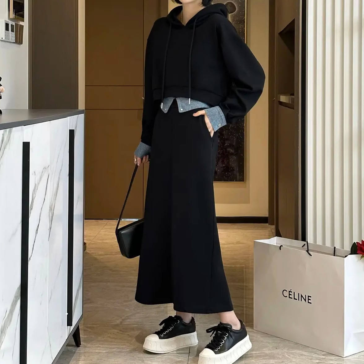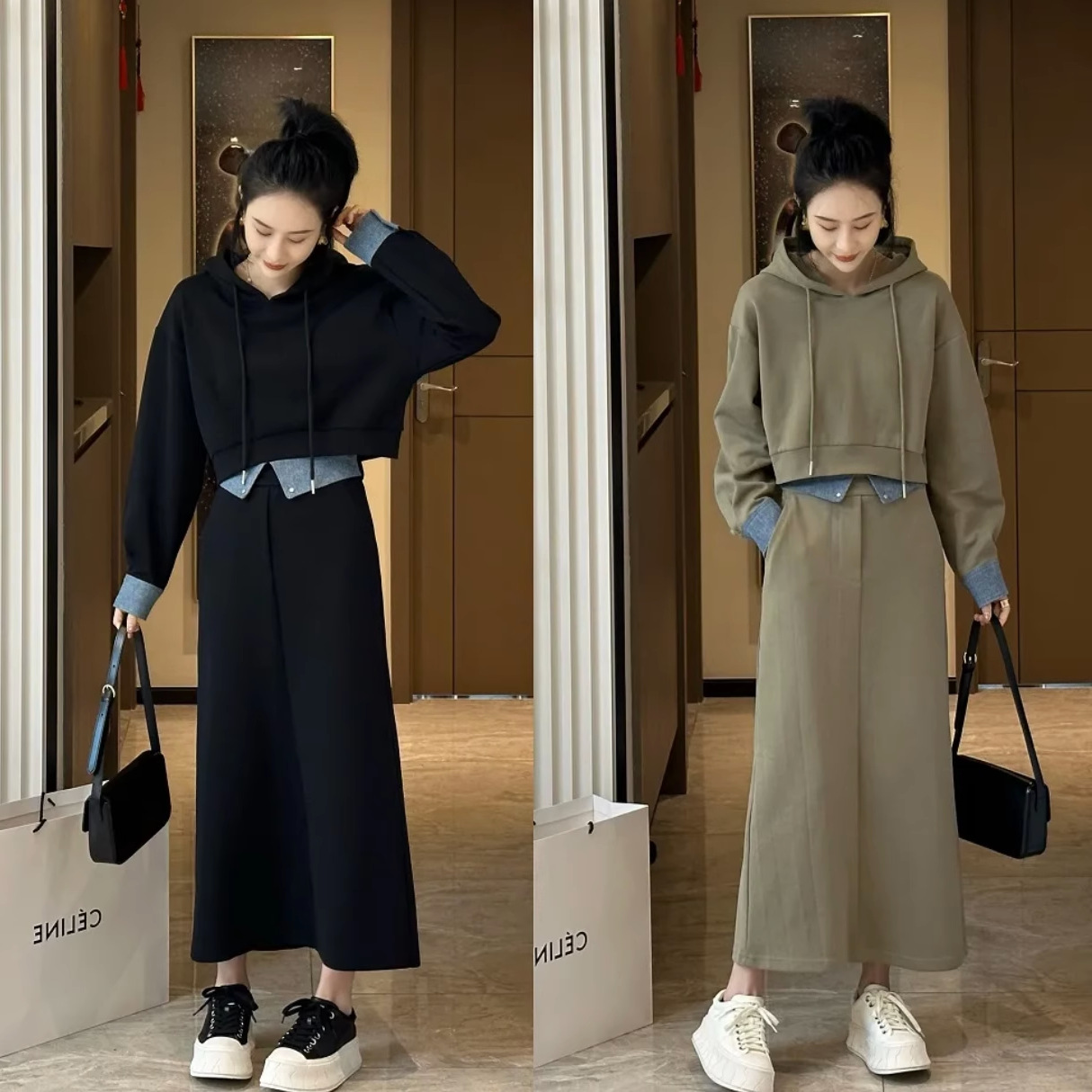 플러스 사이즈 여성 가을 스웨터 세트 서양식 연령 감소 슬리밍 스커트 패션 투피스 세트 지방 mm200 kg 300스토어 가기