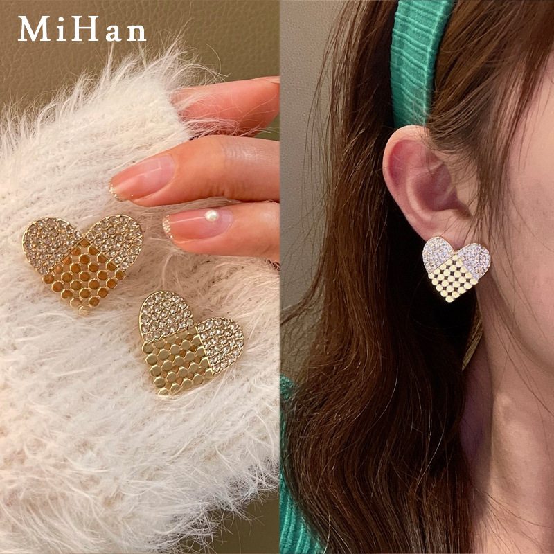 고급 사랑 귀걸이 간단한 차가운 바람 귀걸이 2023 새로운 패션 여성의 한국 기질 그물 인기있는 가을과 겨울