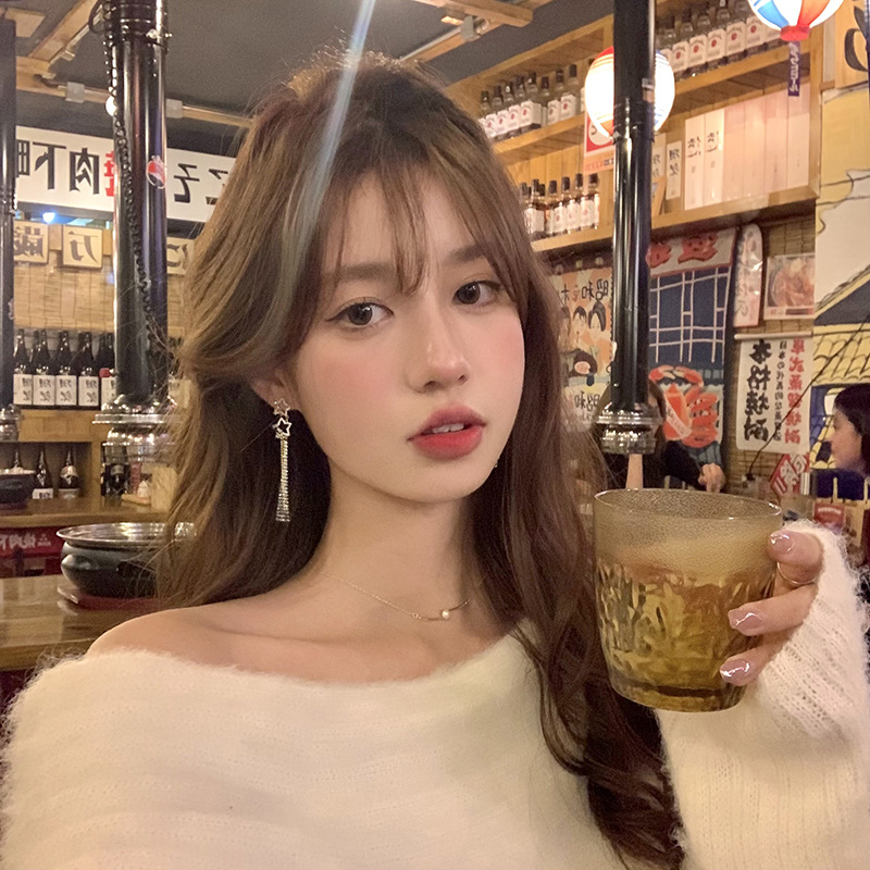 마이크로 상감 지르콘 스타 술 귀걸이 여성용 2023 년 새로운 고급 라이트 럭셔리 올매치 틈새 디자인 귀걸이스토어 가기