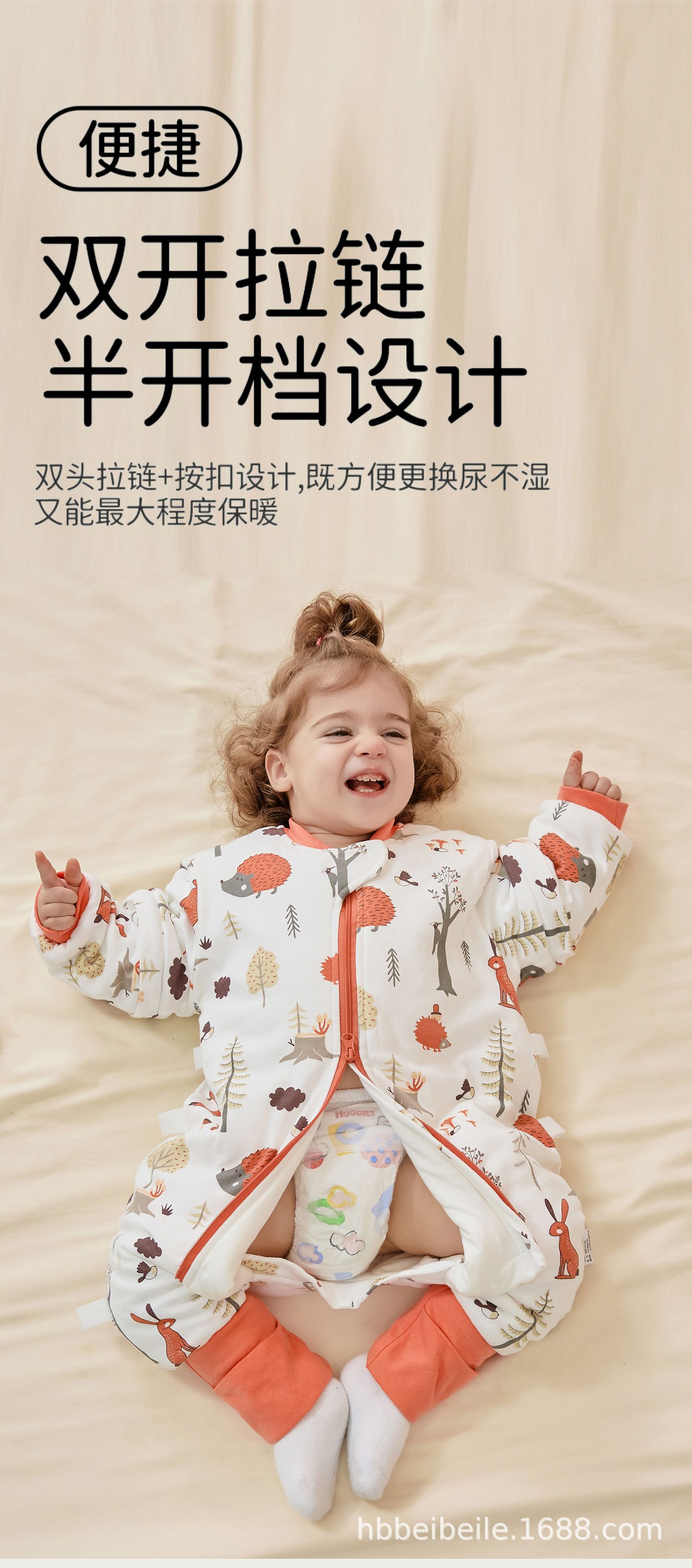 바자이토 겨울용 두꺼운 아동용 잠옷, 다리 분리형 아기 방한 이불, 순면 아기 온도 유지 수면조끼, 감기 예방