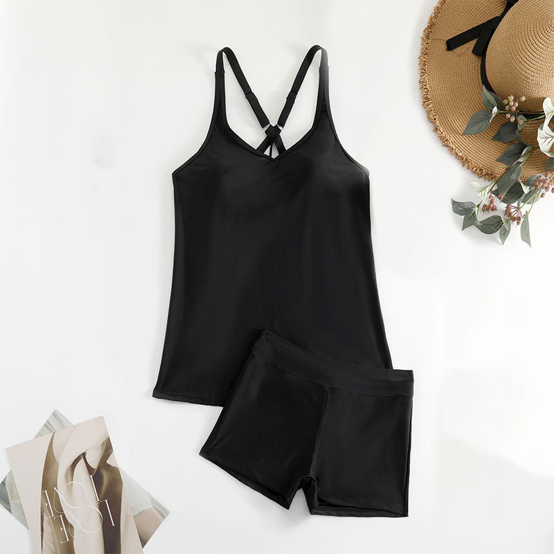 2023 새로운 아마존 유럽과 미국 섹시 슬립 스커트 스플릿 수영복 여성용 플랫 앵글 단색 비키니 수영복