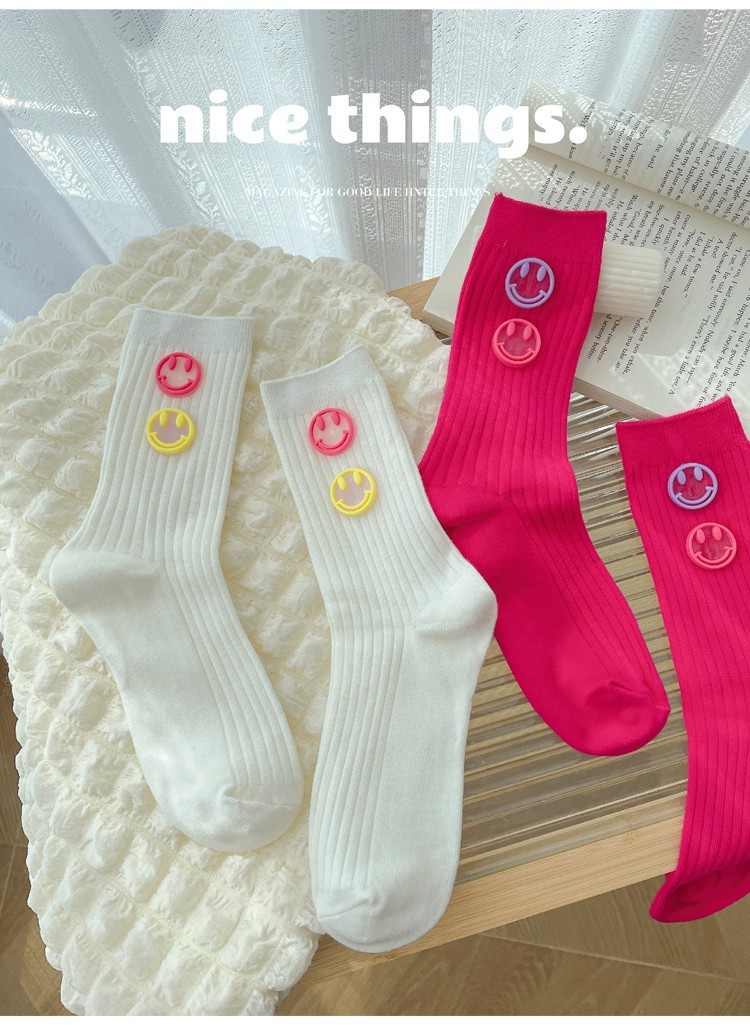 인터넷 핫 겉옷 더블 스마일 웨스턴 스타일 양말 여성용 디자인 웨스턴 스타일 중간 길이 양말 가을과 겨울 새로운 모든 매치 스택 양말스토어 가기