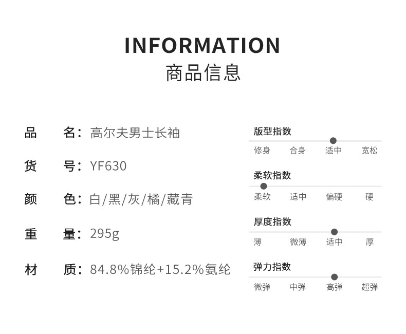 名 称男装高尔夫长袖T桖码 数M/L/XL/XXL